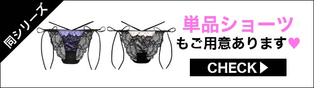 滑らかなサテン地にセクシーさ引き立つブラックレースの透け感が印象的なランジェリー。デコルテや腰回りにあしらわれた華奢なストリングデザインが女性らしい妖艶さを演出します。リアルに解ける紐パンツが刺激的な夜にもぴったりな1着です。