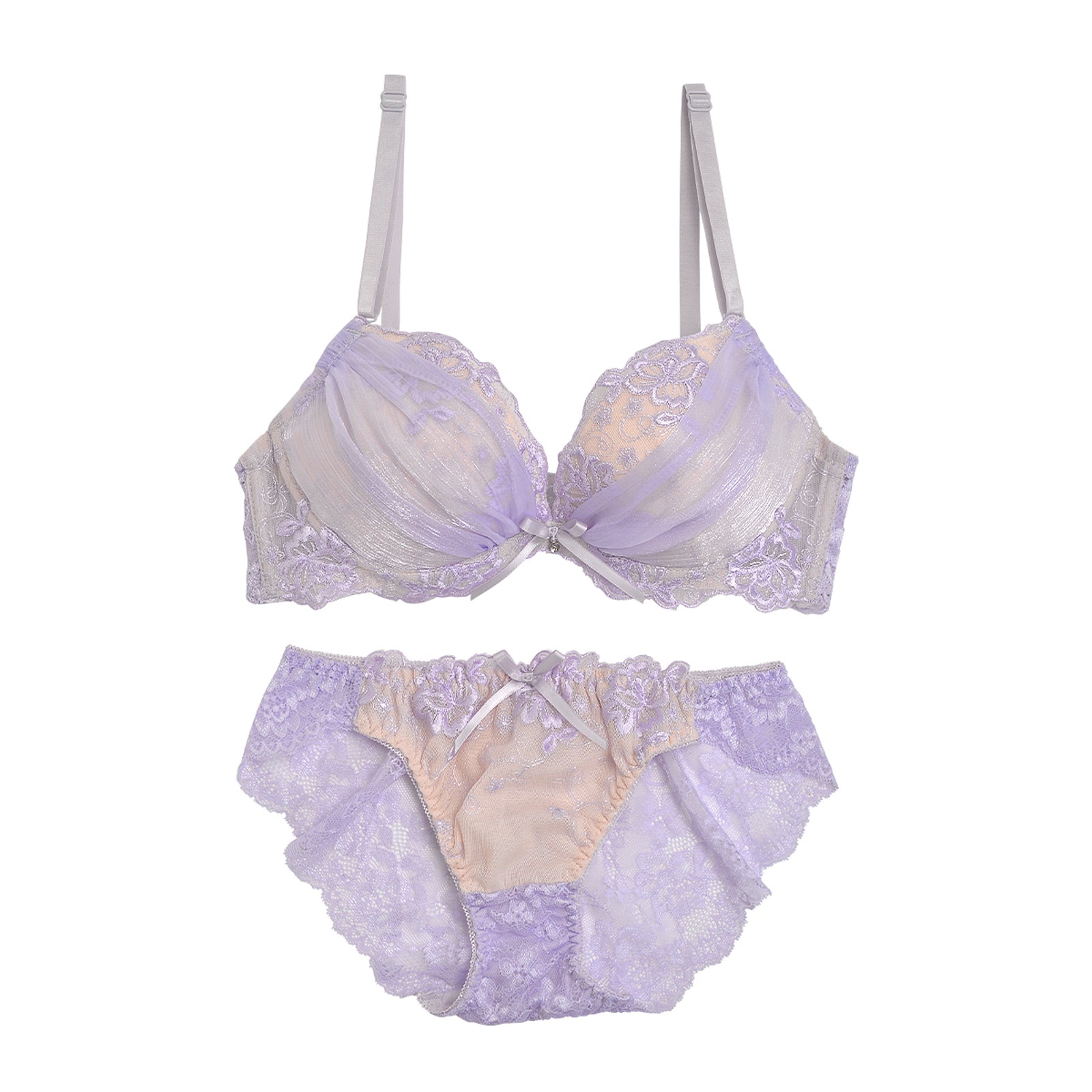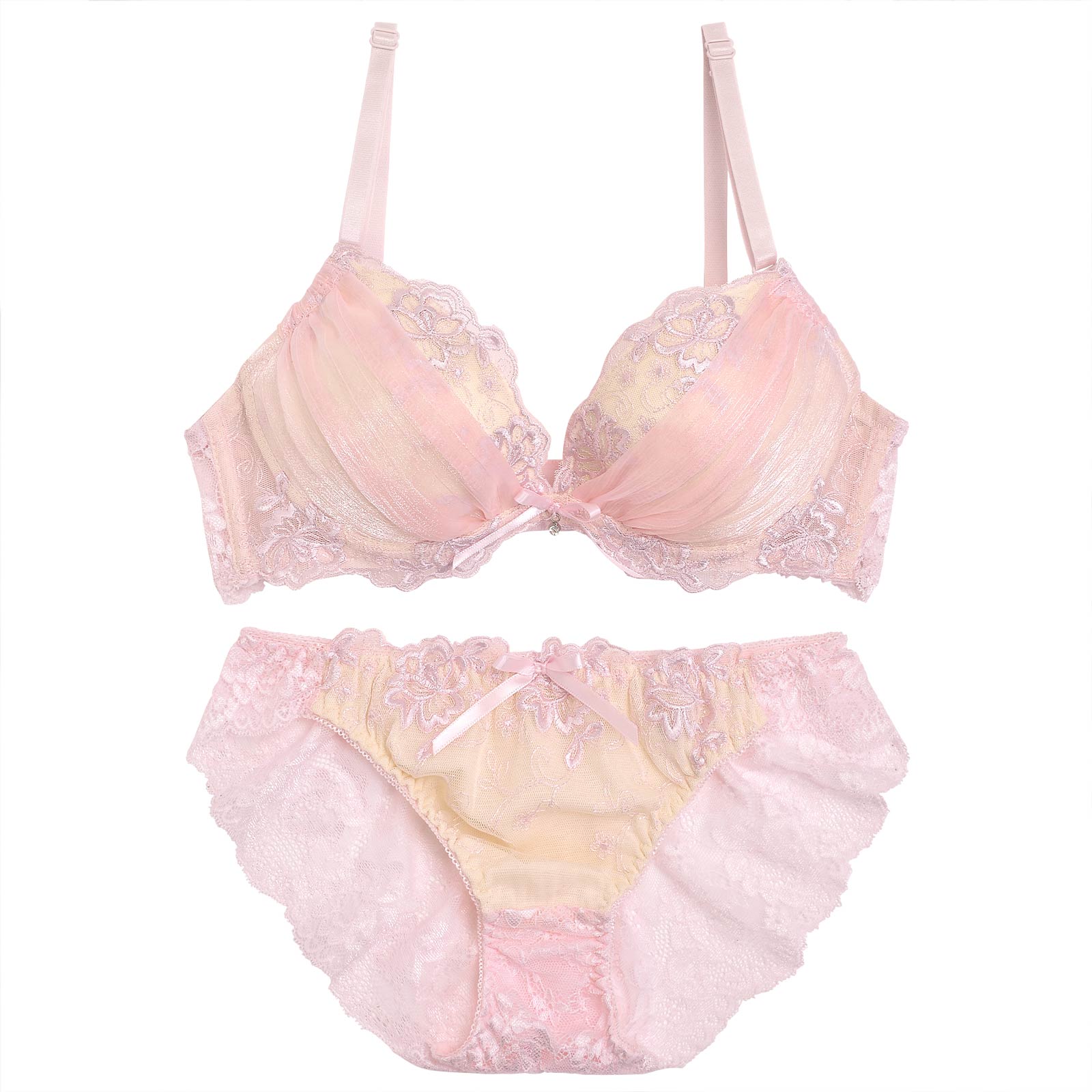 12/17再販!【三上悠亜ちゃん着用】2wayパッド付パステルレースxヌーディーブラジャー&バック透けフルバックショーツ