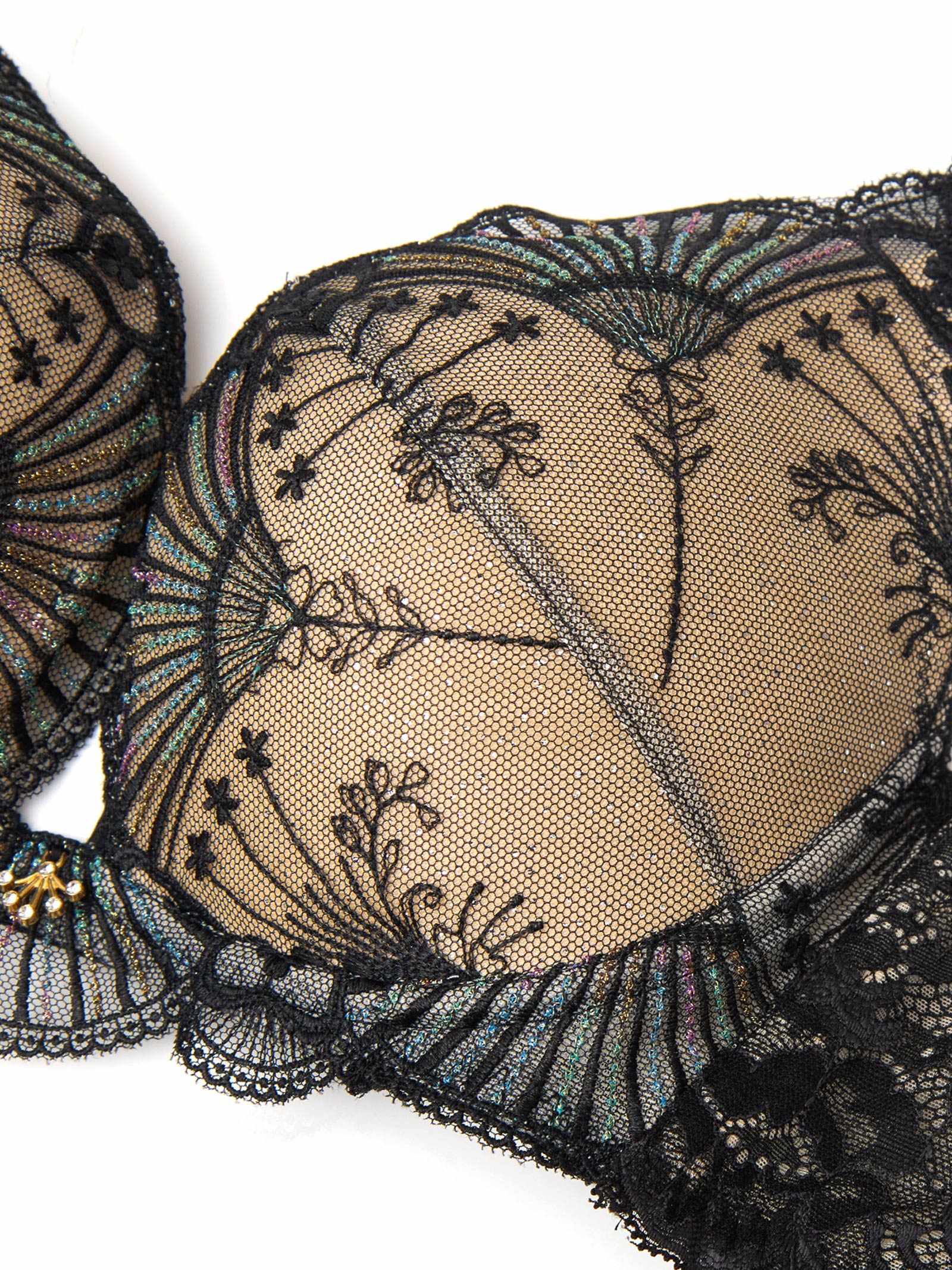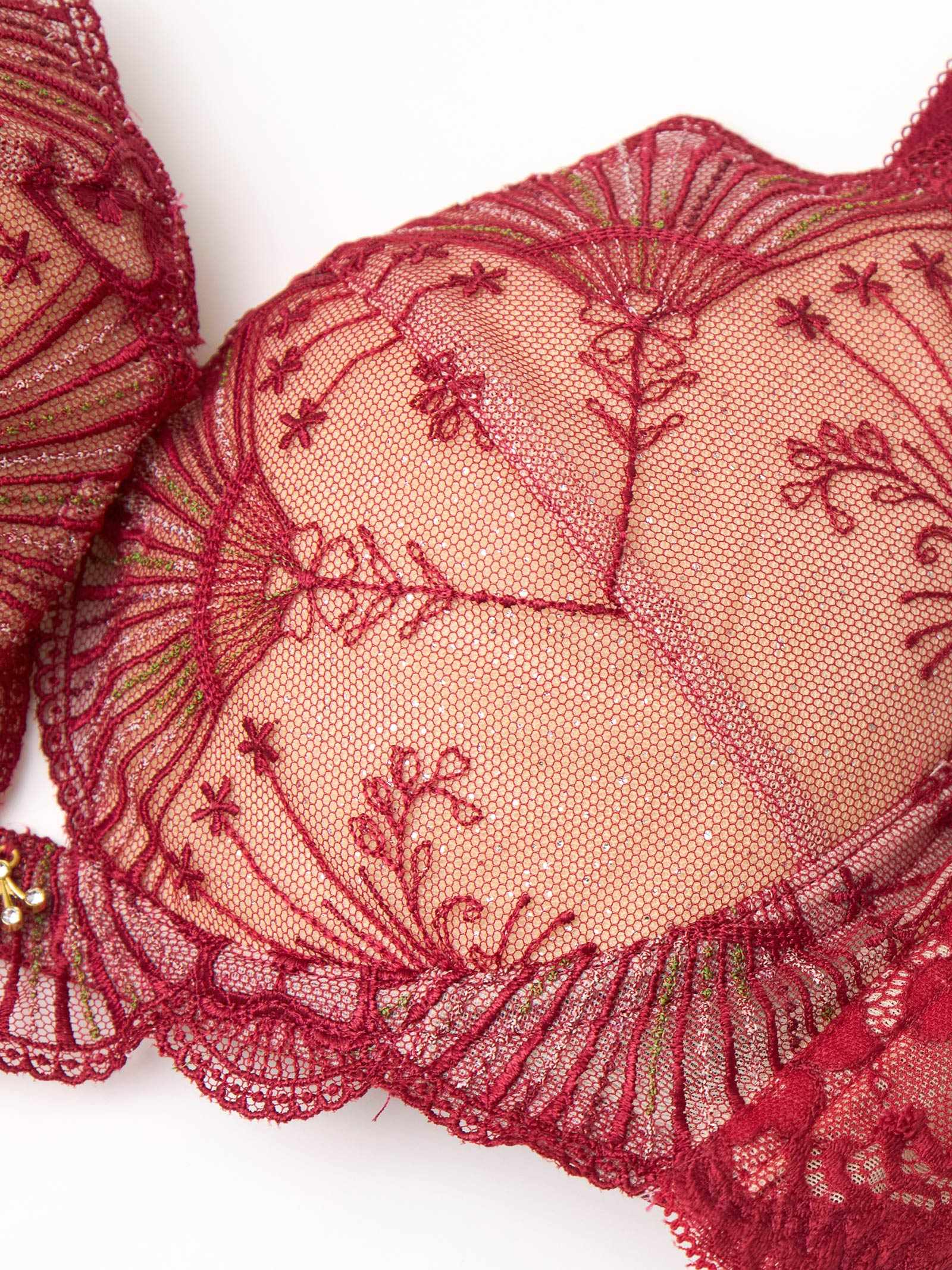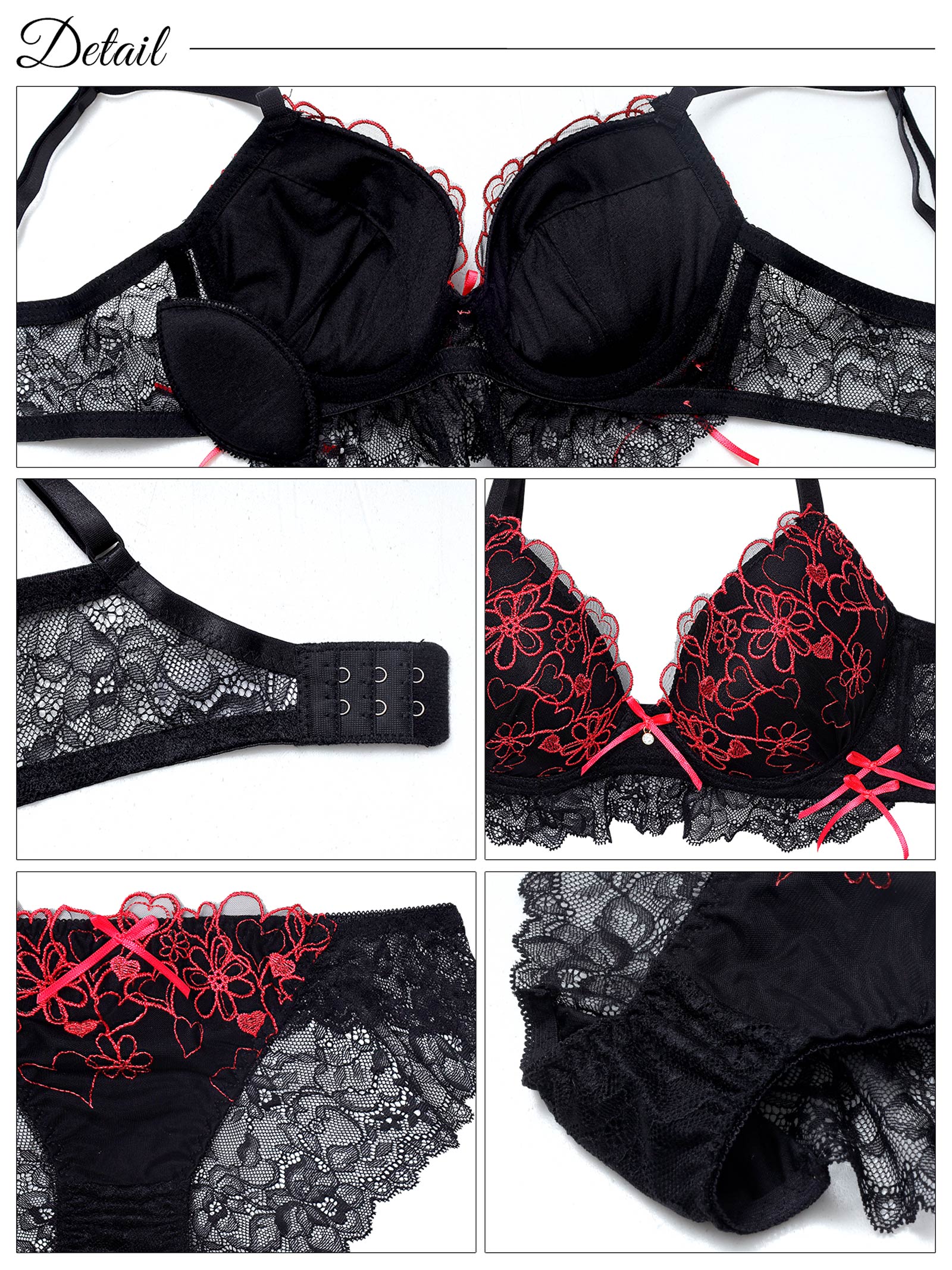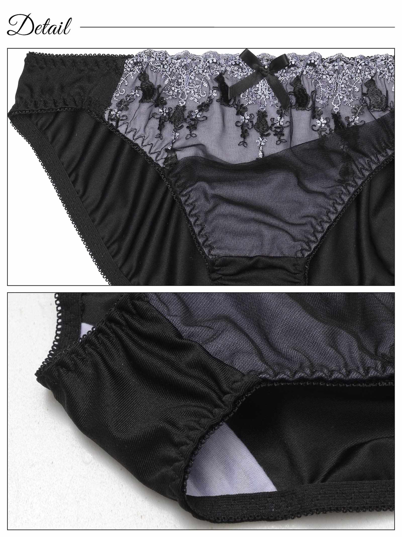 ディープクロスエンブロイダリーブラジャー&バック透けフルバックショーツ