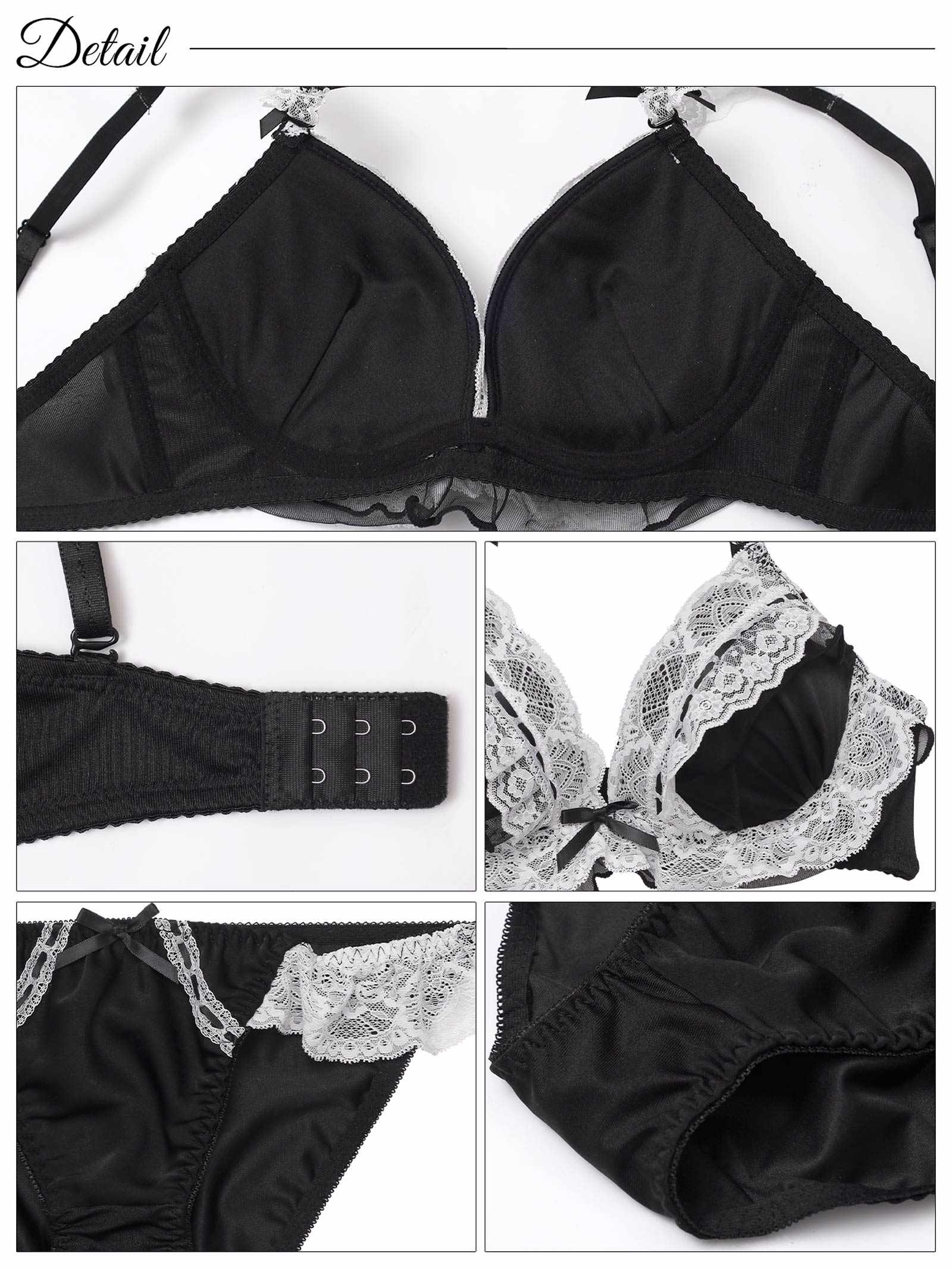 12/20再販!ジュエリーサテンレース育乳脇高ブラジャー&バック透けフルバックショーツ