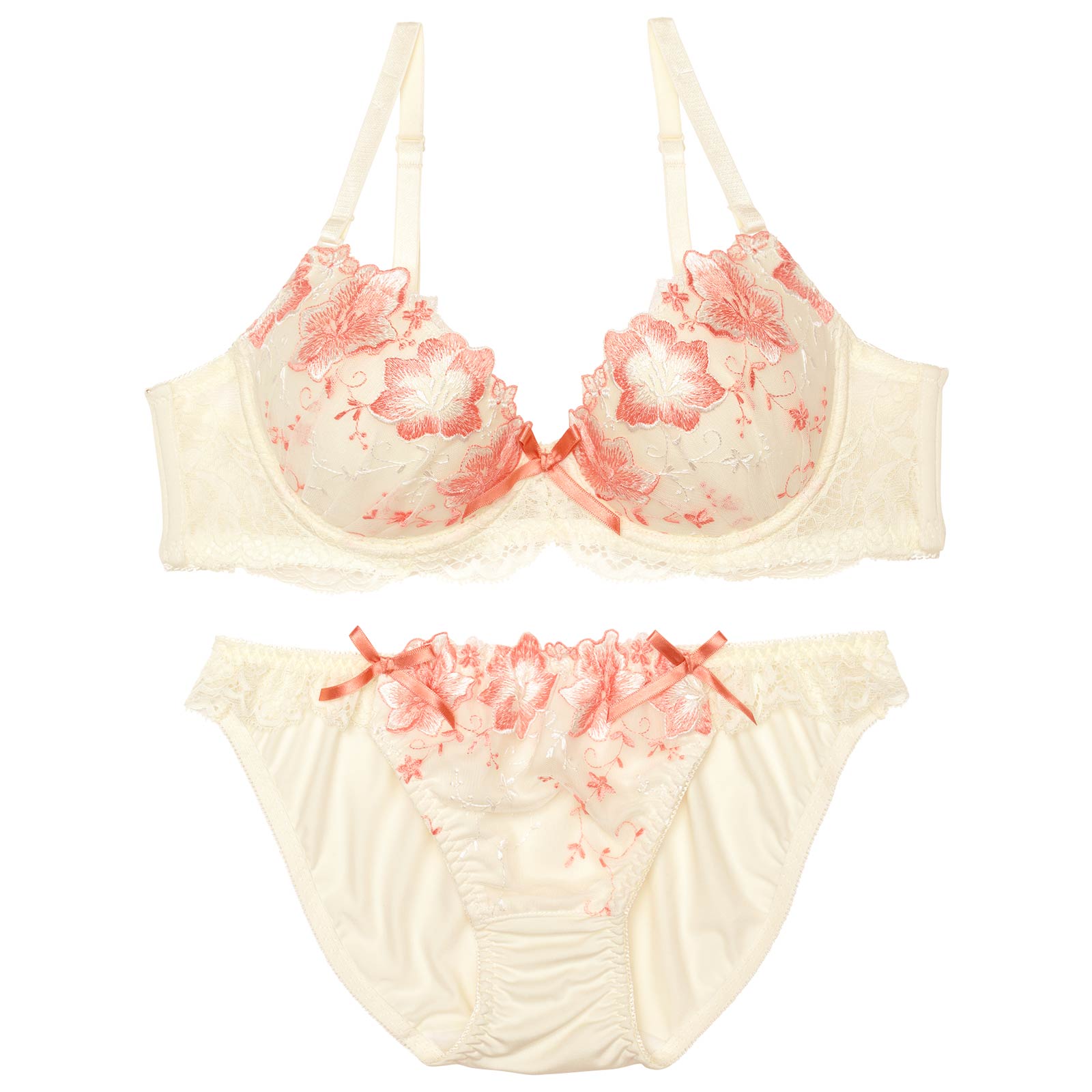 【三上悠亜着用】エレガンスフラワー刺繍ブラジャー&フルバックショーツ[プチプラ]