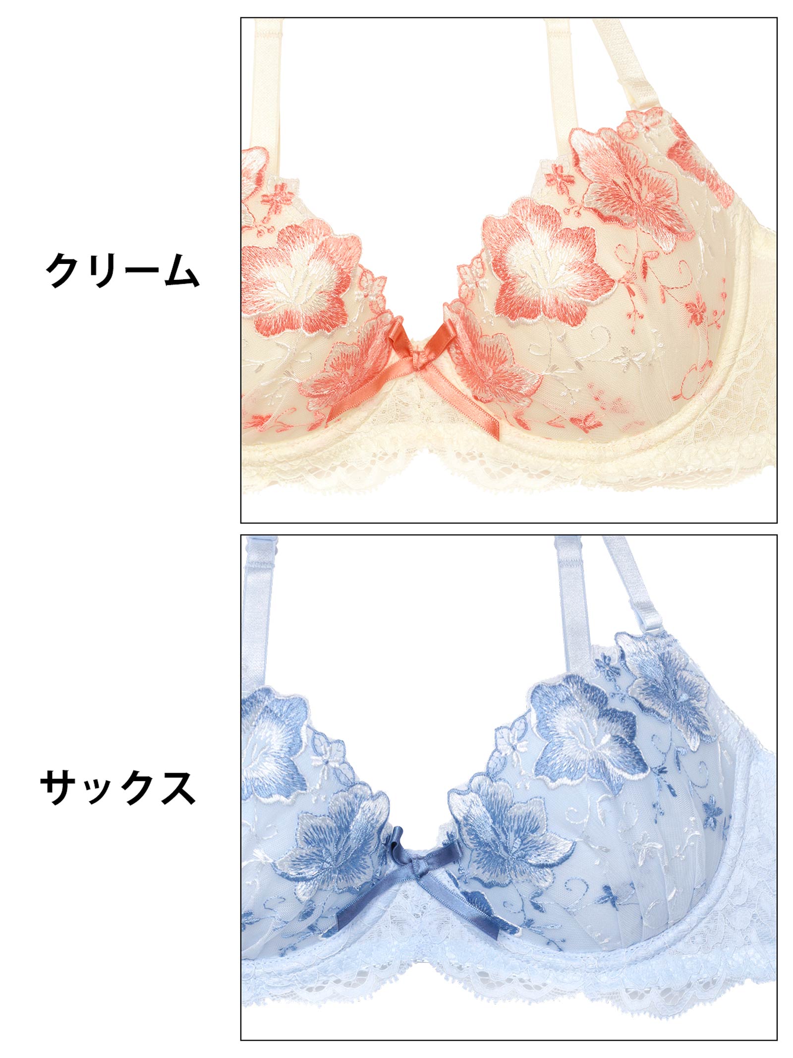 10/22新作!ディープクロスエンブロイダリーブラジャー&バック透けフルバックショーツ