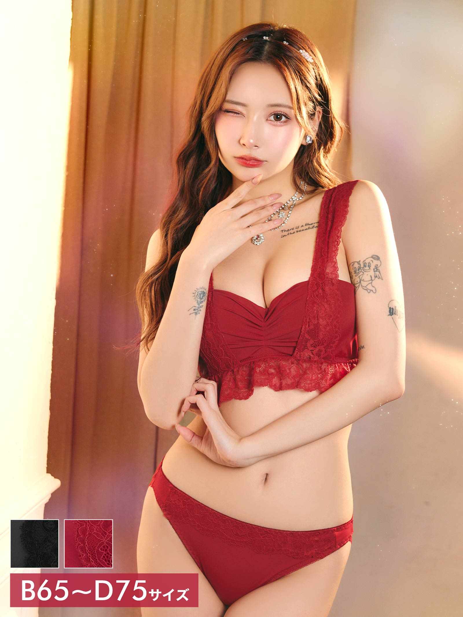 12/4再販!ワンカラーレースアップブラジャー&フルバックショーツ