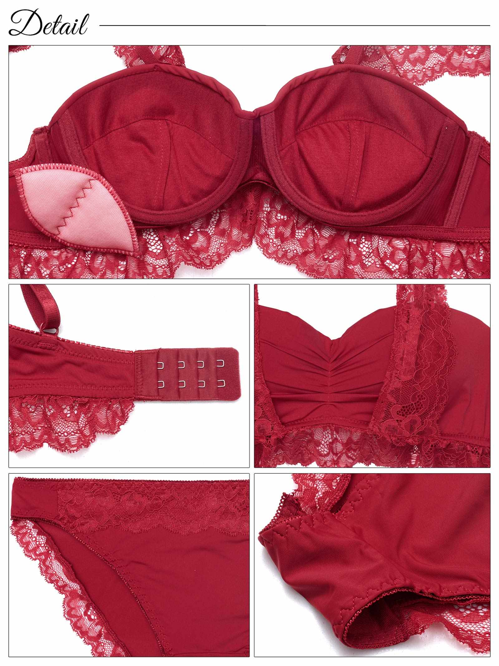 11/28新作!ジュエリーサテンレース育乳脇高ブラジャー&バック透けフルバックショーツ