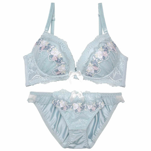 【ノンワイヤー】ブルームレースエンブロイダリーブラジャー&フルバックショーツ