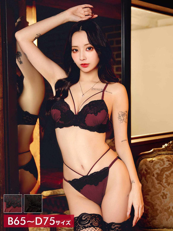 2/23新作!【三上悠亜着用】シックフラワーコードレースブラジャー&フルバックショーツ