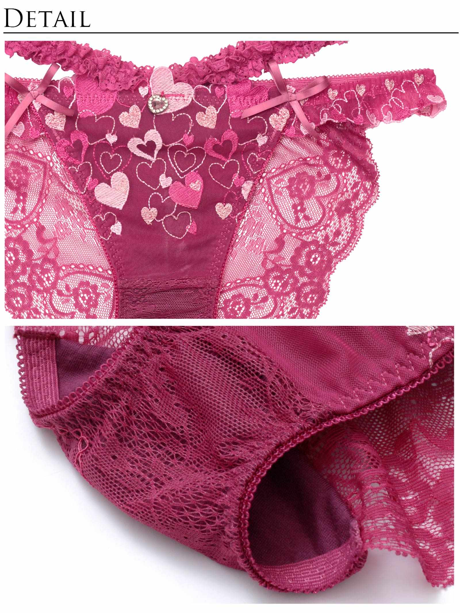 ショーツサイドにもハート刺繍のフリルと、ウエストにはやわらかいレースフリルを付けてます!ボトムスから見せてしまうのもおしゃれ上級者!