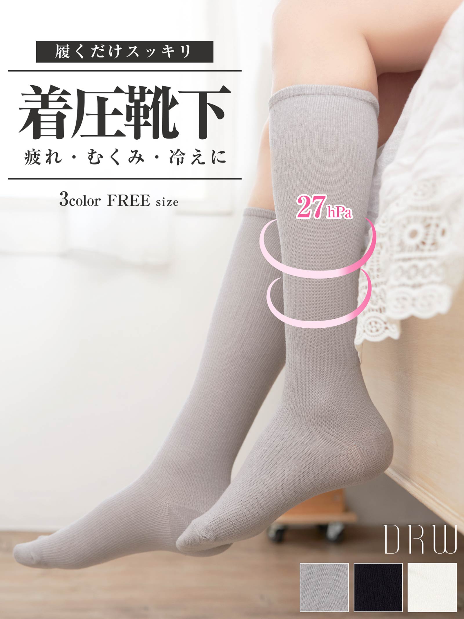 シンプル着圧ハイソックス