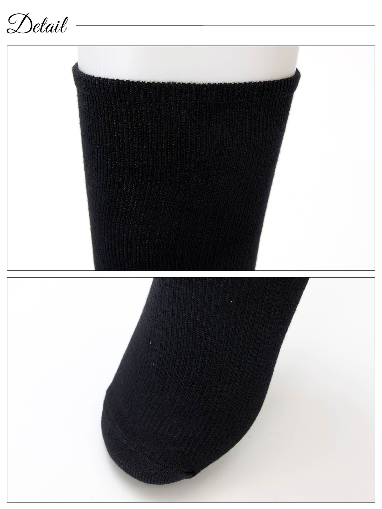 ふくらはぎをしっかり覆ってくれるハイソックス。程よい着圧で浮腫みや疲労を軽減してくれます。