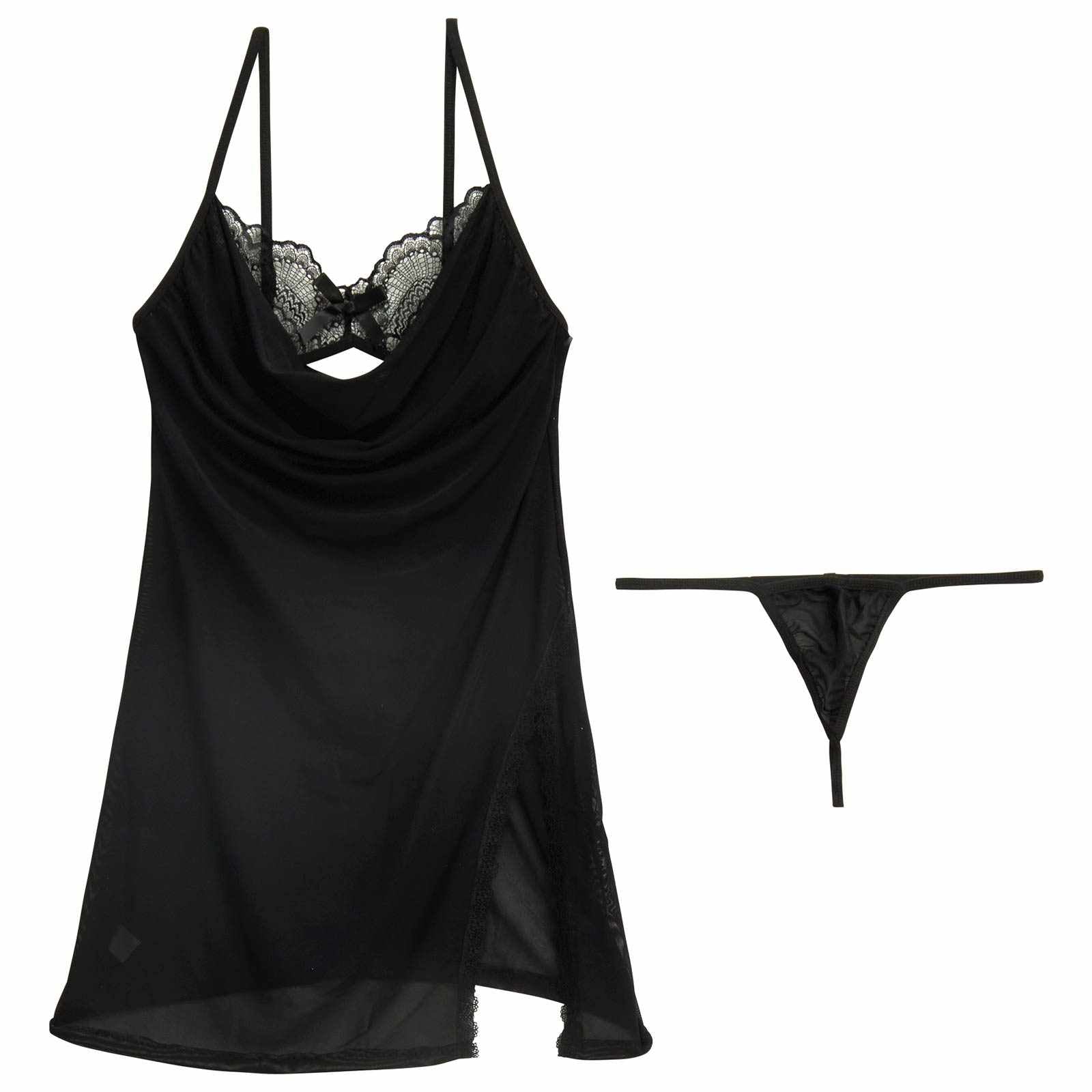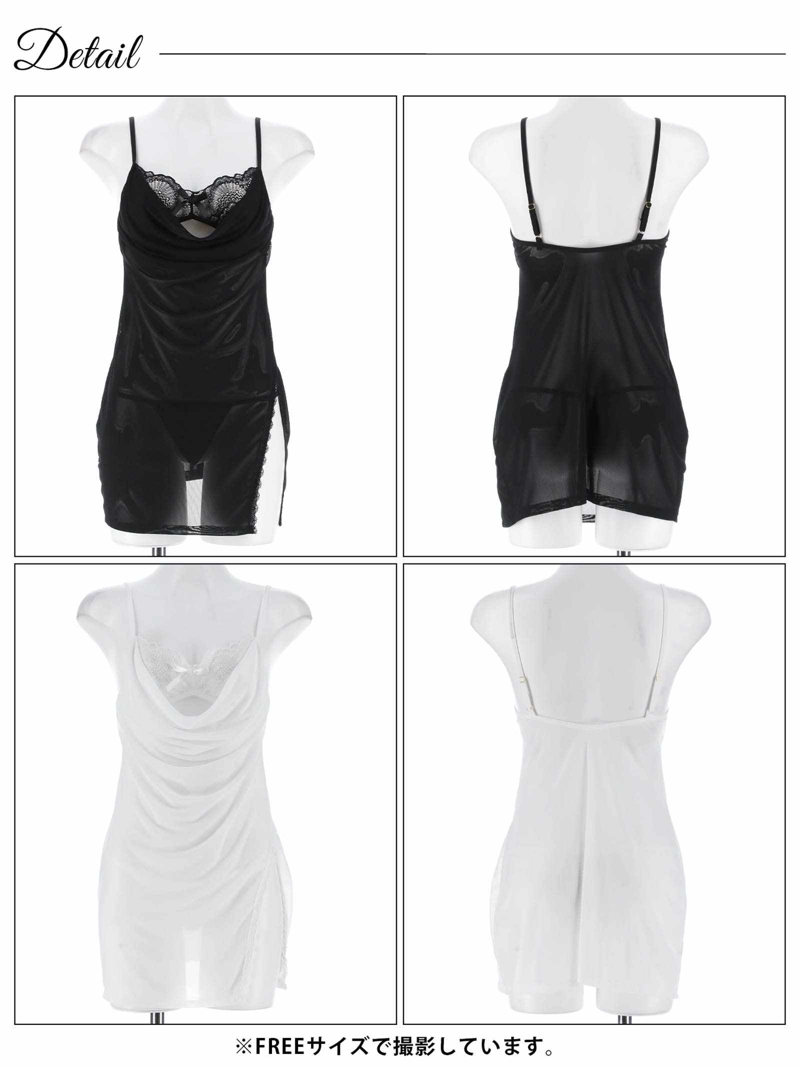 ゆったりとしたドレープシフォンから覗くバストレースが色気抜群なベビードール。大胆なサイドスリットが美脚効果&大人セクシーな印象を与えてくれます◎ 後ろ姿から透けて見えるTバックスタイルも魅力的な1着です♪