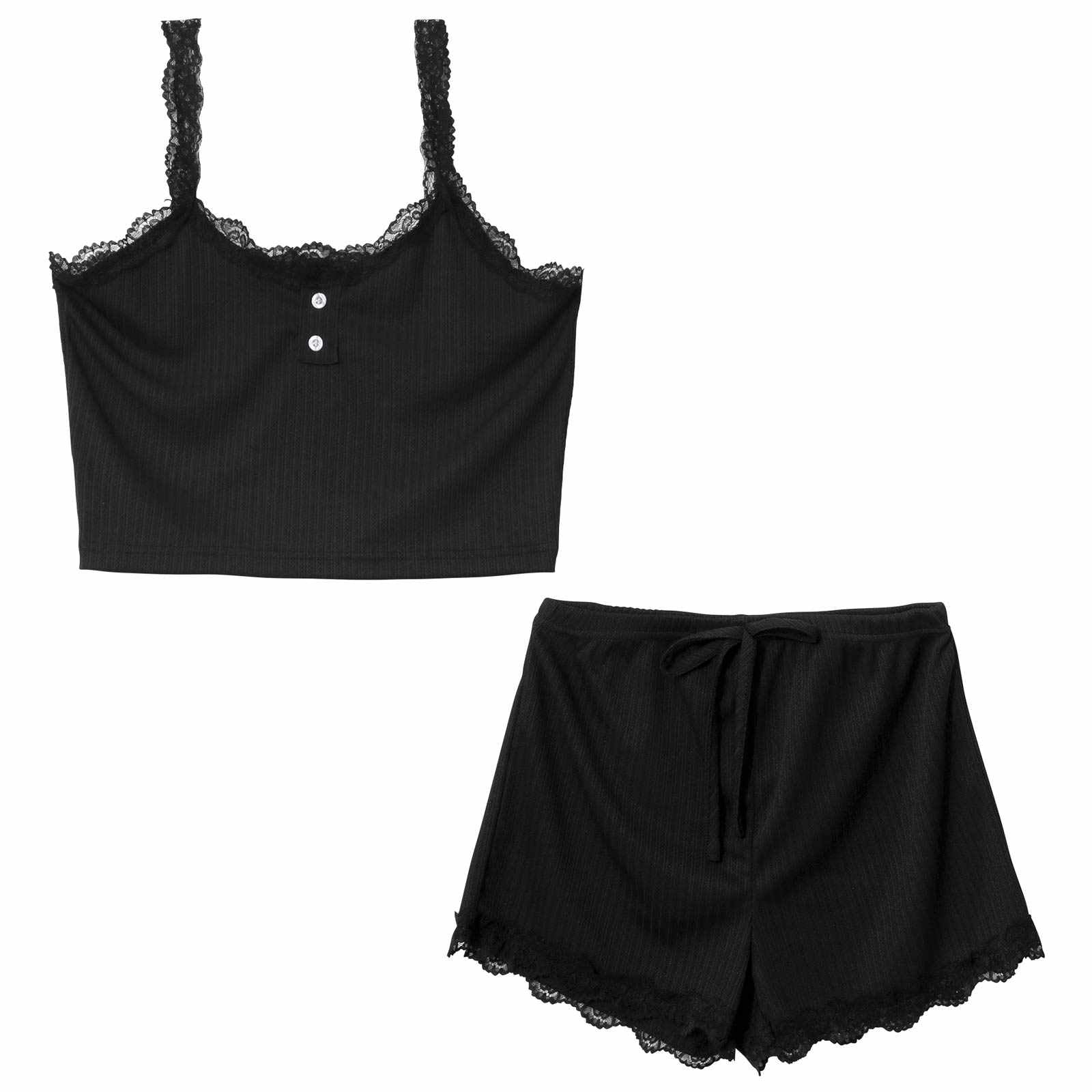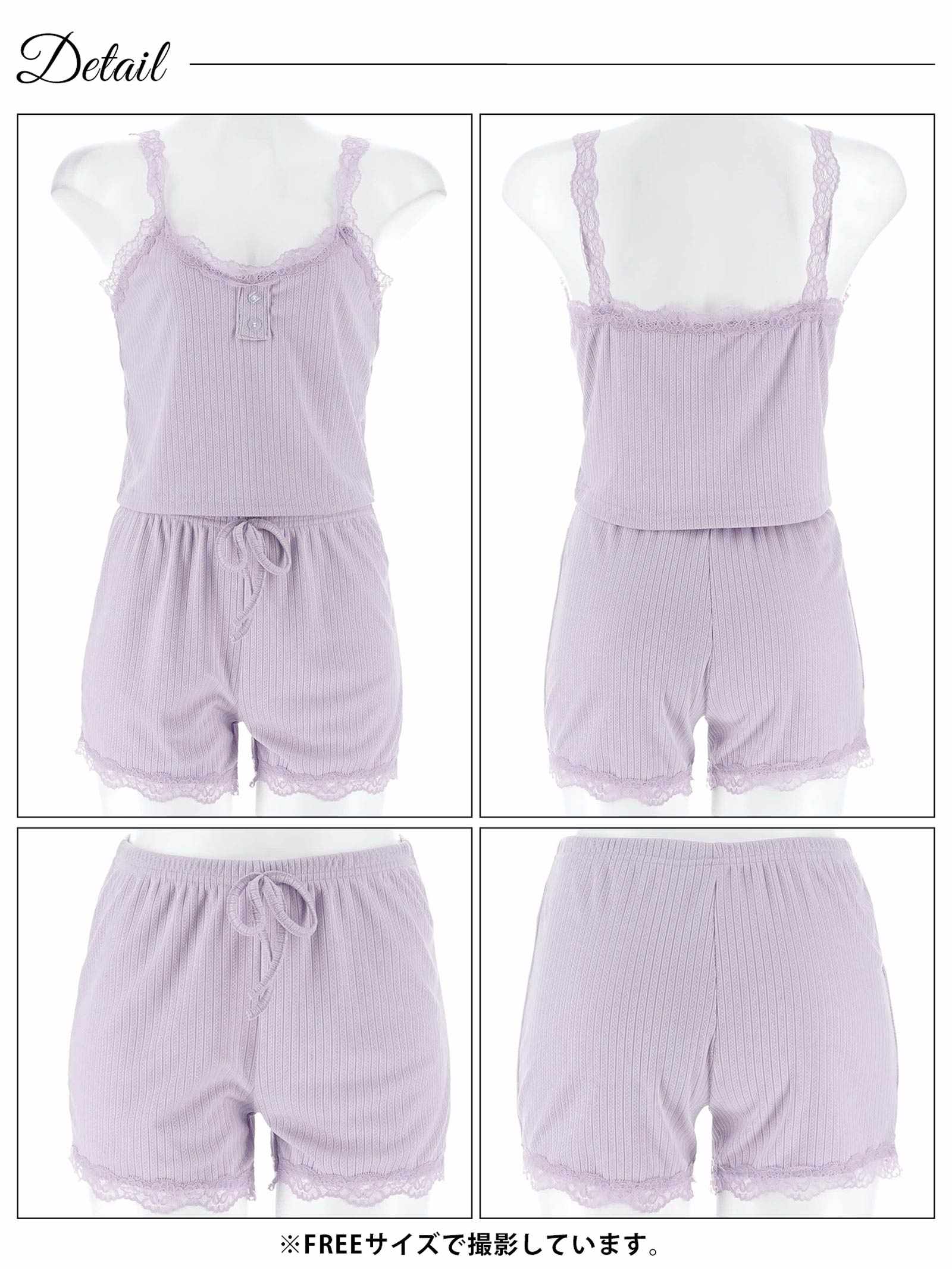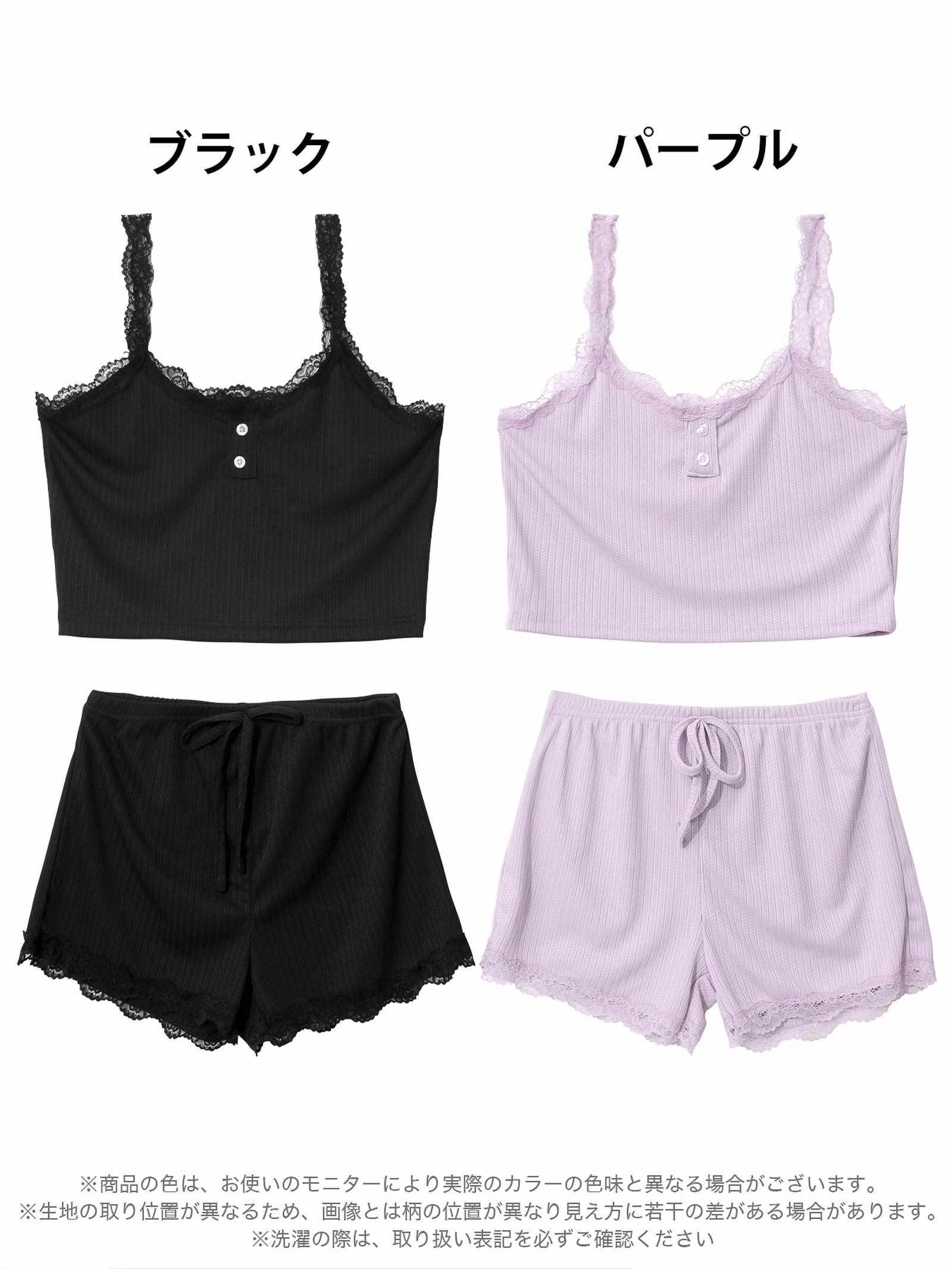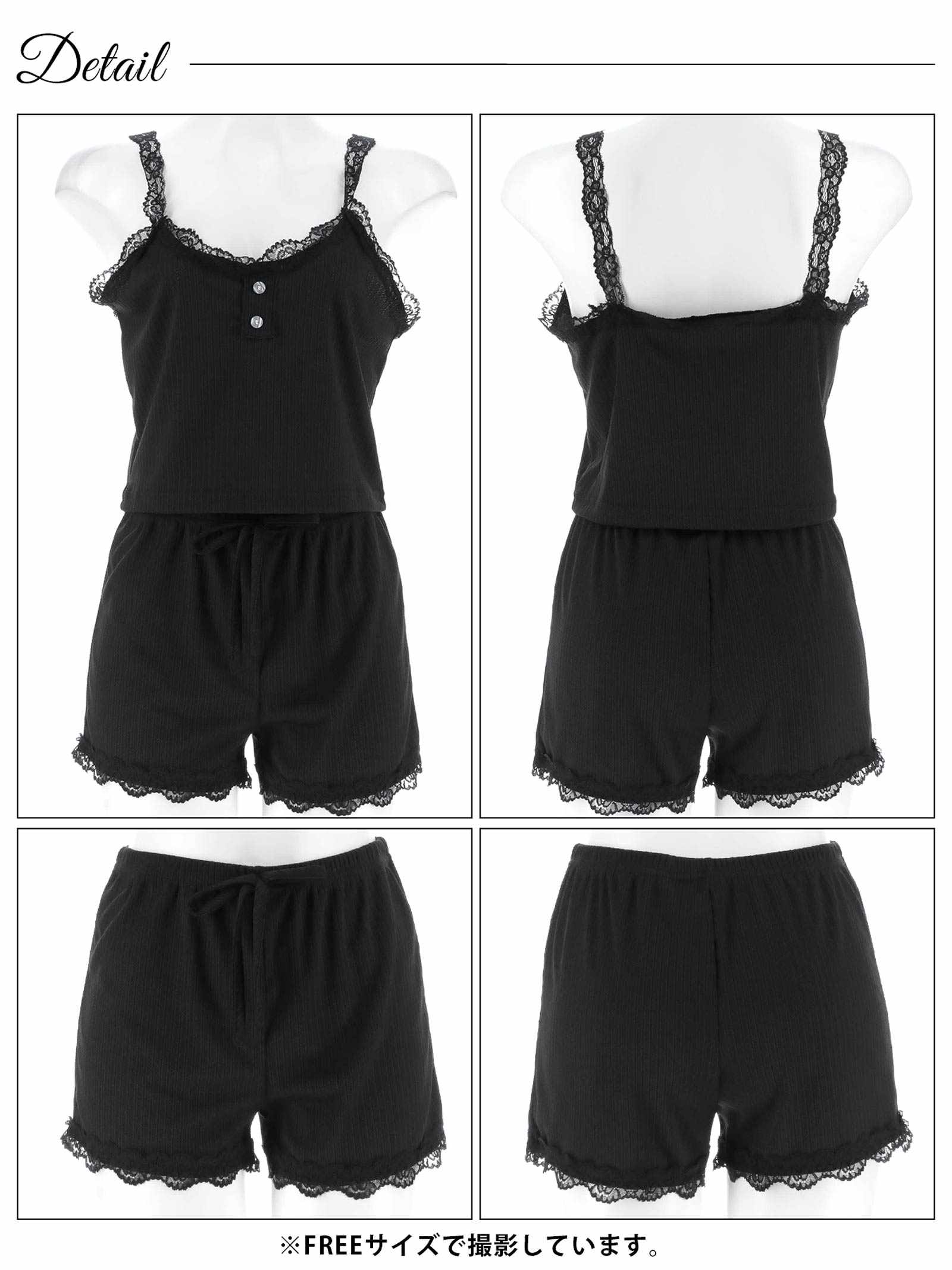 フロントボタンレースキャミ&ショートパンツルームウェア