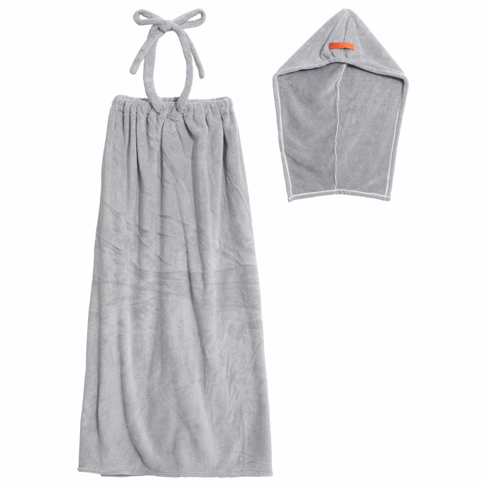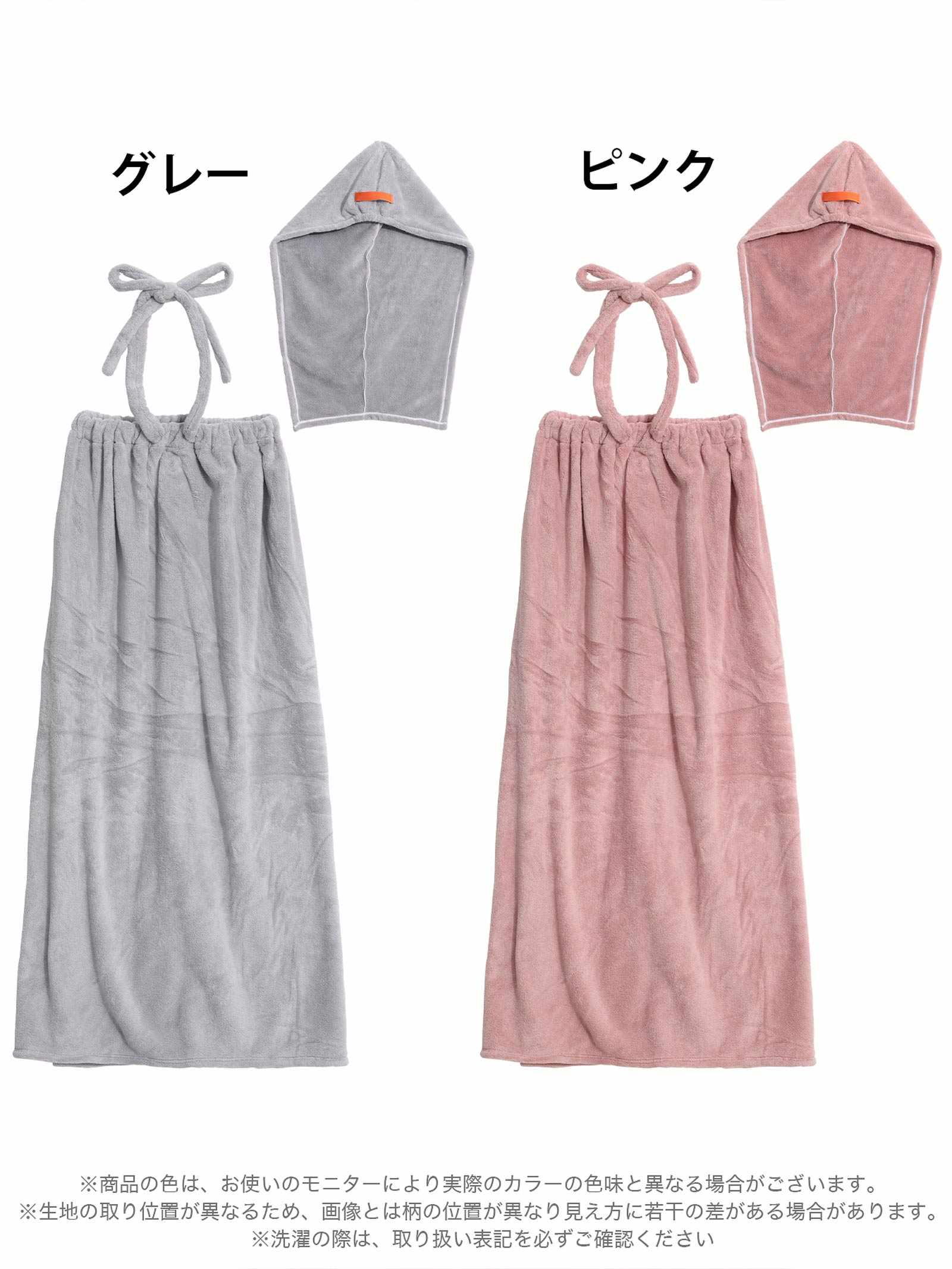 お風呂上がりにサッと羽織れるワンピースタイプの着るタオル&キャップ2点セット♪ふんわりとした生地は肌触りが良く吸水性抜群◎髪をすっぽり包み込むタオルキャップでドライヤー時間も短縮できちゃいます!普段のお風呂上りはもちろん、海やプールでも活躍するアイテムです。