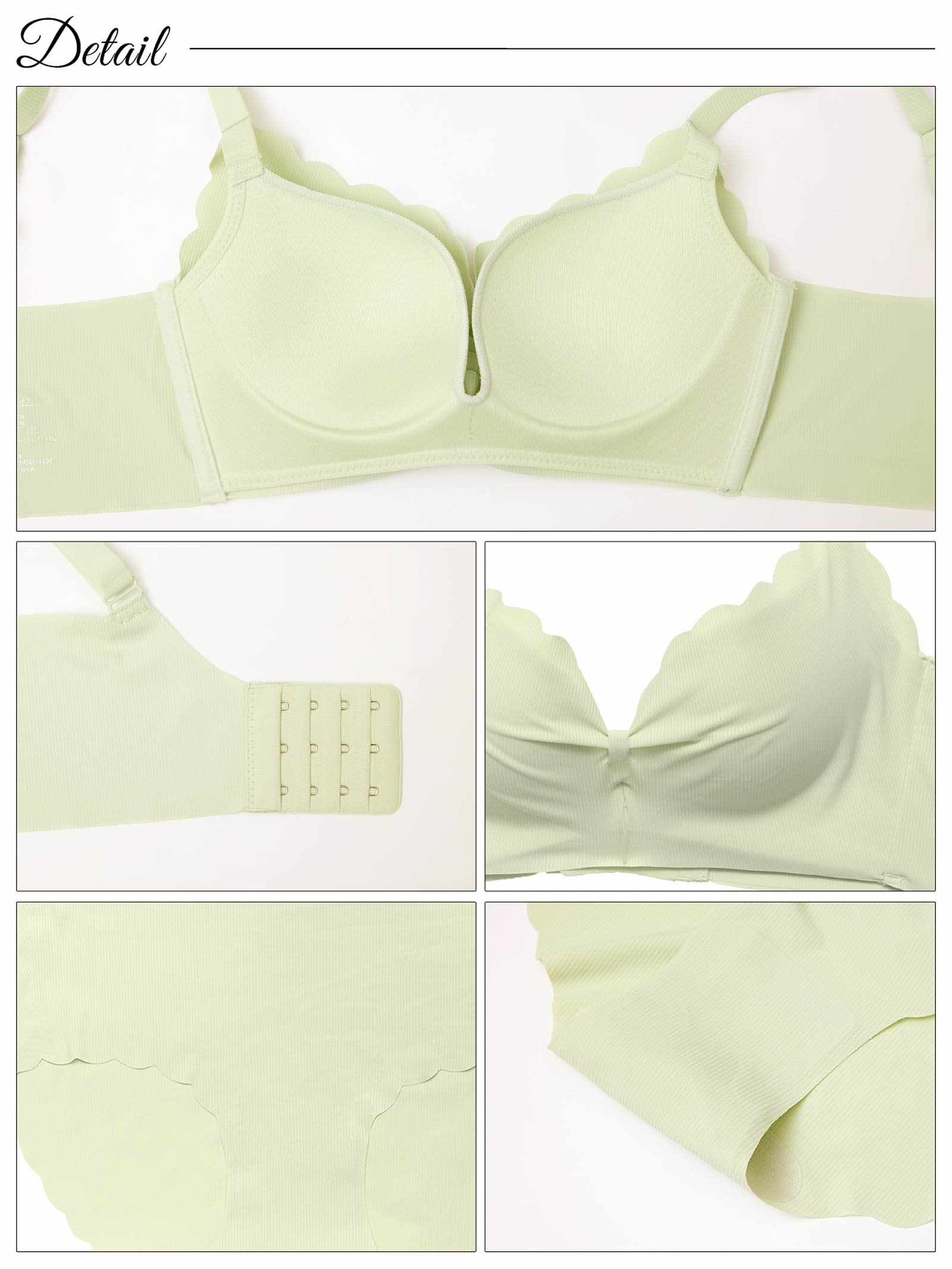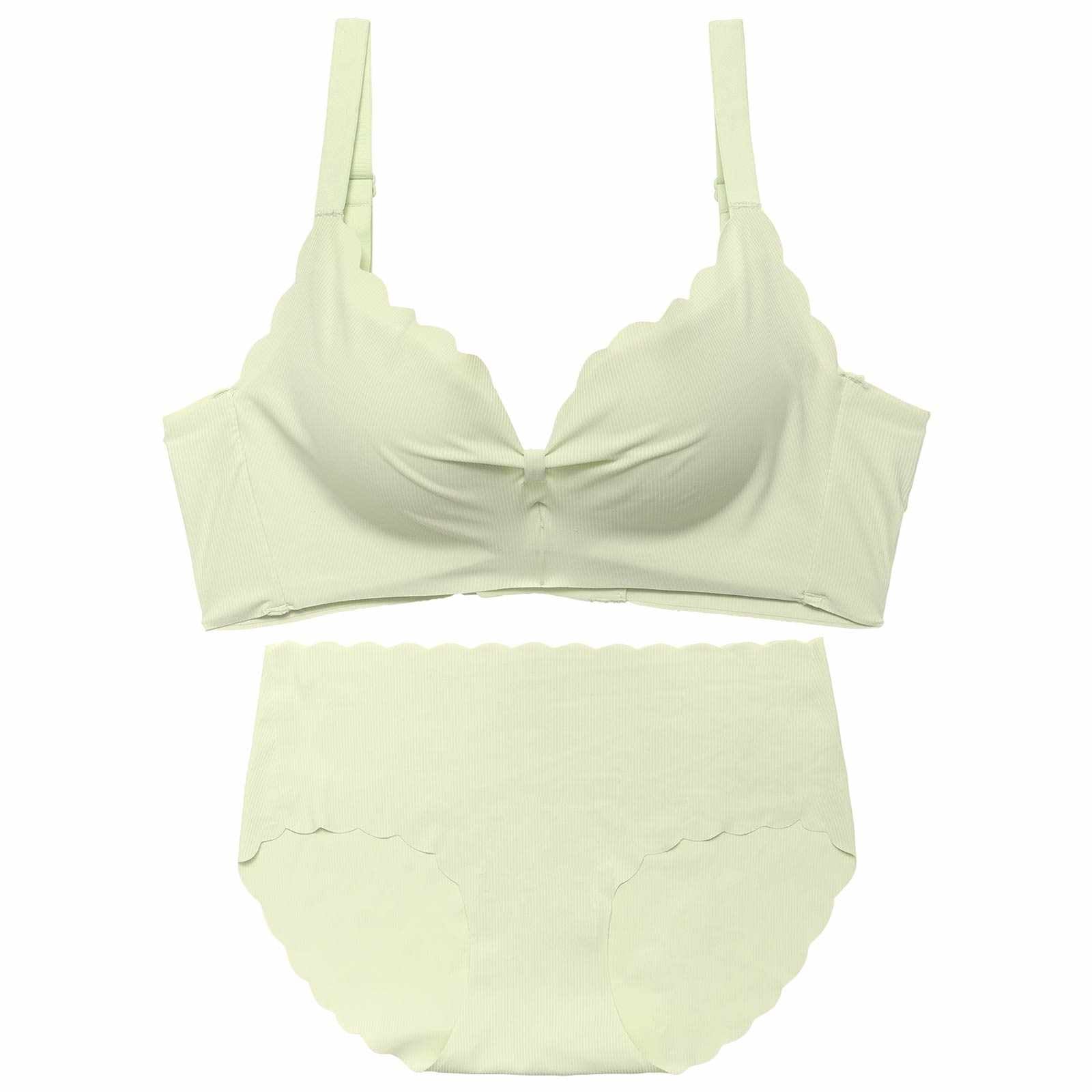 【ノンワイヤー】スカラップリボンシームレスブラジャー&フルバックショーツ