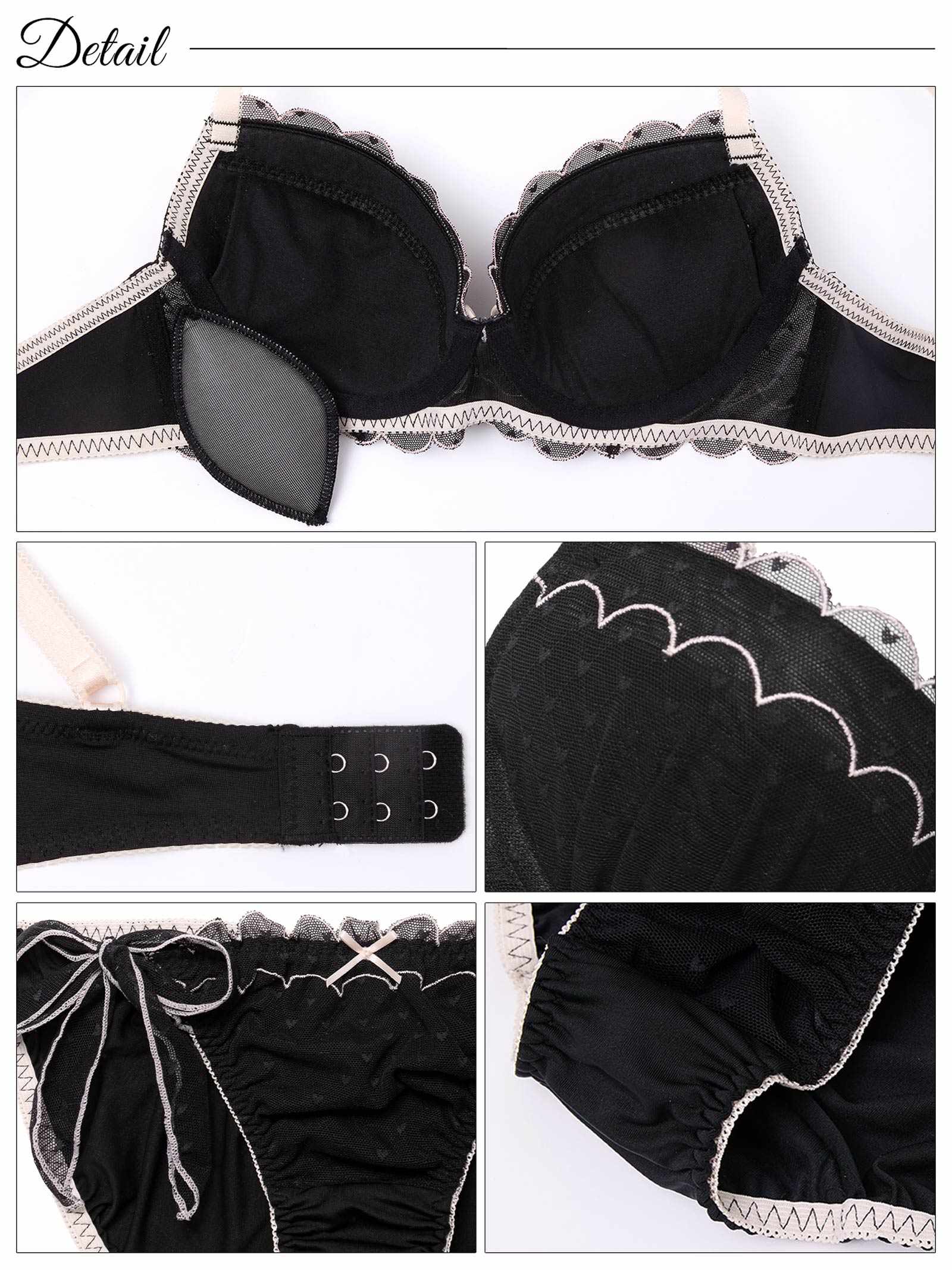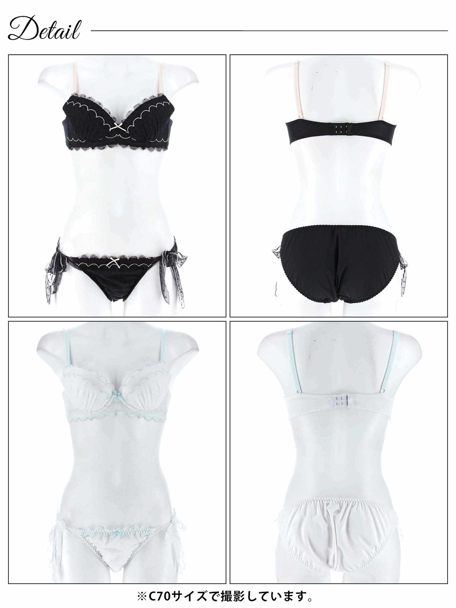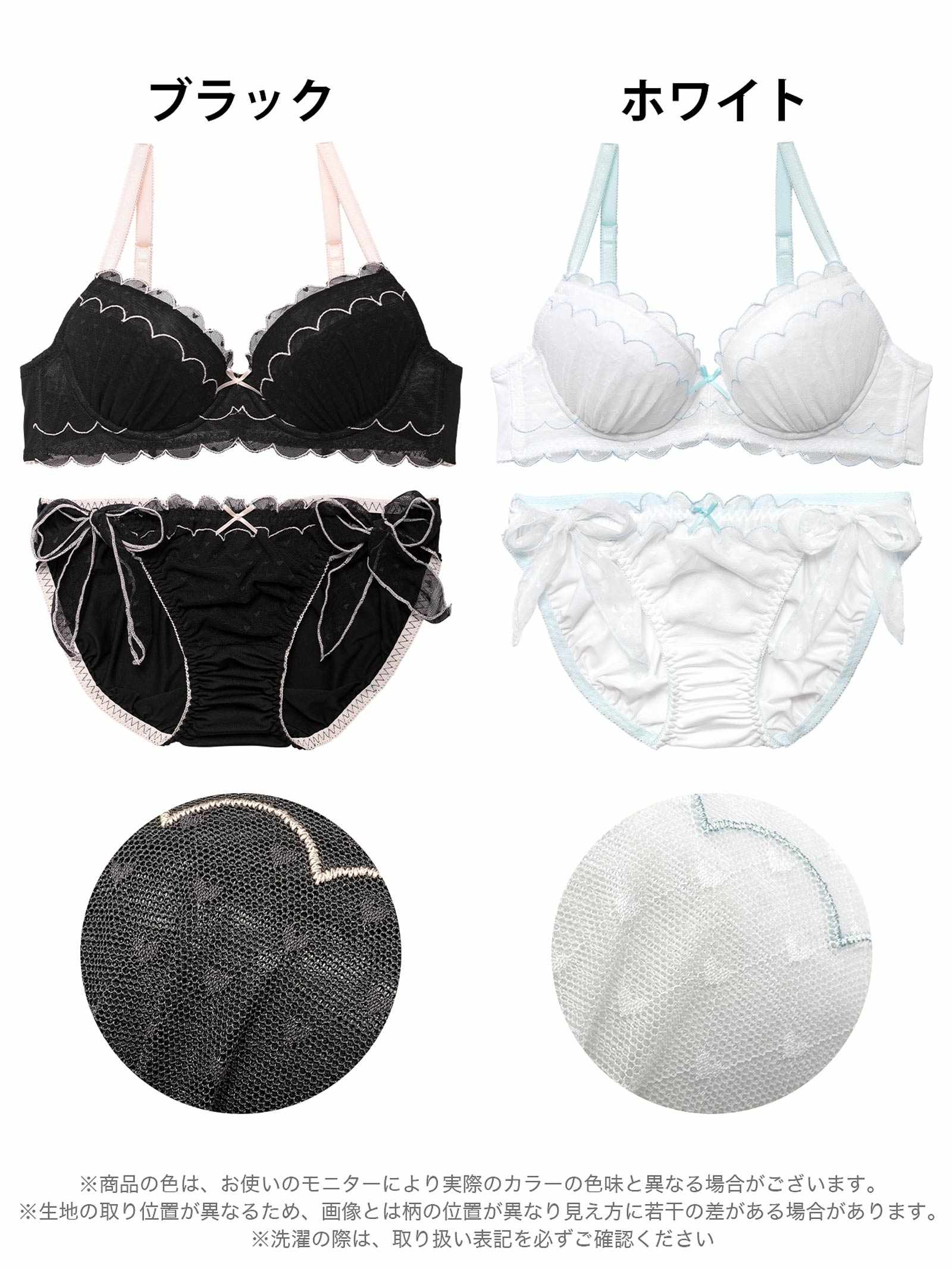 スカラップハートレーシィブラジャー&サイド紐フルバックショーツ
