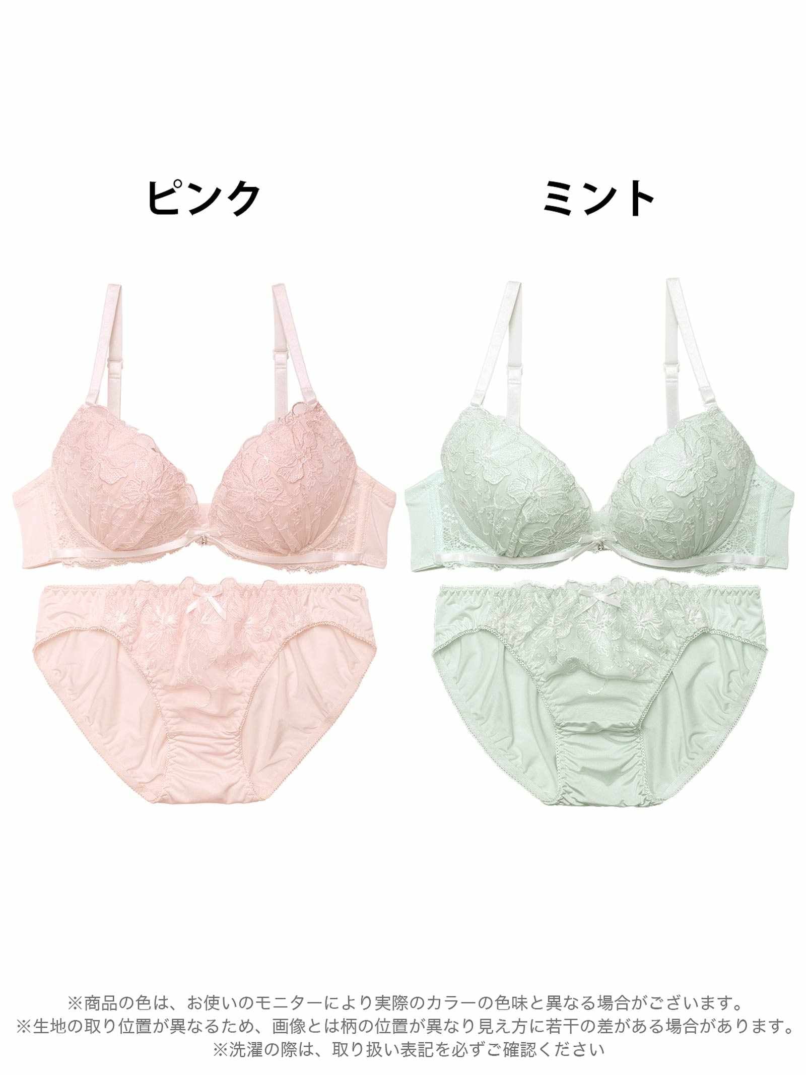 パステルリボンブルーミングブラジャー&フルバックショーツ