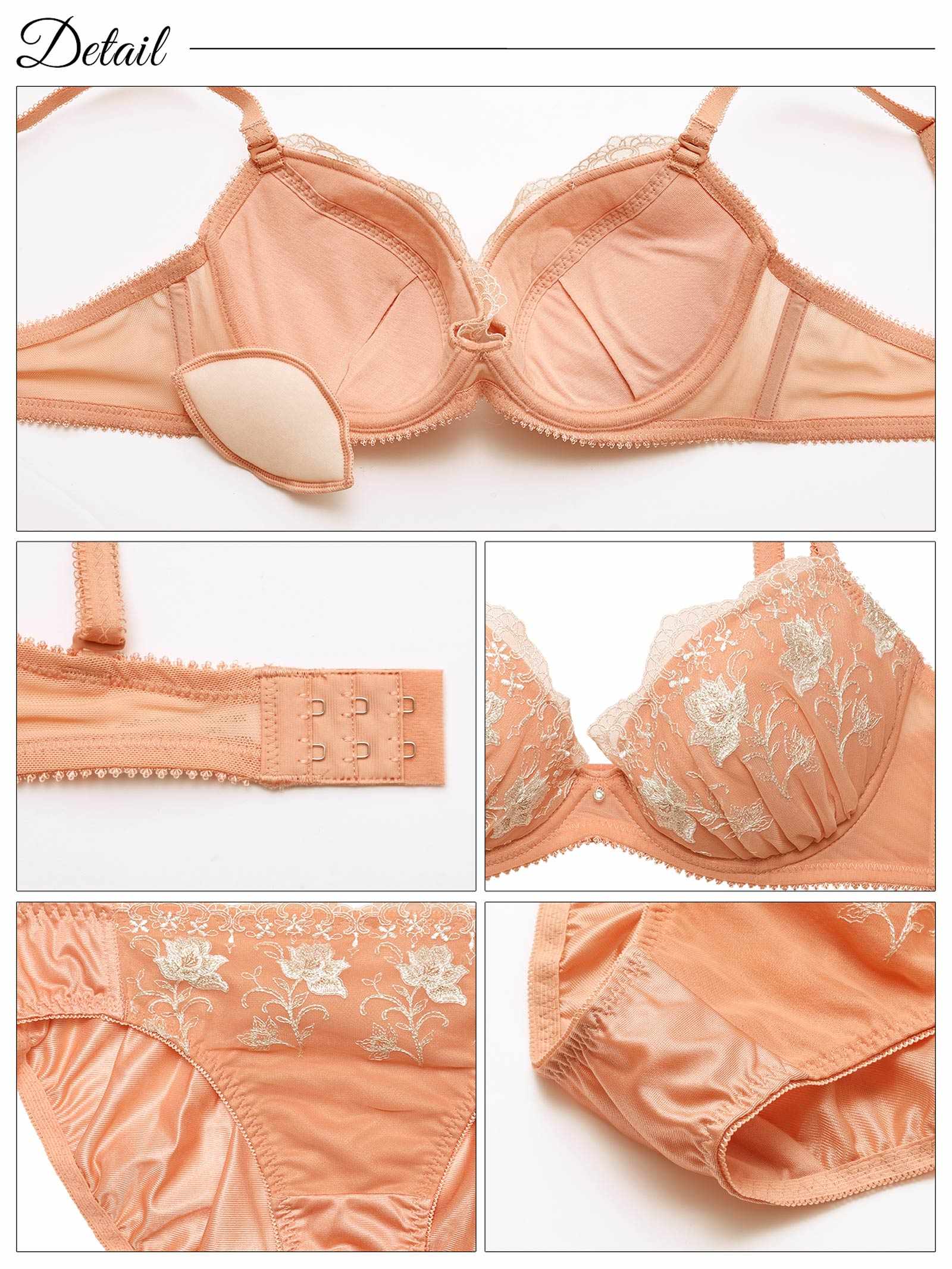ラフィネフラワーエンブロイダリーブラジャー&フルバックショーツ