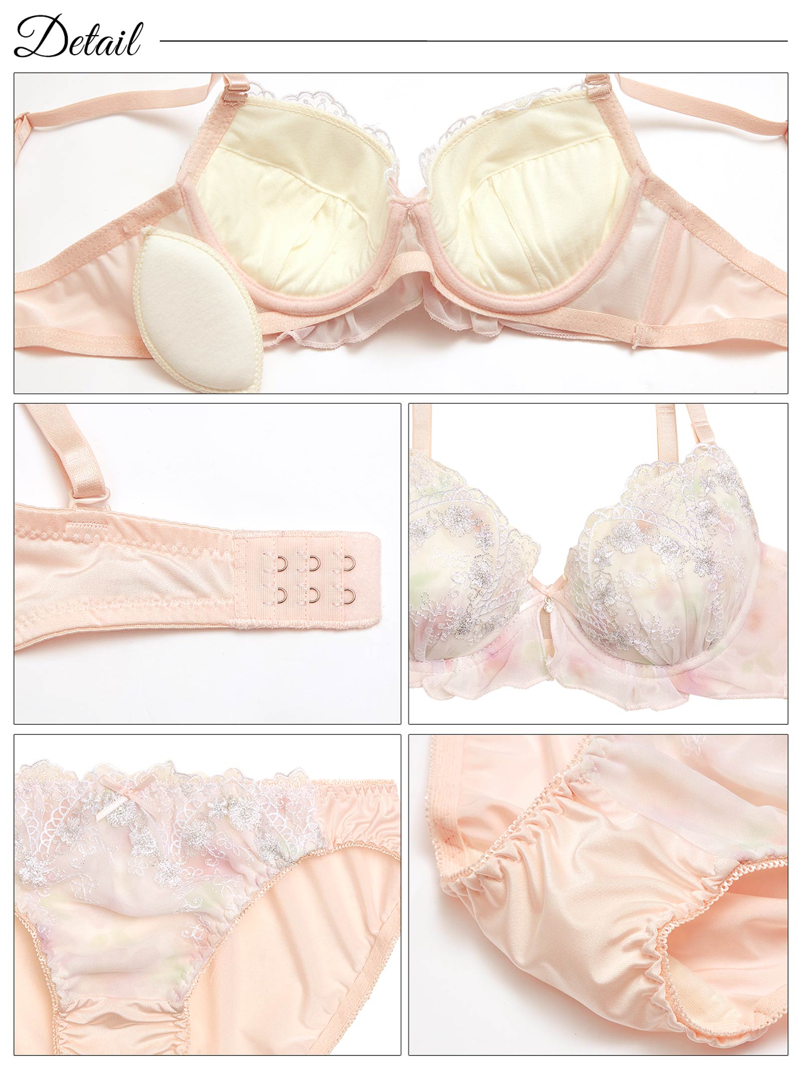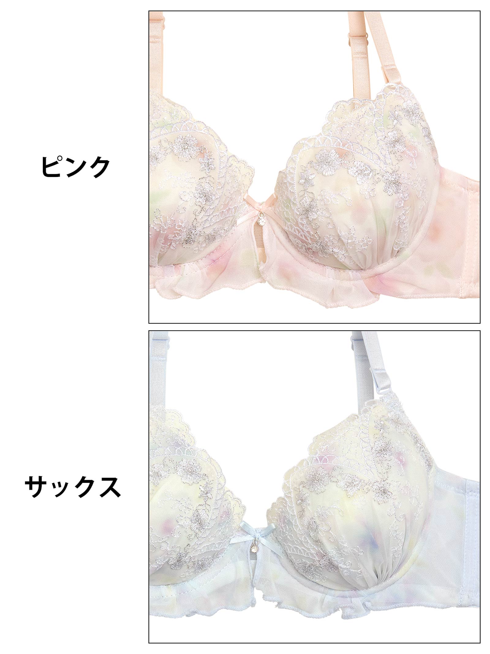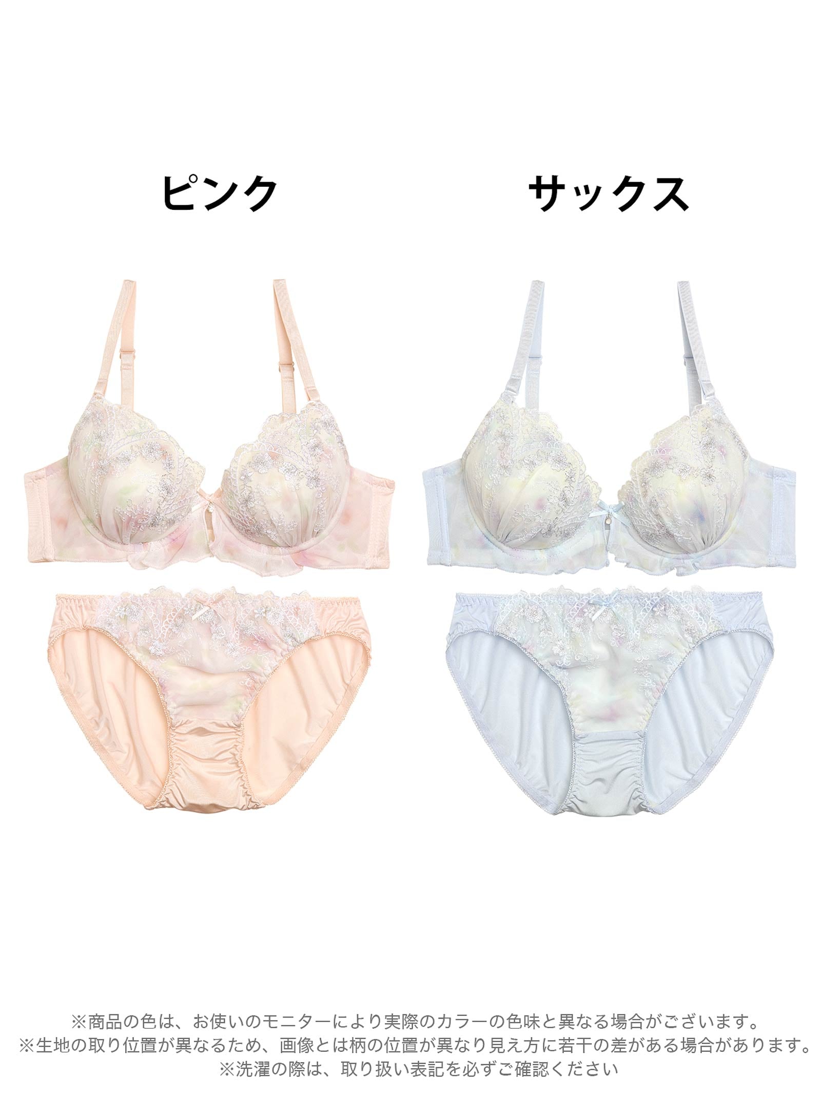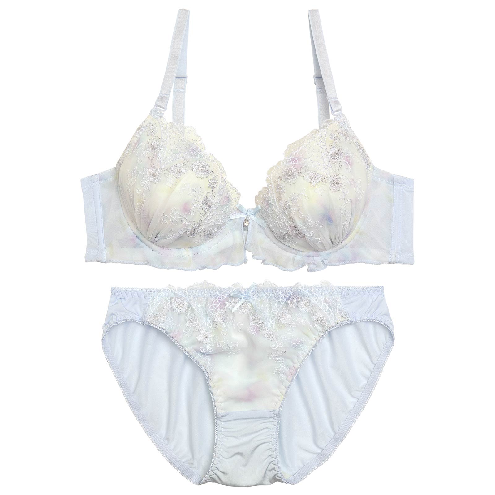 【EFサイズ】ペール水彩フリルレーシィブラジャー&フルバックショーツ