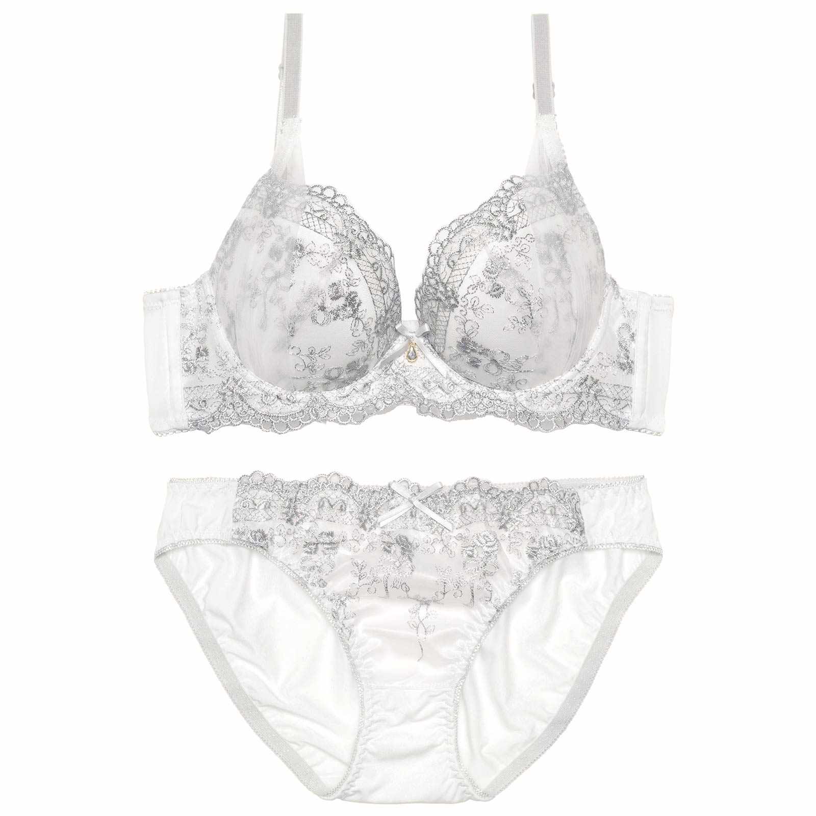 【EFサイズ】クラシカルリボンブーケ育乳脇高ラジャー&フルバックショーツ