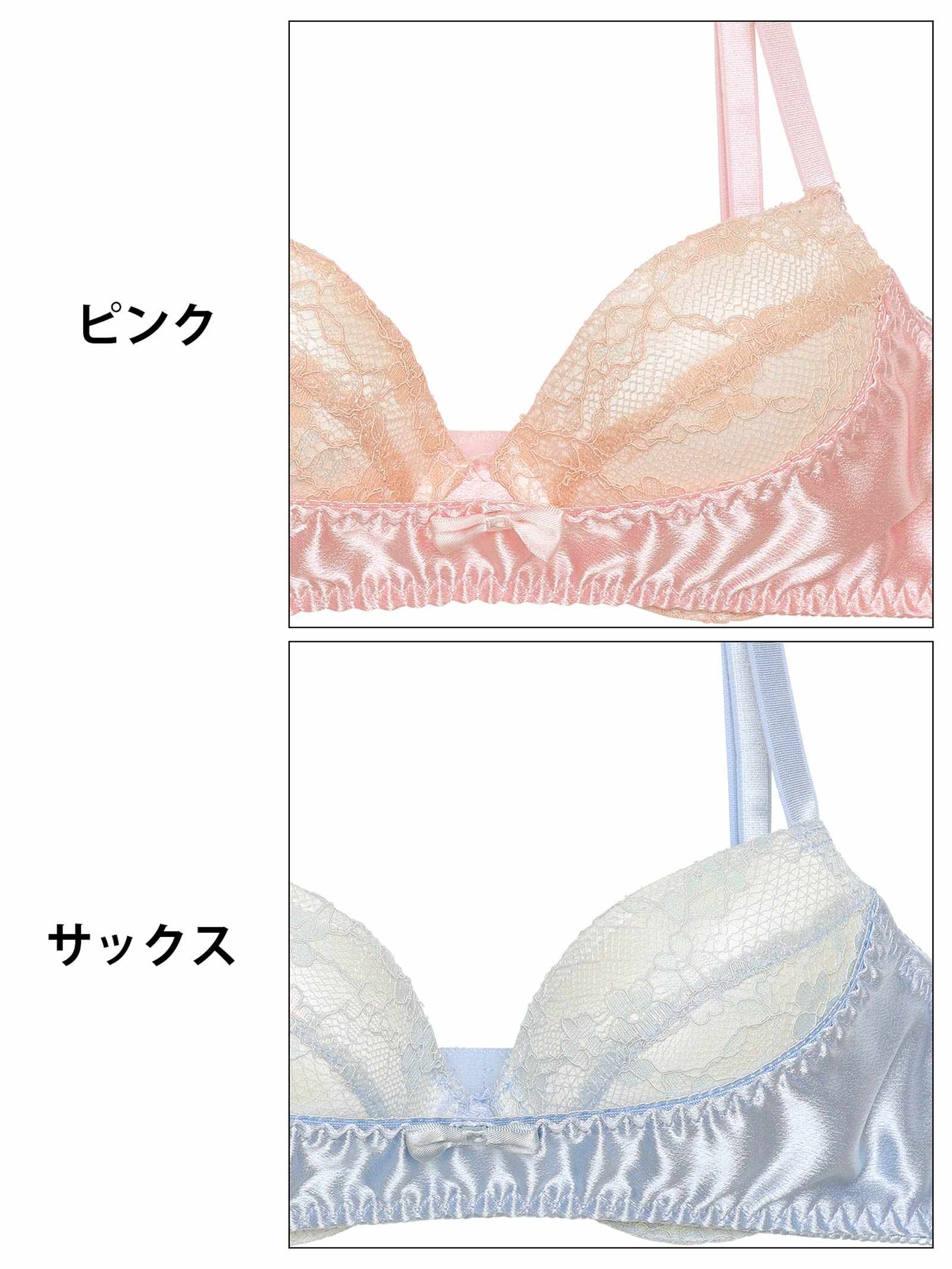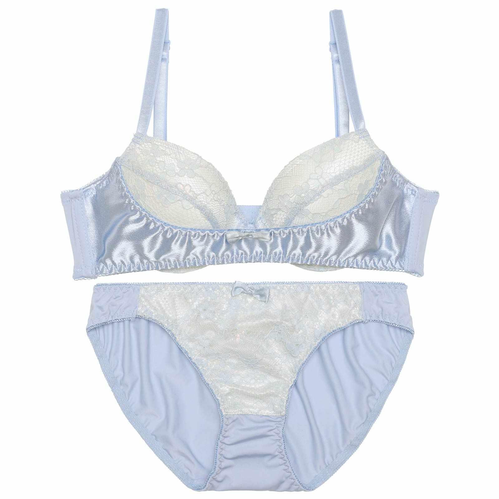 フェミニンサテンフルーレット育乳脇高ブラジャー&フルバックショーツ