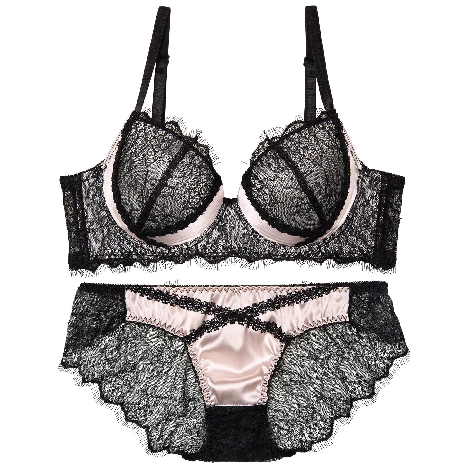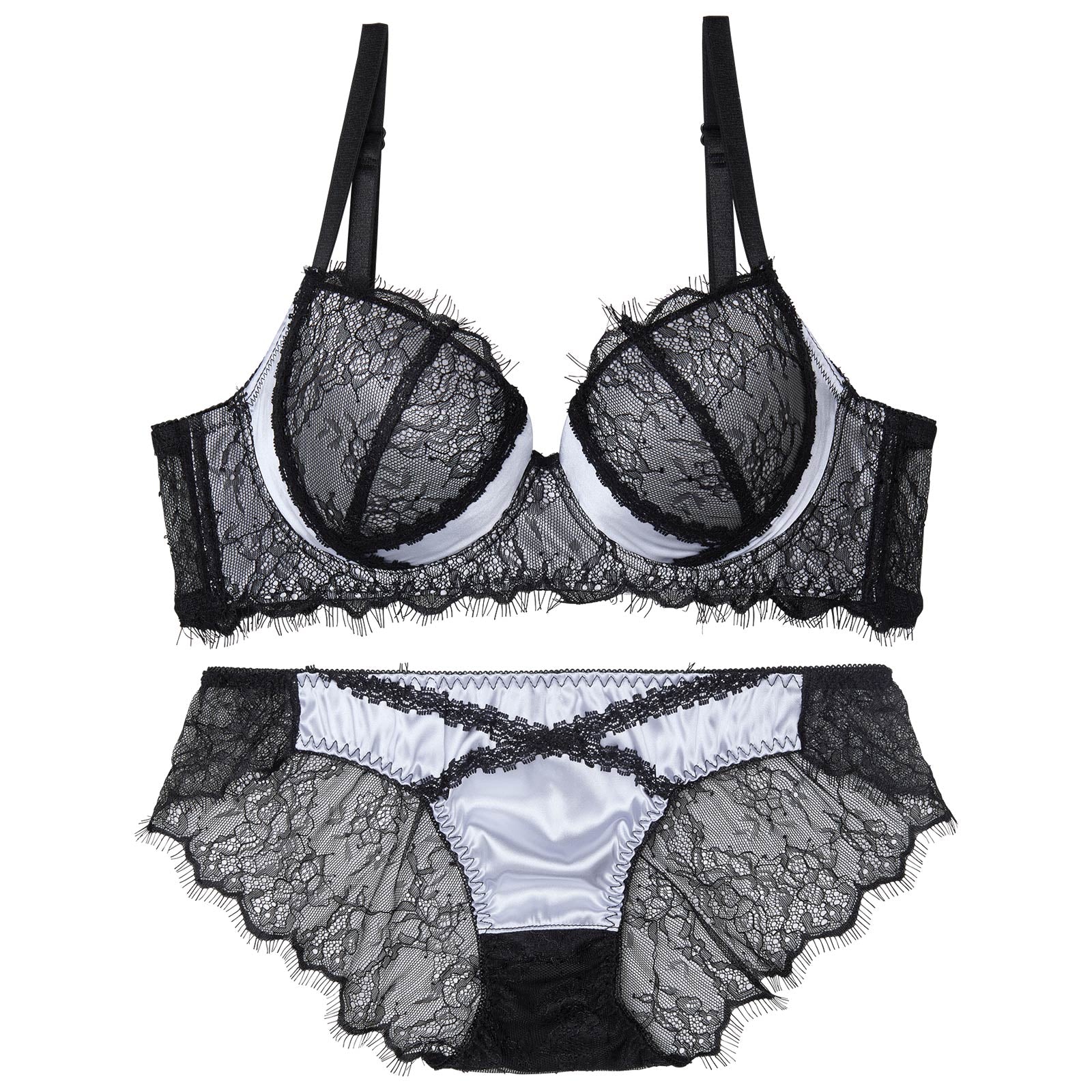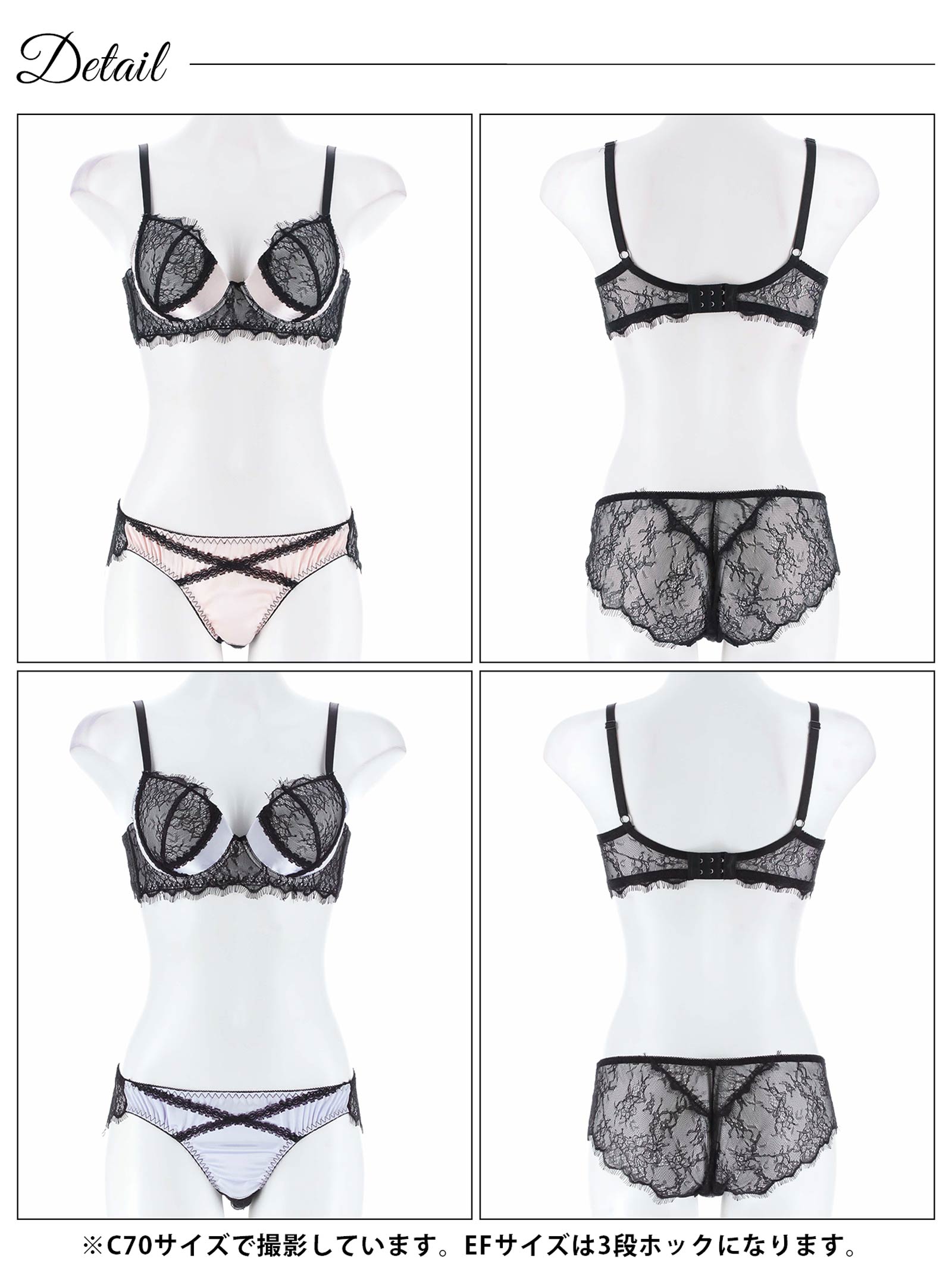 【かとゆり着用】【EFサイズ】パステルサテンクロスレーシィ育乳脇高ブラジャー&バック透けフルバックショーツ