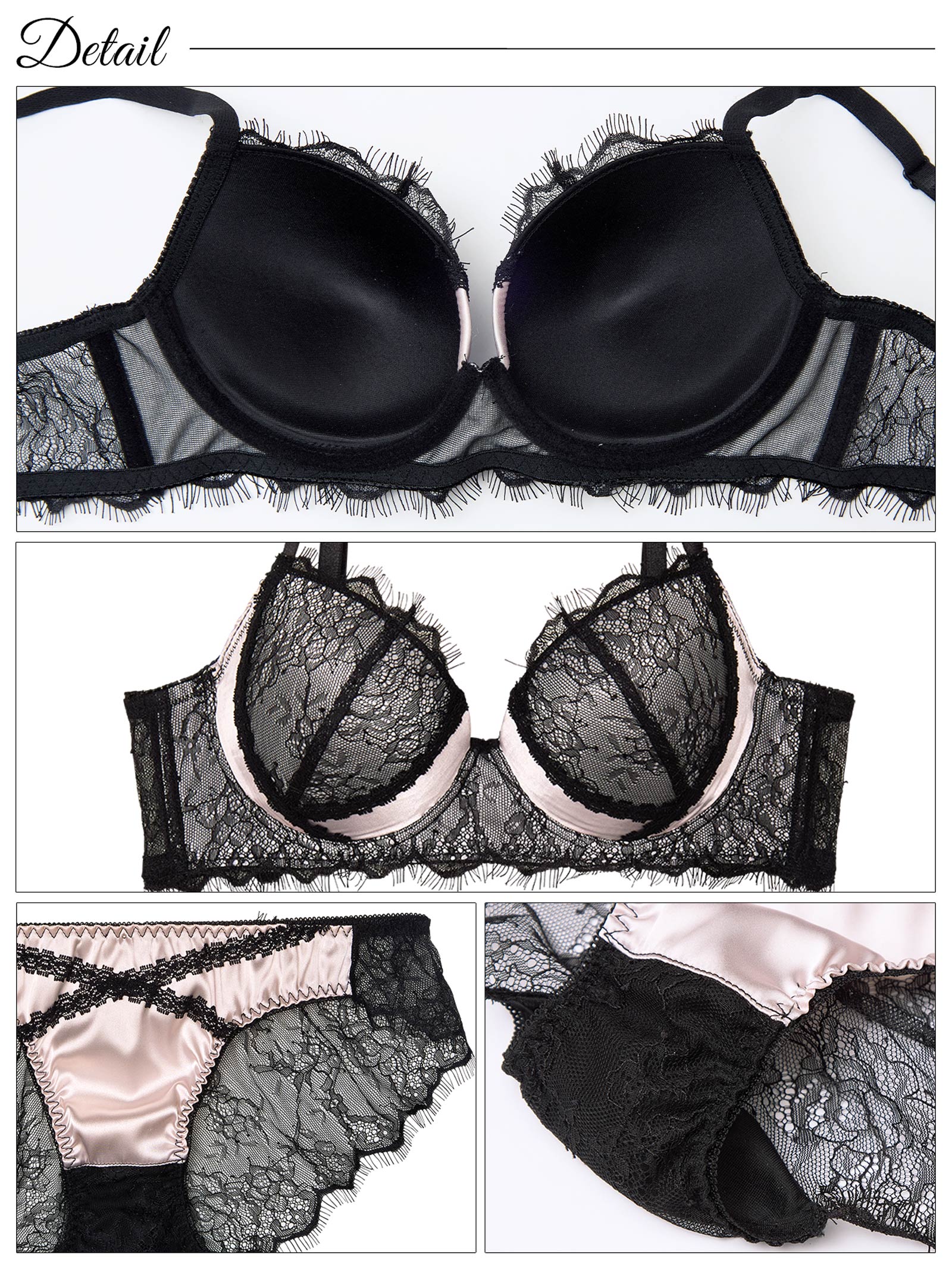 艶やかなパステルカラーのサテン生地にセクシーさ溢れるブラックレースを重ねた甘辛ランジェリー♪ カップやショーツ中心にあしらわれたレースラインがアクセントに◎ 後ろ姿からもこだわった透けショーツが目を惹く1着です。モデル…かとゆり