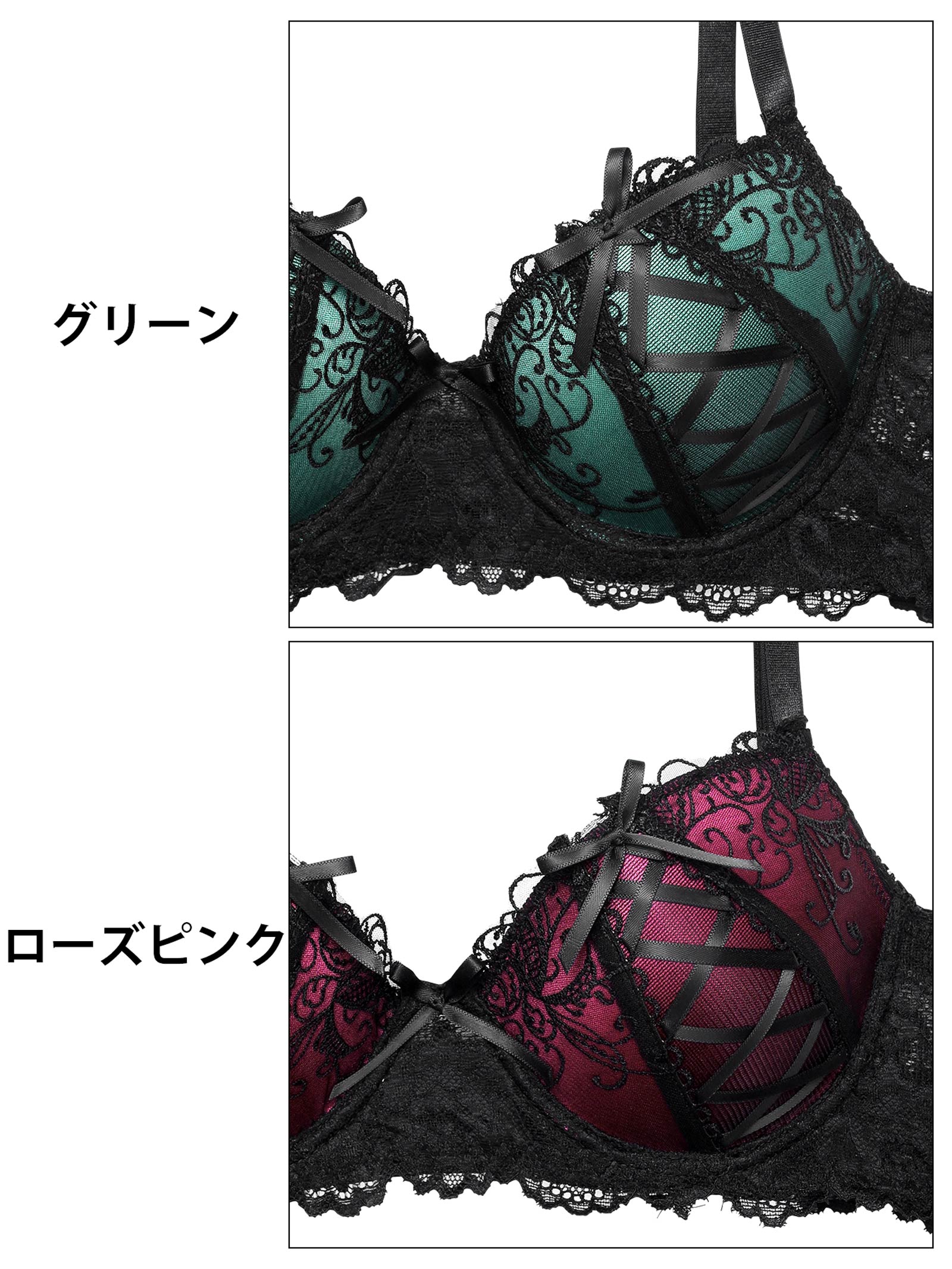ゴシックスピンドルリボン育乳脇高ブラジャー&バック透けTバックショーツ