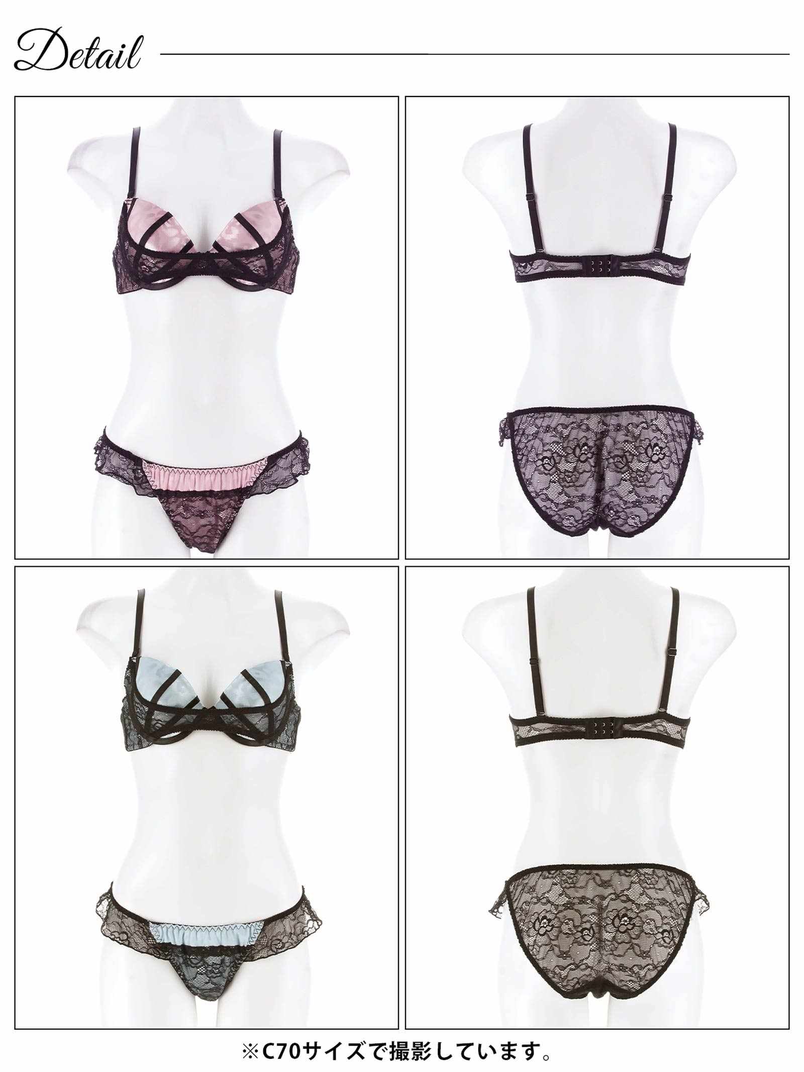 パステルカラーのサテン生地に艶やかなレオパード柄をさり気なくあしらったランジェリー。バストを持ち上げるようなレース囲みとカップのラインデザインが被りにくくオシャレ感アップ◎ 後ろ姿からも色気漂うレースショーツです♪