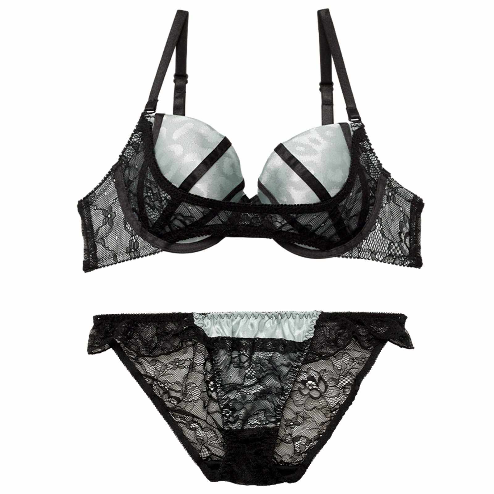 レオパードサテンライン育乳脇高ブラジャー&バック透けフルバックショーツ