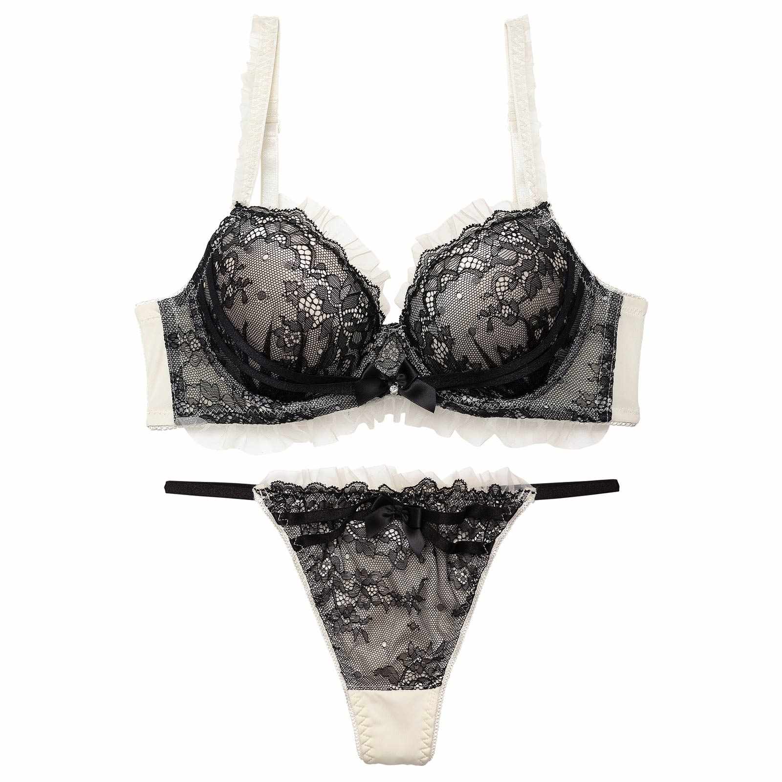 ダスティゴシックフリルチュール育乳脇高ブラジャー&Tバックショーツ