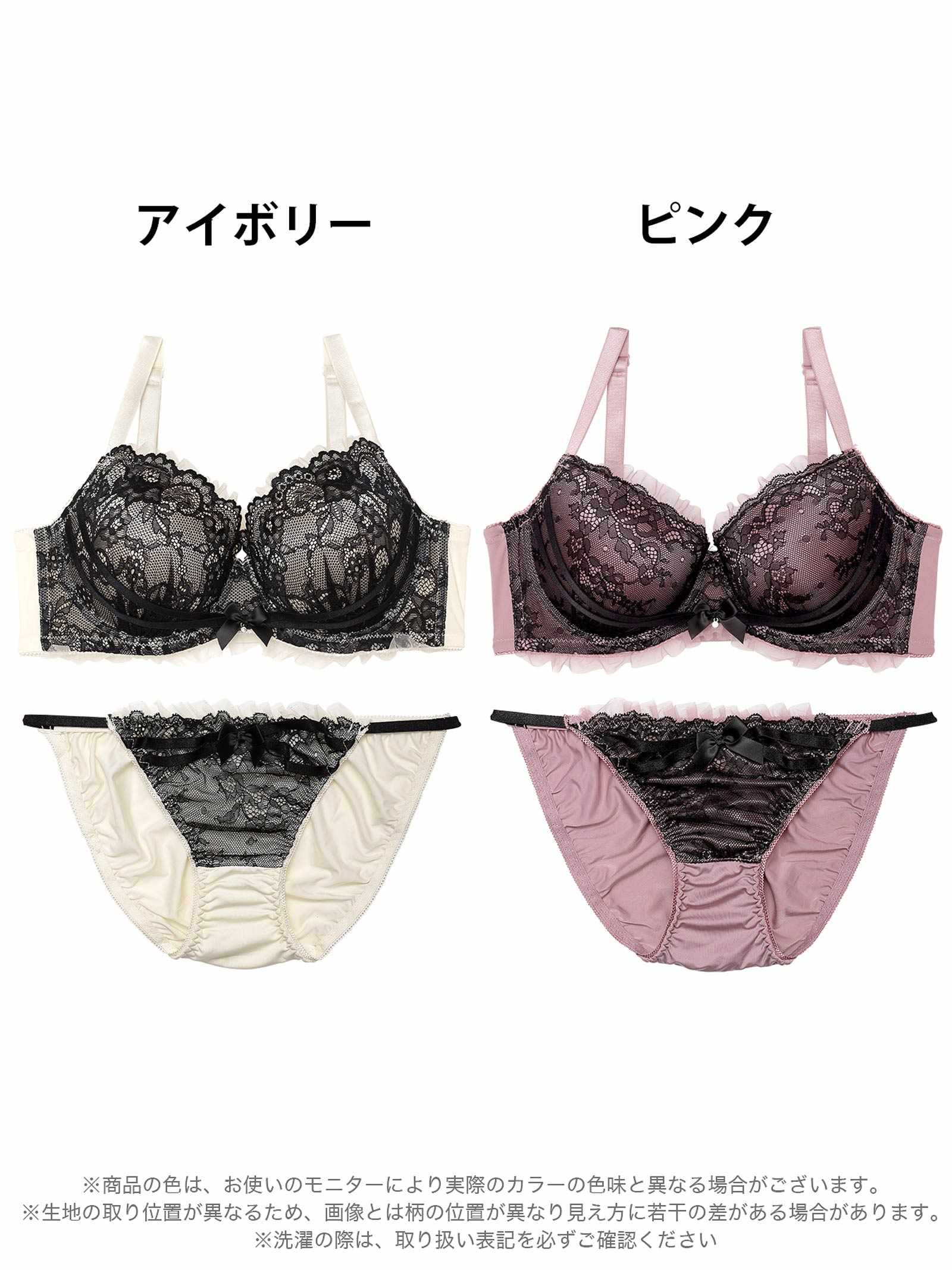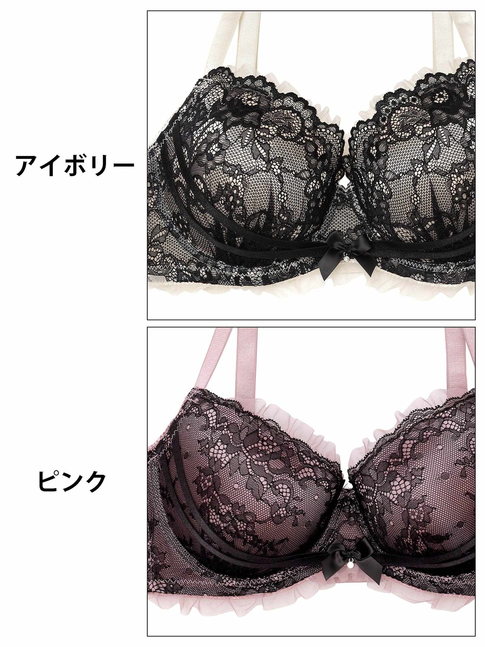 4/23新作!【EFサイズ】ダスティゴシックフリルチュール育乳脇高ブラジャー&フルバックショーツ