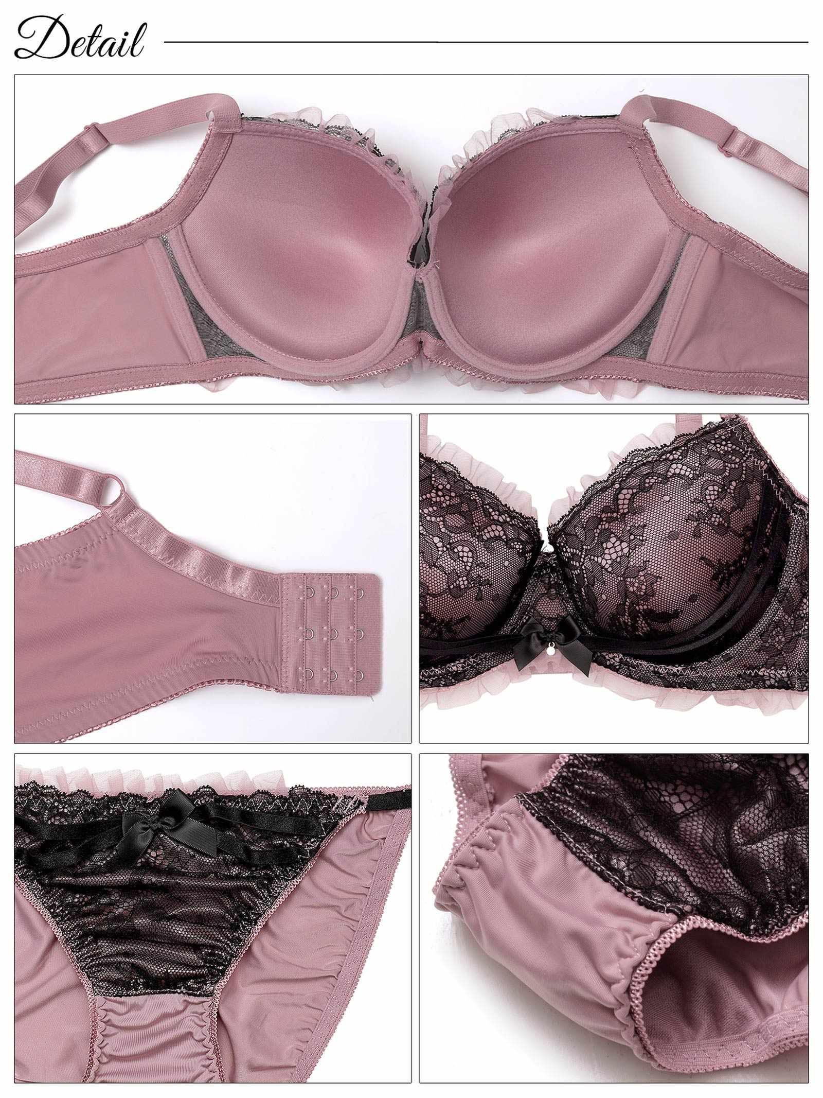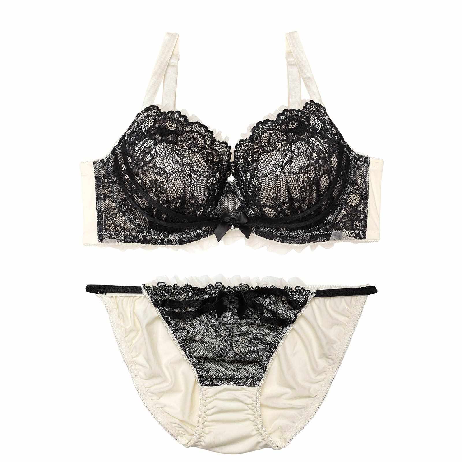 【EFサイズ】ダスティゴシックフリルチュール育乳脇高ブラジャー&フルバックショーツ