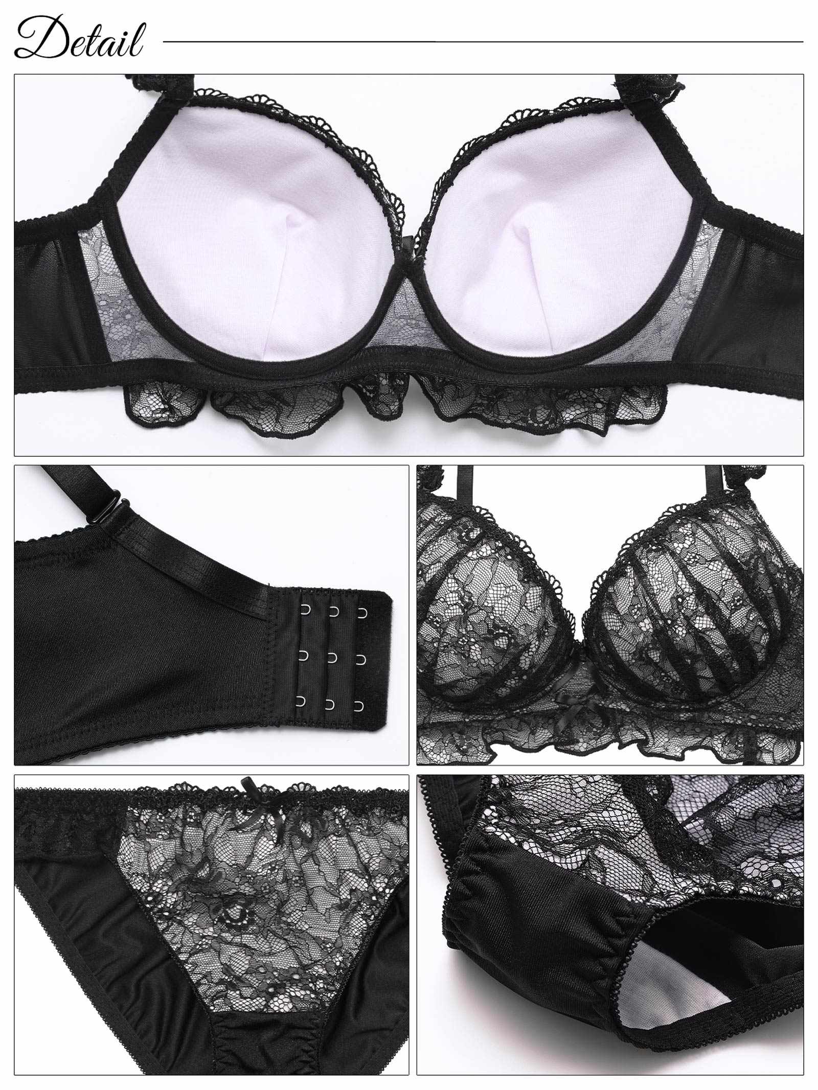12/12再販!【EFサイズ】ディープフリルレーシィ育乳脇高ブラジャー&フルバックショーツ