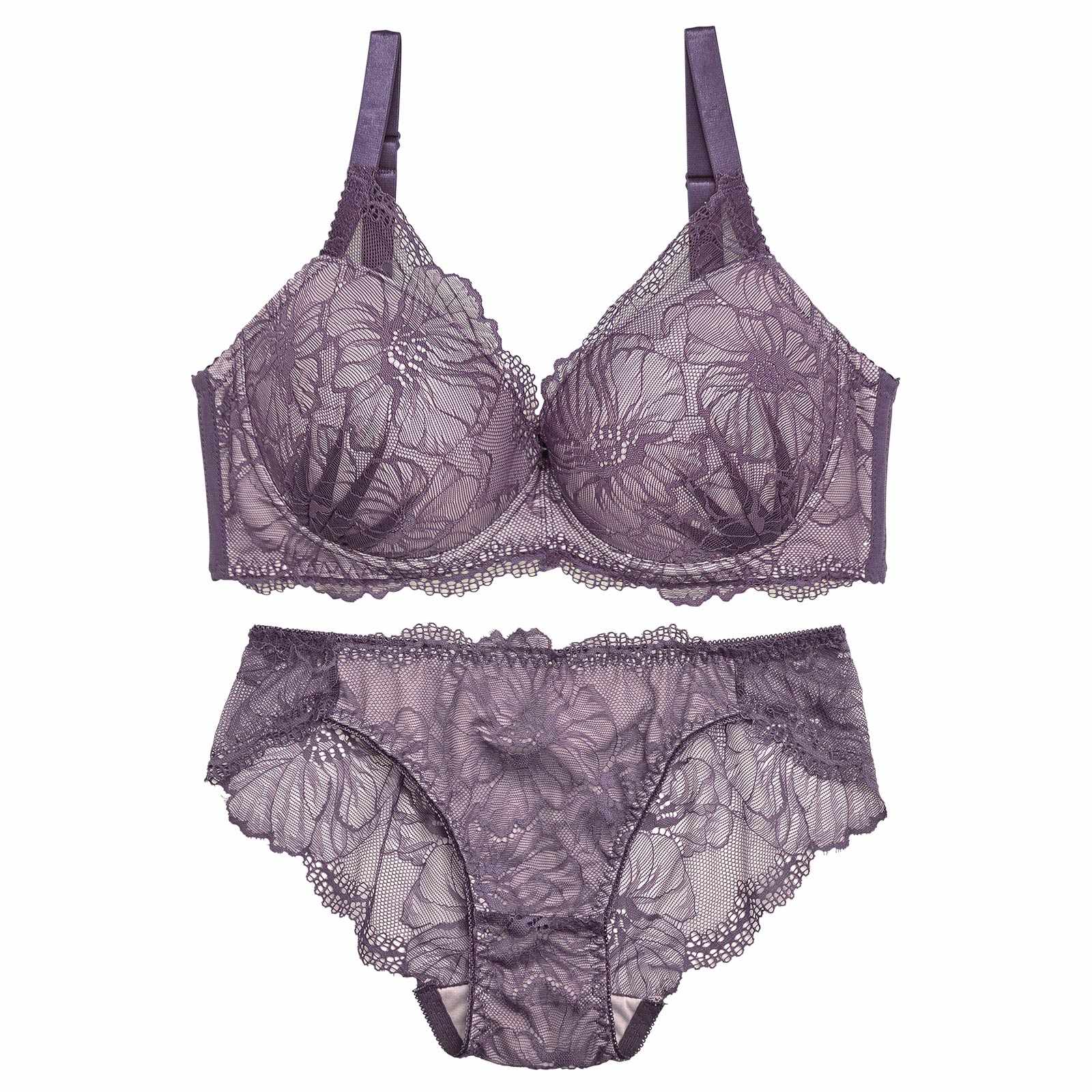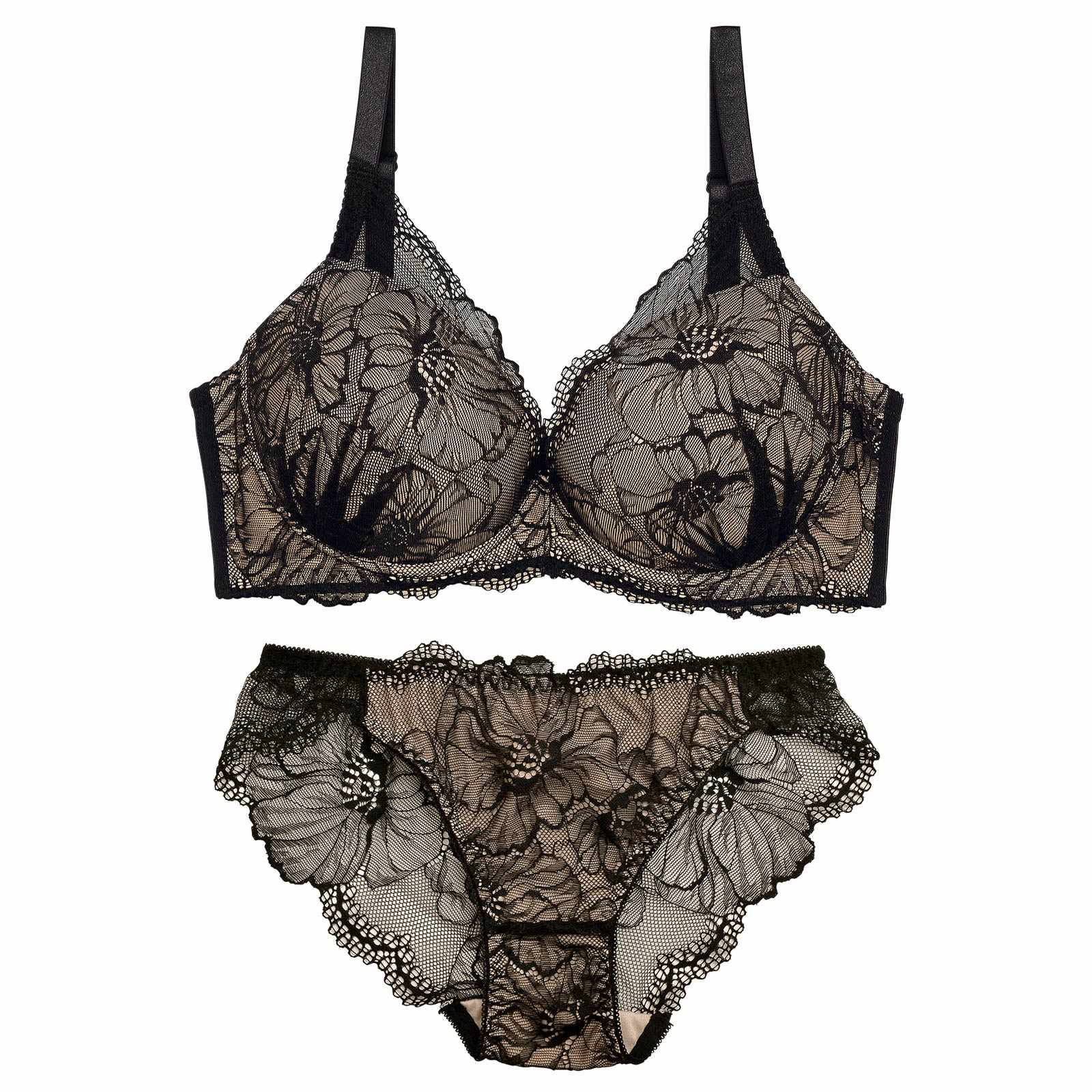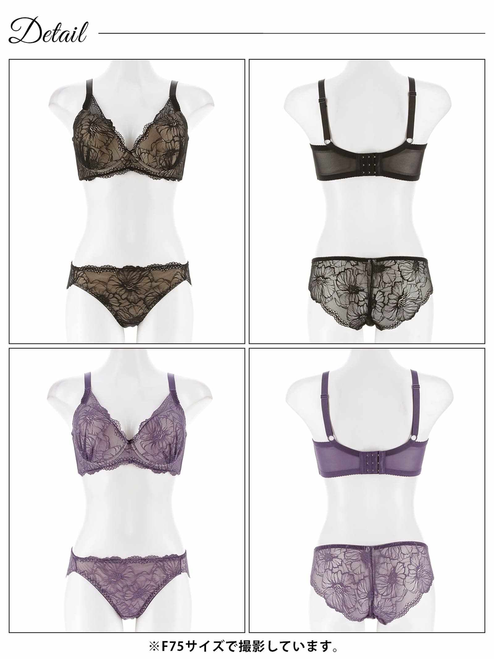 12/10再販!【三上悠亜着用】【EFサイズ】ラグジュアリーフラワーレース育乳脇高ブラジャー&バック透けフルバックショーツ
