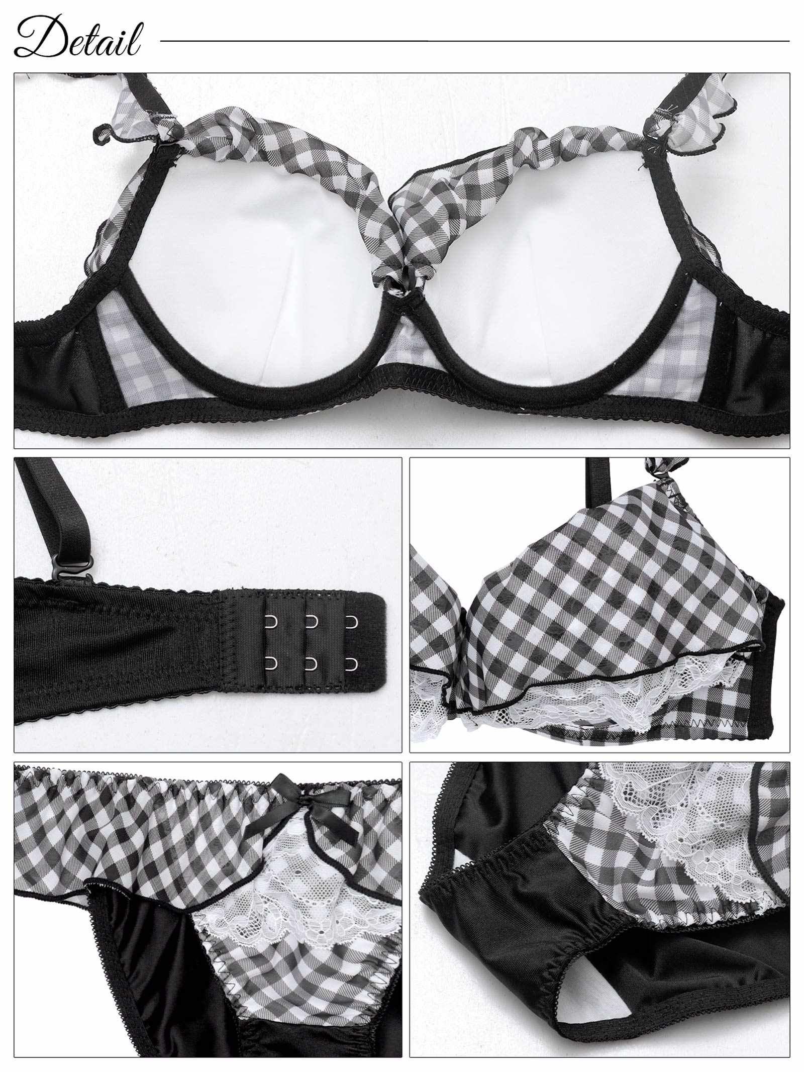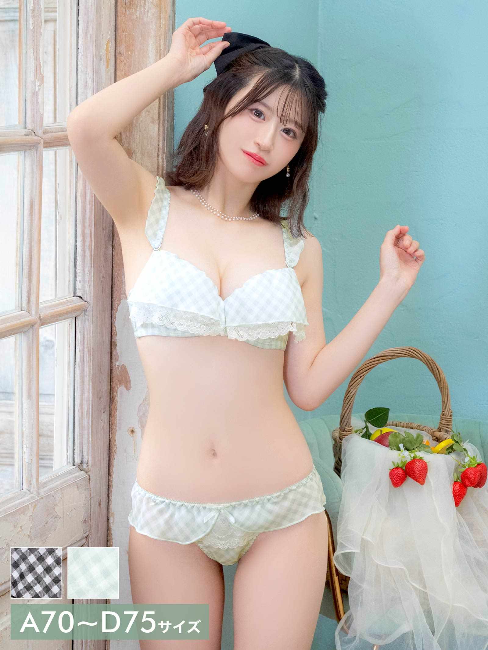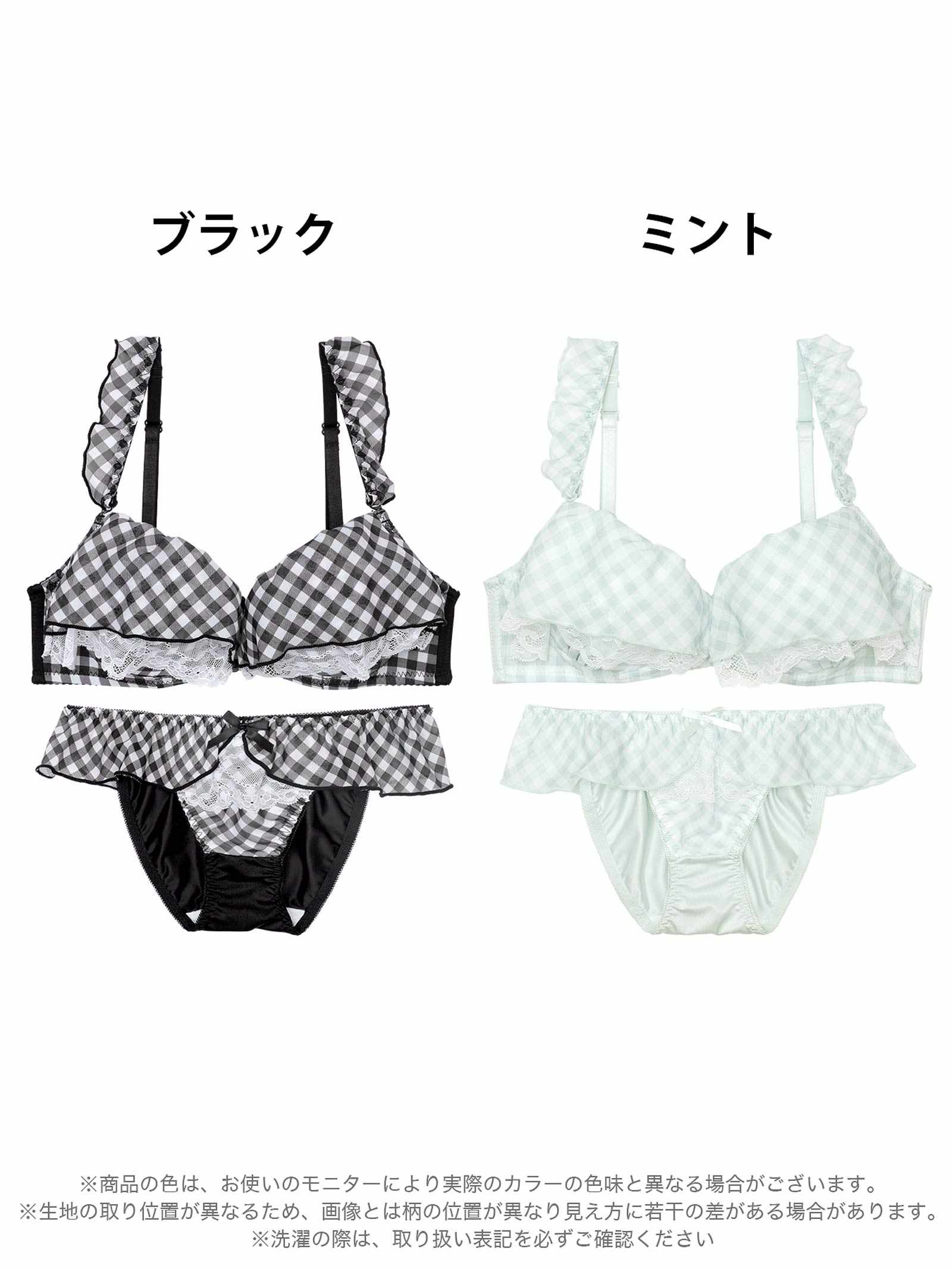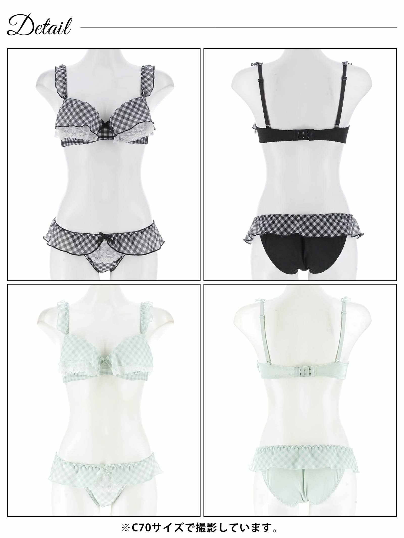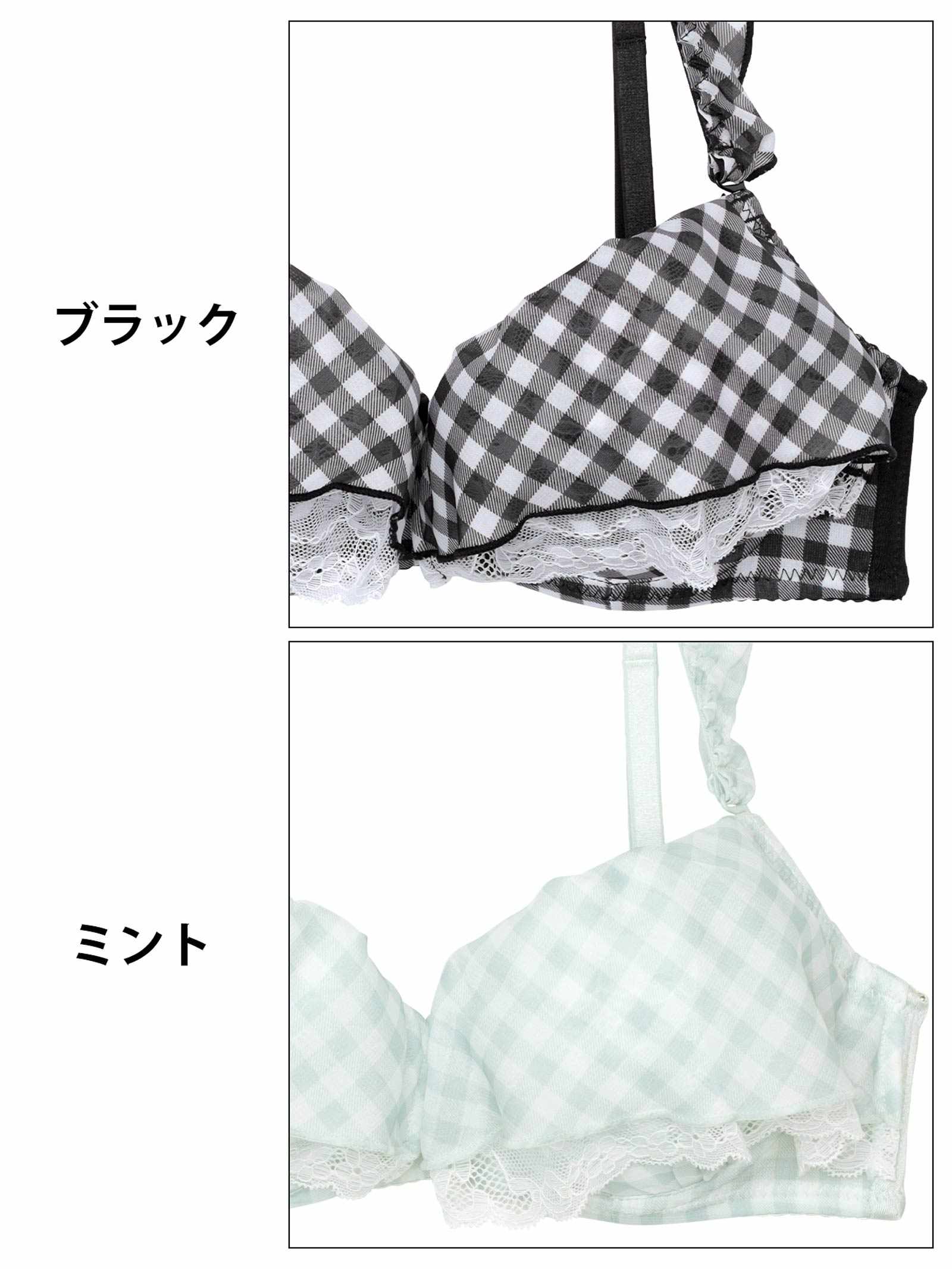 ギンガムチェック柄のフリルシフォンをふんだんにあしらったとびきりキュートな甘々ランジェリー。フリルからのぞくホワイトレースが、より一層女の子らしく清楚な雰囲気を演出!ショーツにもフリルがぐるっと一周したデザインで後ろ姿まで華やかに見せてくれます♪