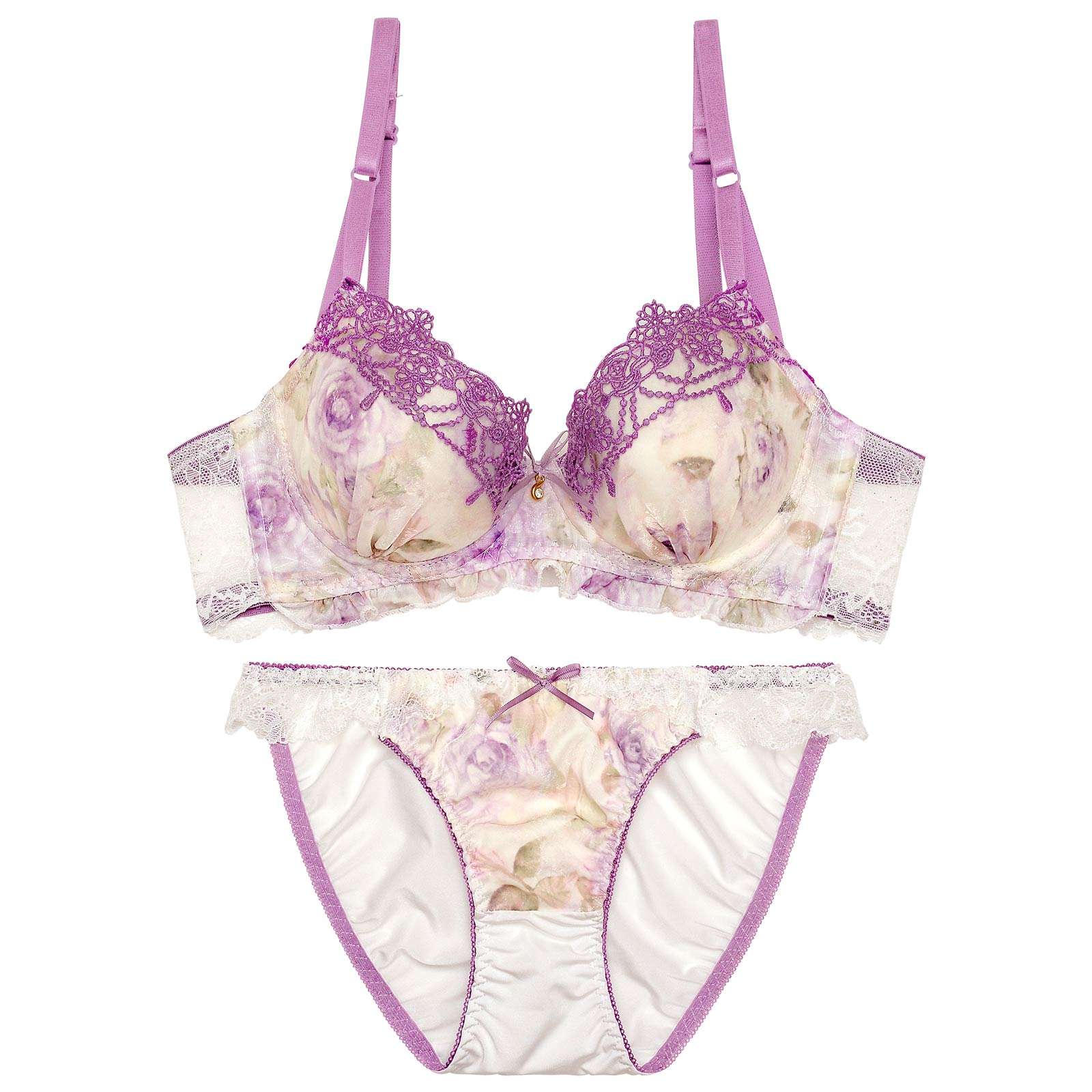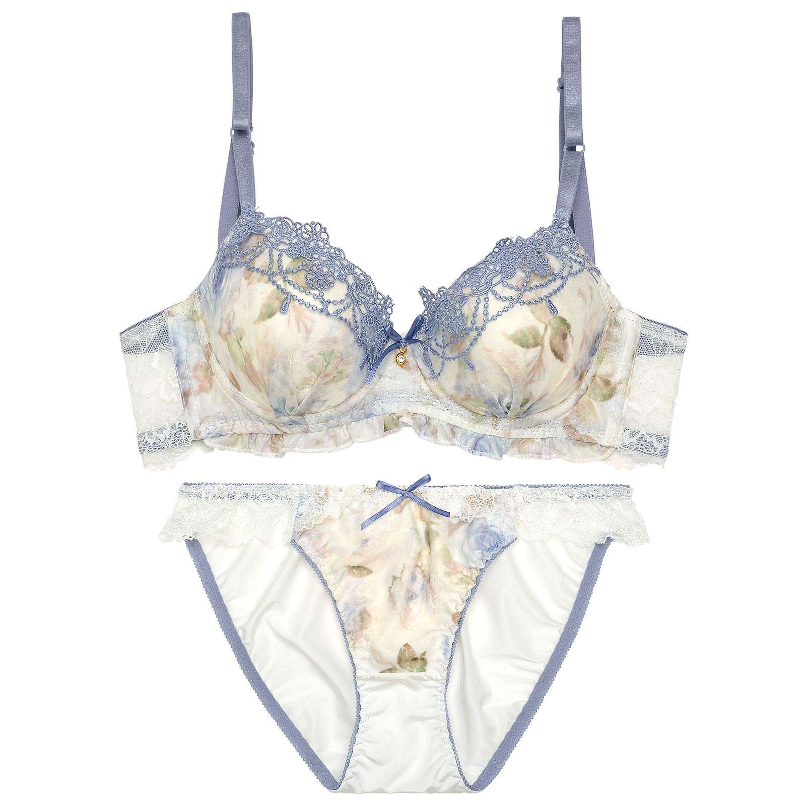 シャンデリア水彩フルール育乳脇高ブラジャー&フルバックショーツ