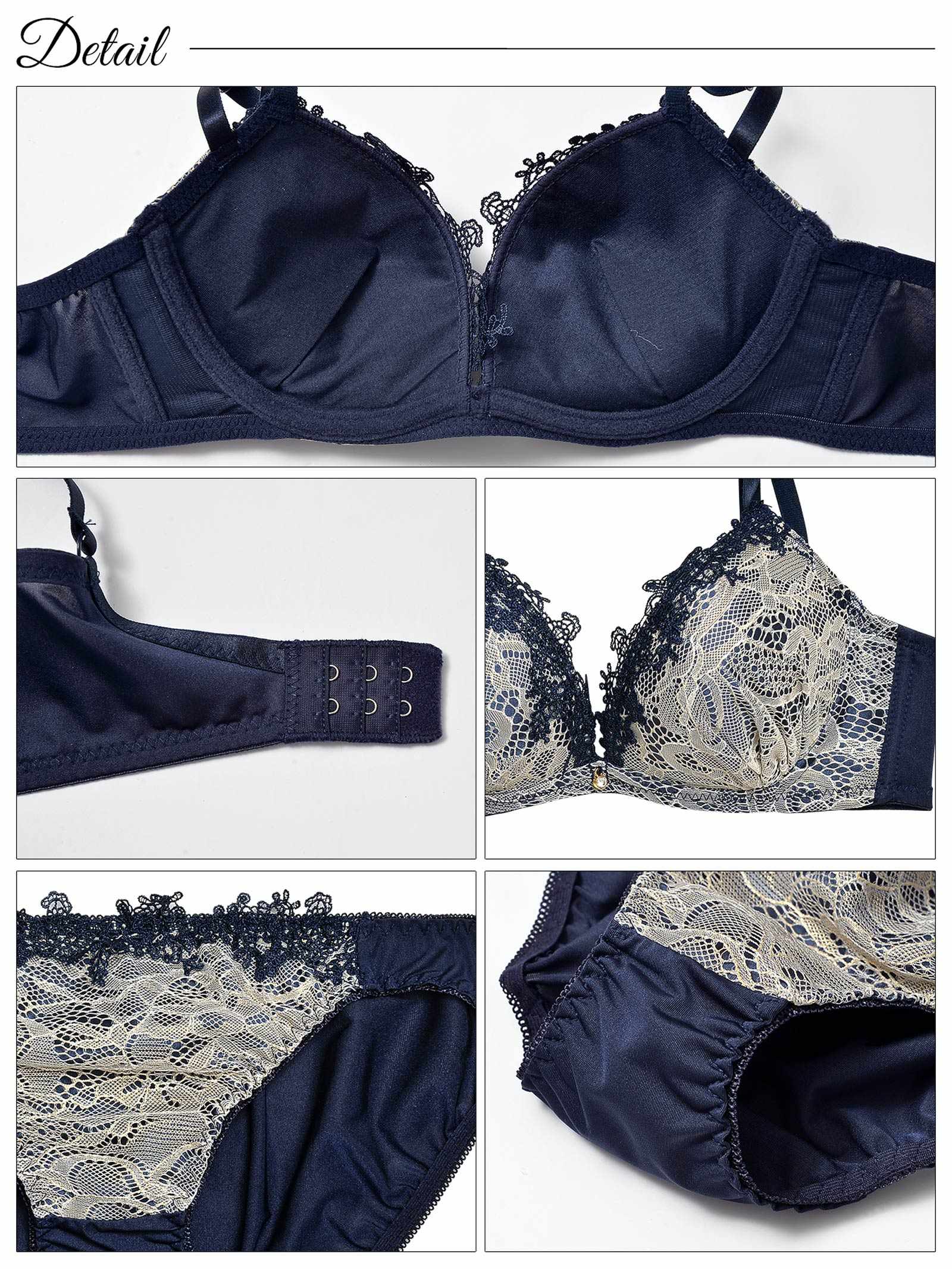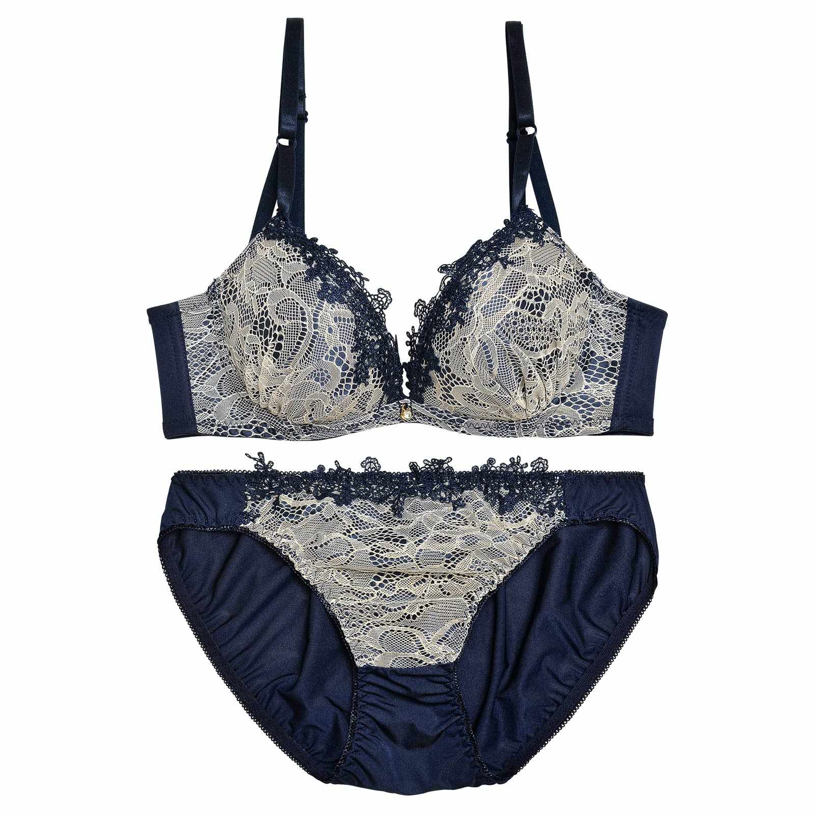 クラシックフローラルレース育乳脇高ブラジャー&フルバックショーツ