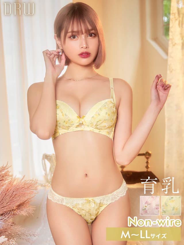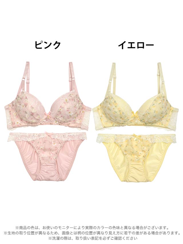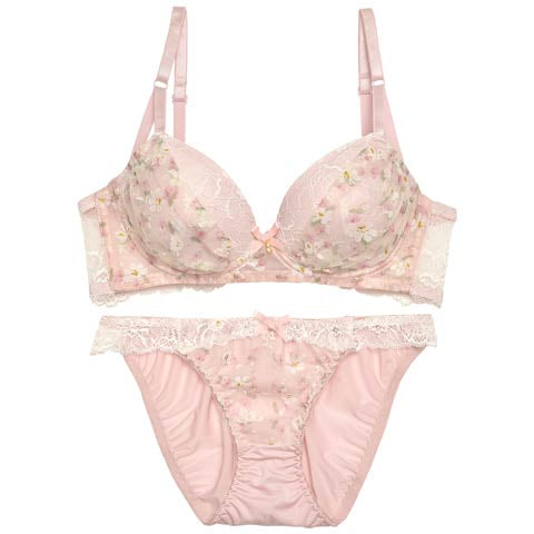 【ノンワイヤー】ピュアブルームガーデン育乳脇高ブラジャー&フルバックショーツ