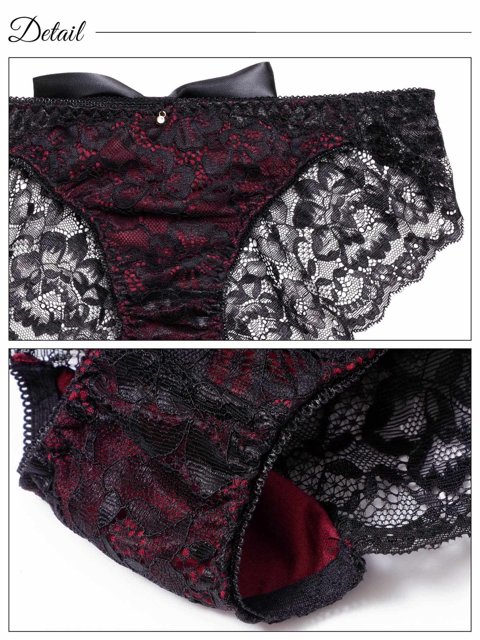 ゴシックディープリボン育乳脇高ブラジャー&バック透けフルバックショーツ