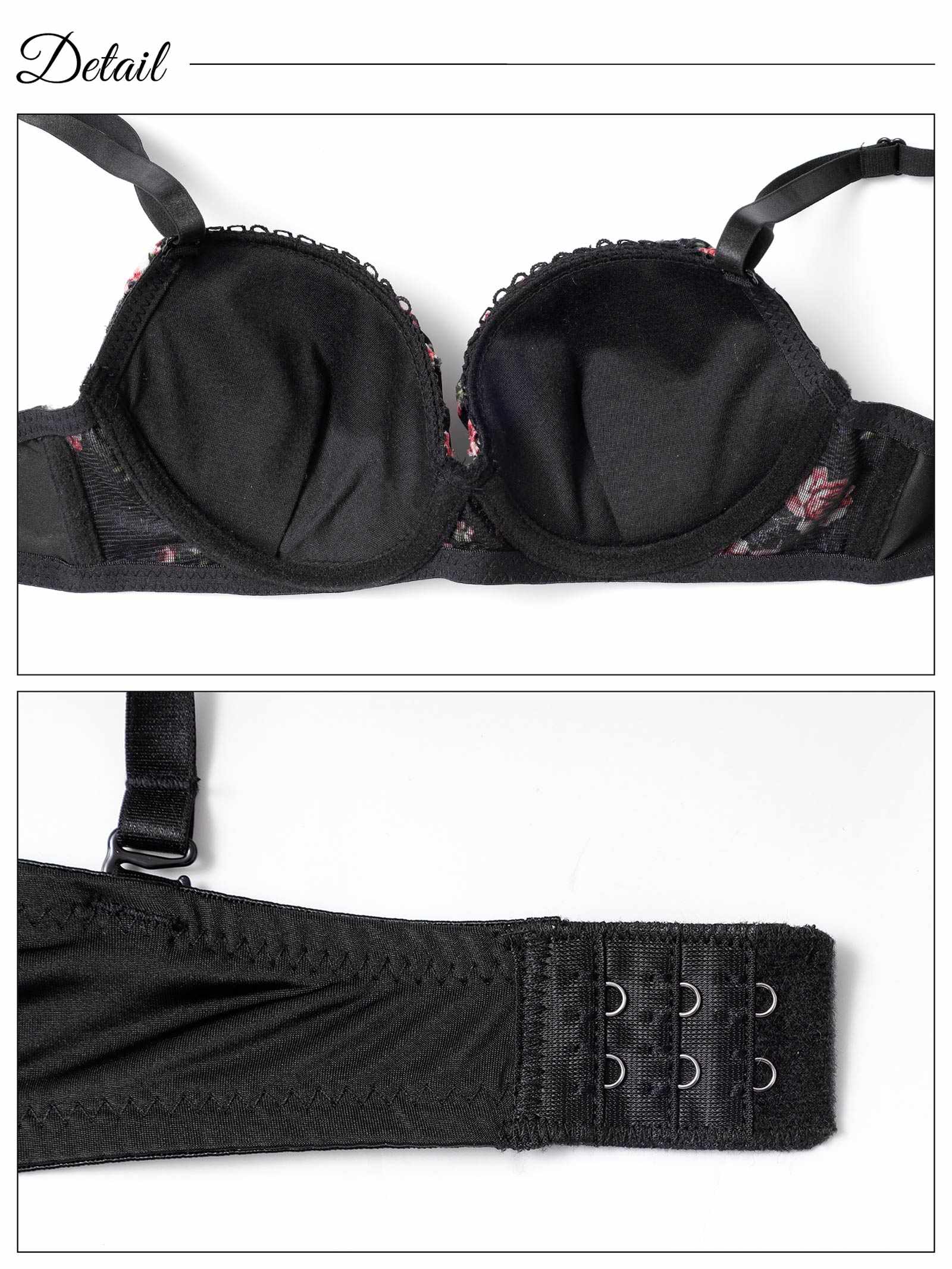 3/4カップ / ワイヤー:有(U字) / ホック:バック2段3列