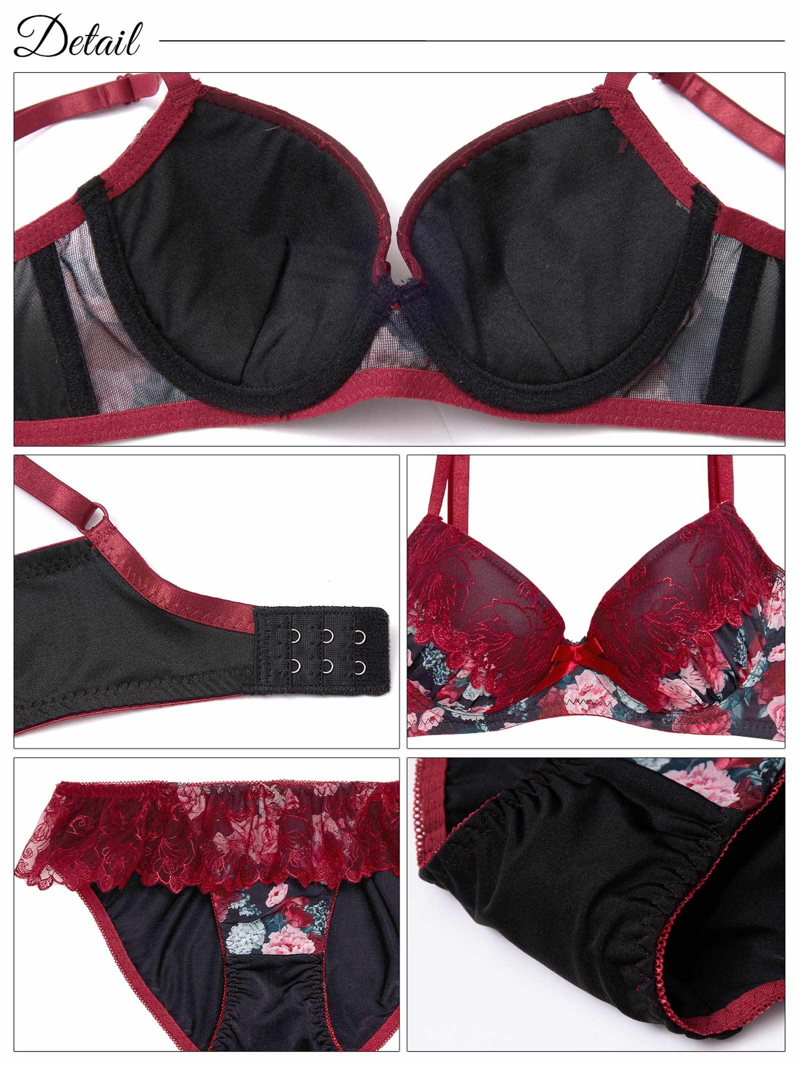 ファビュラスローズレース育乳脇高ブラジャー&フルバックショーツ