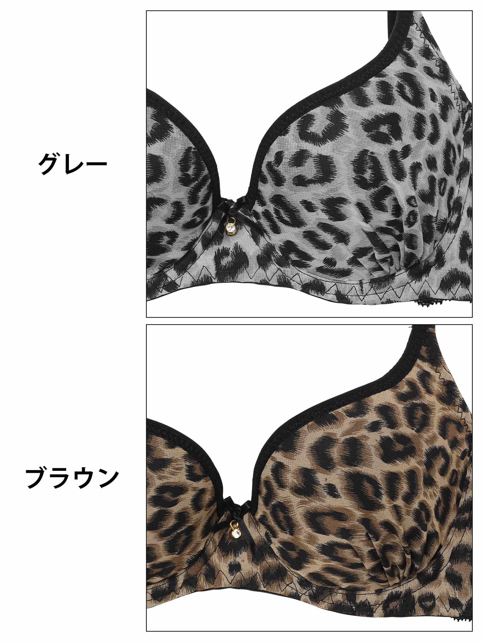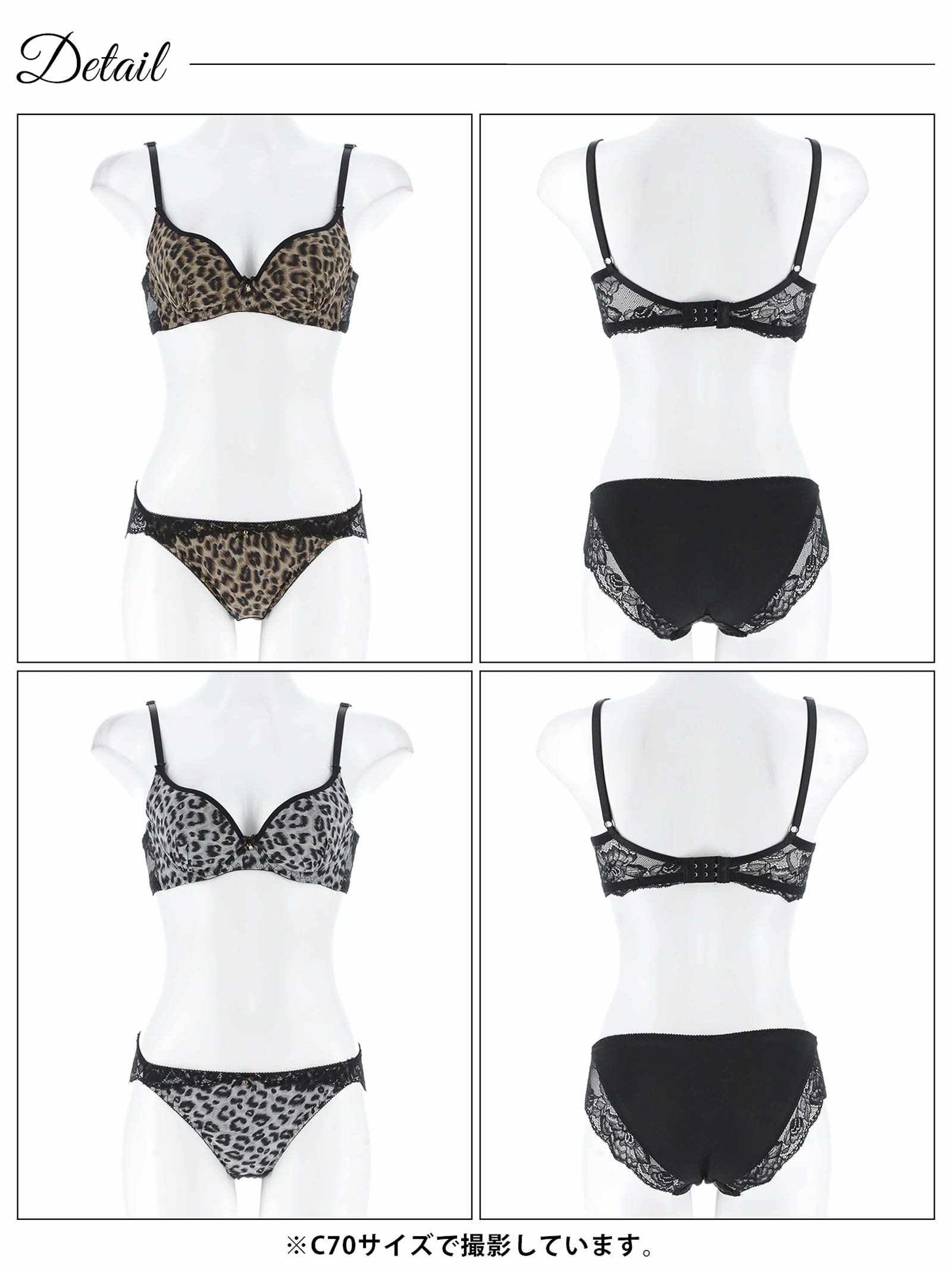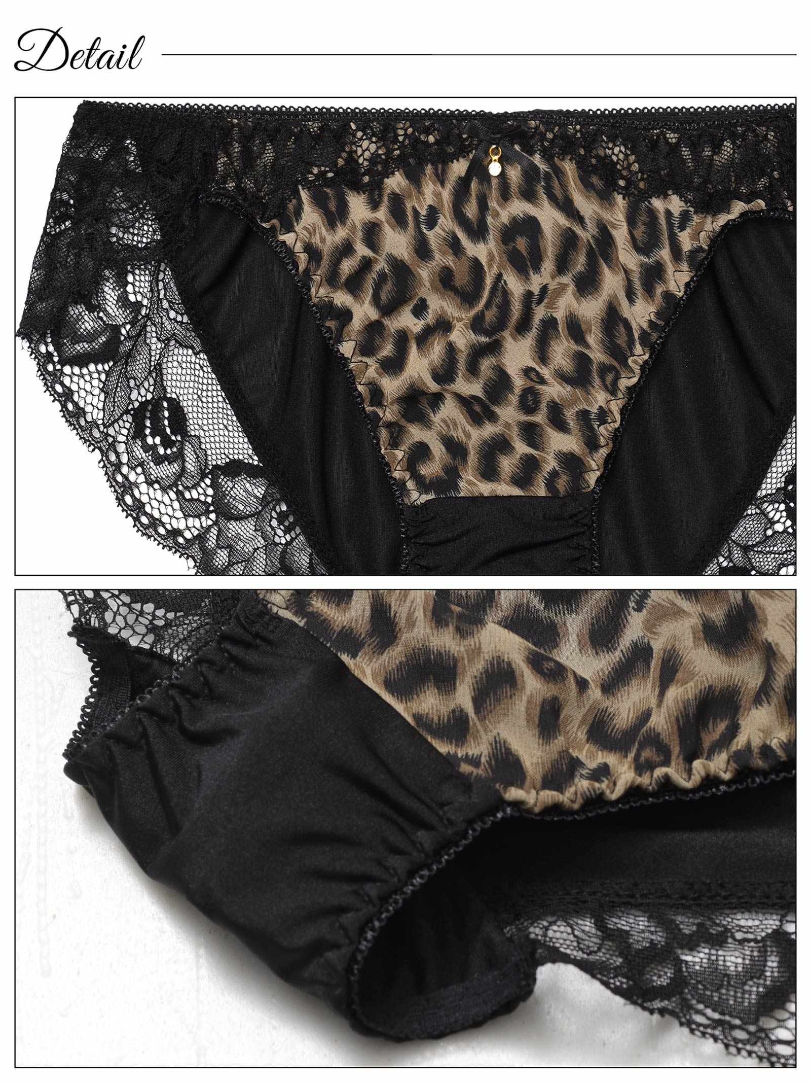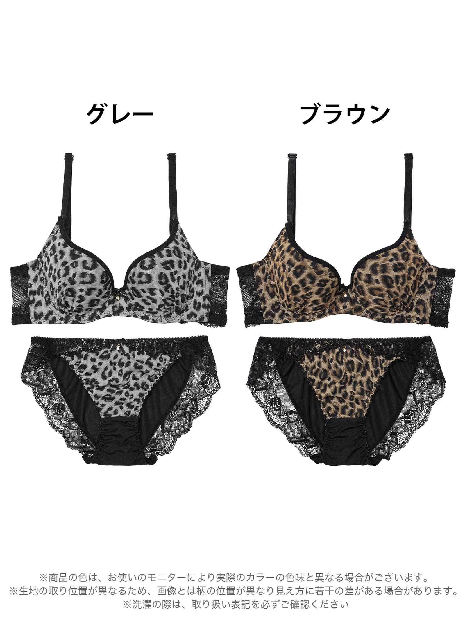 セクシーの王道レオパード柄にブラックレース重ねが刺激たっぷりなランジェリー。脇高構造とパイピング加工を施したカップの滑らかな曲線で美しいバストラインを作り上げます◎ レース切り替えなのでショーツラインが透けにくいのもポイントです。