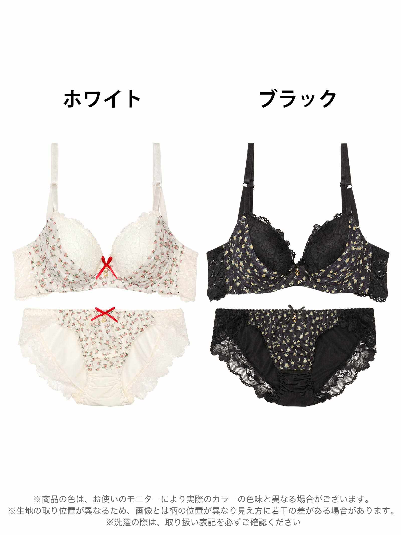 プティフラワーシフォン育乳脇高ブラジャー&フルバックショーツ