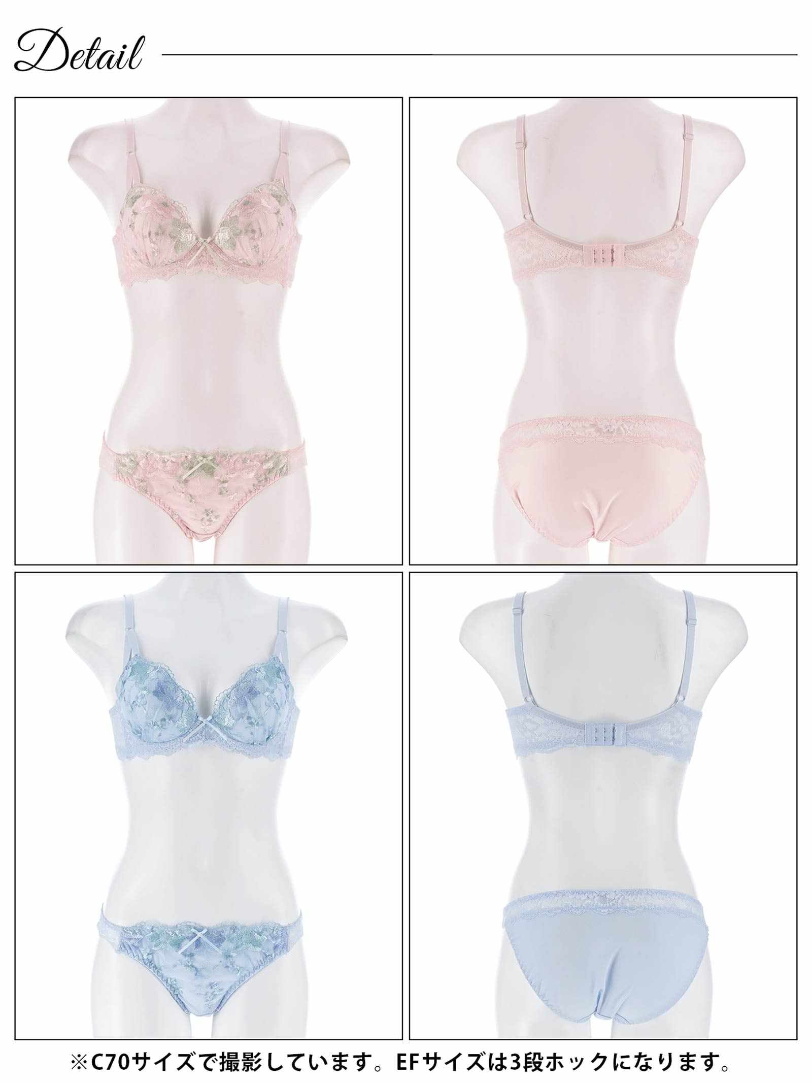 【EFサイズ】フェミニンロマンスブルーム育乳脇高ブラジャー&フルバックショーツ