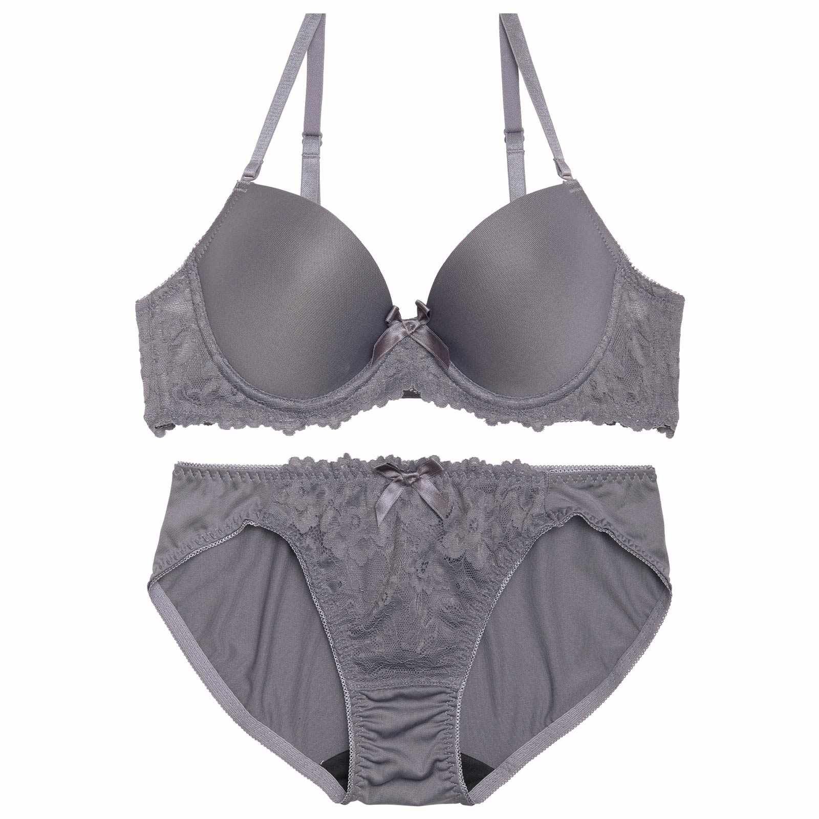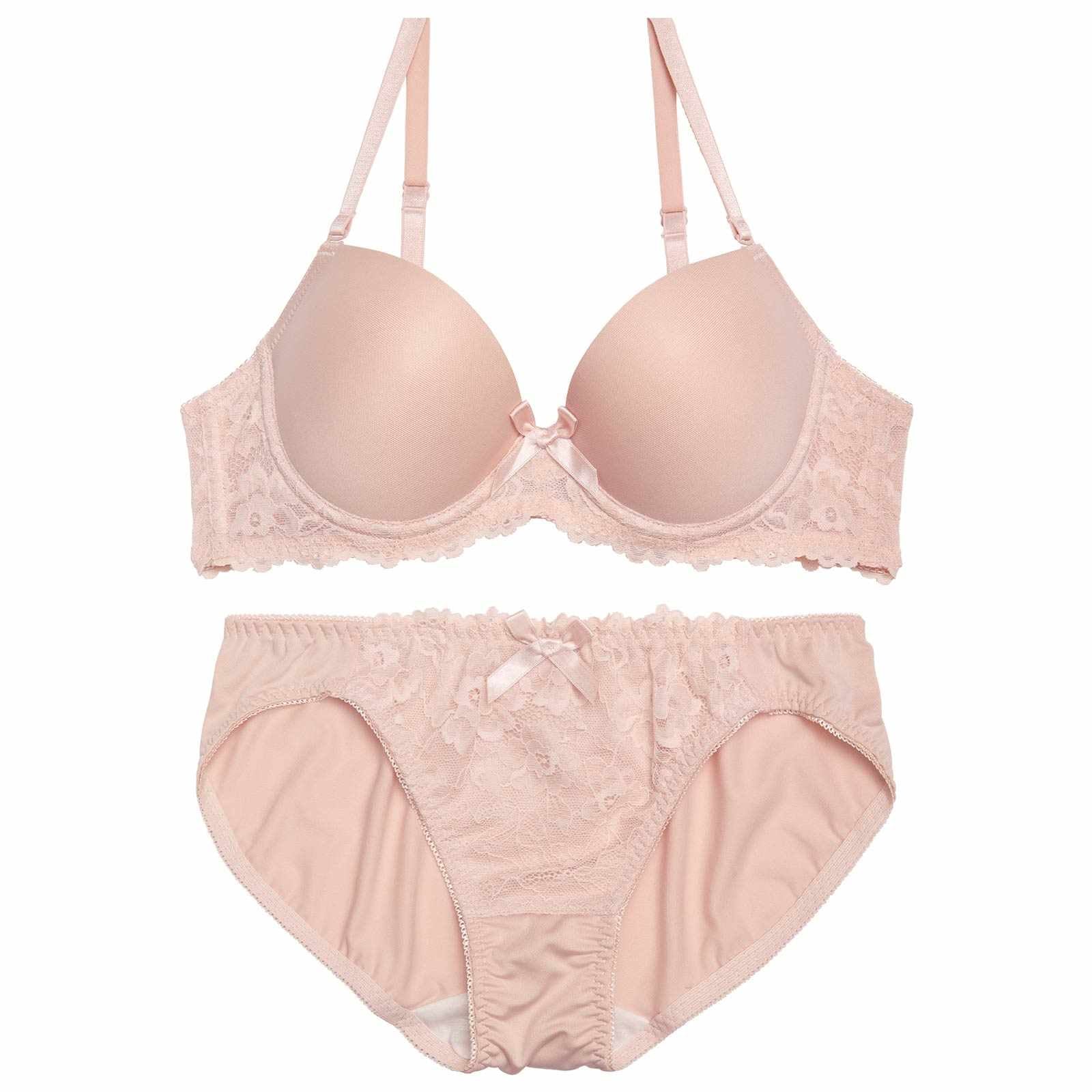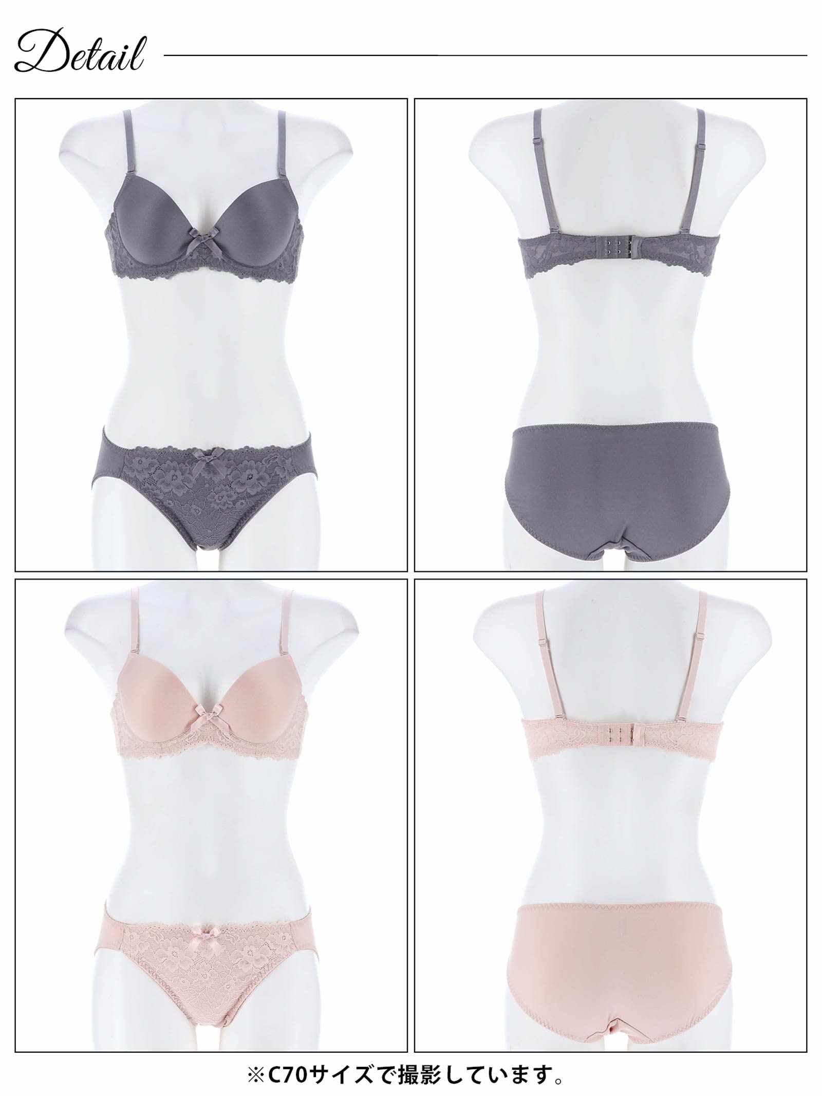 ワンカラーリボンレースブラジャー&フルバックショーツ