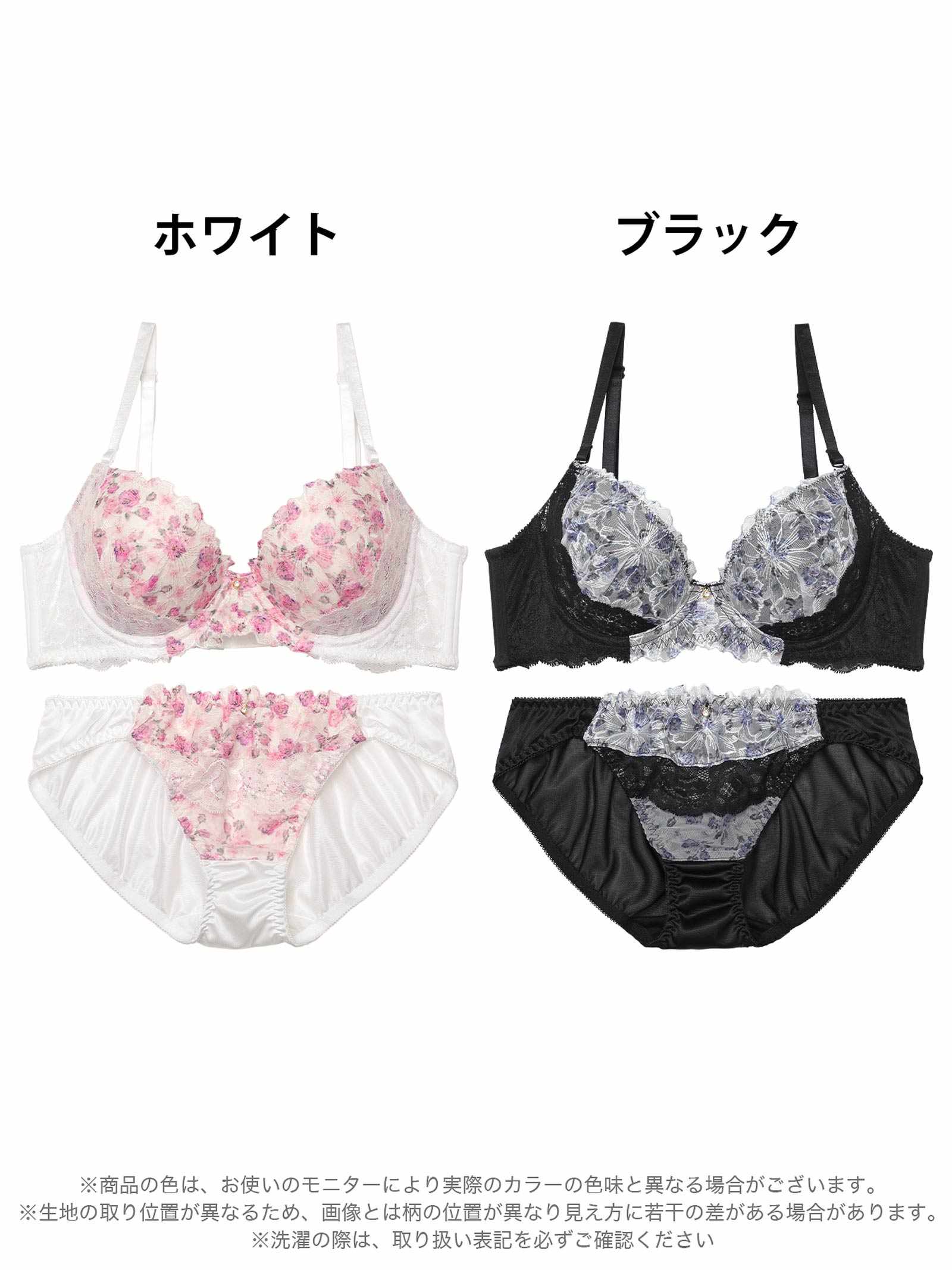 繊細なレース越しに透ける色鮮やかな水彩フラワープリントがお洒落なランジェリー。ショーツ中央やバストを包み込むようなレース切り替えもデザインにメリハリを付けるワンポイント◎ 脇高仕様でしっかりと美胸をキープしてくれる1着です。