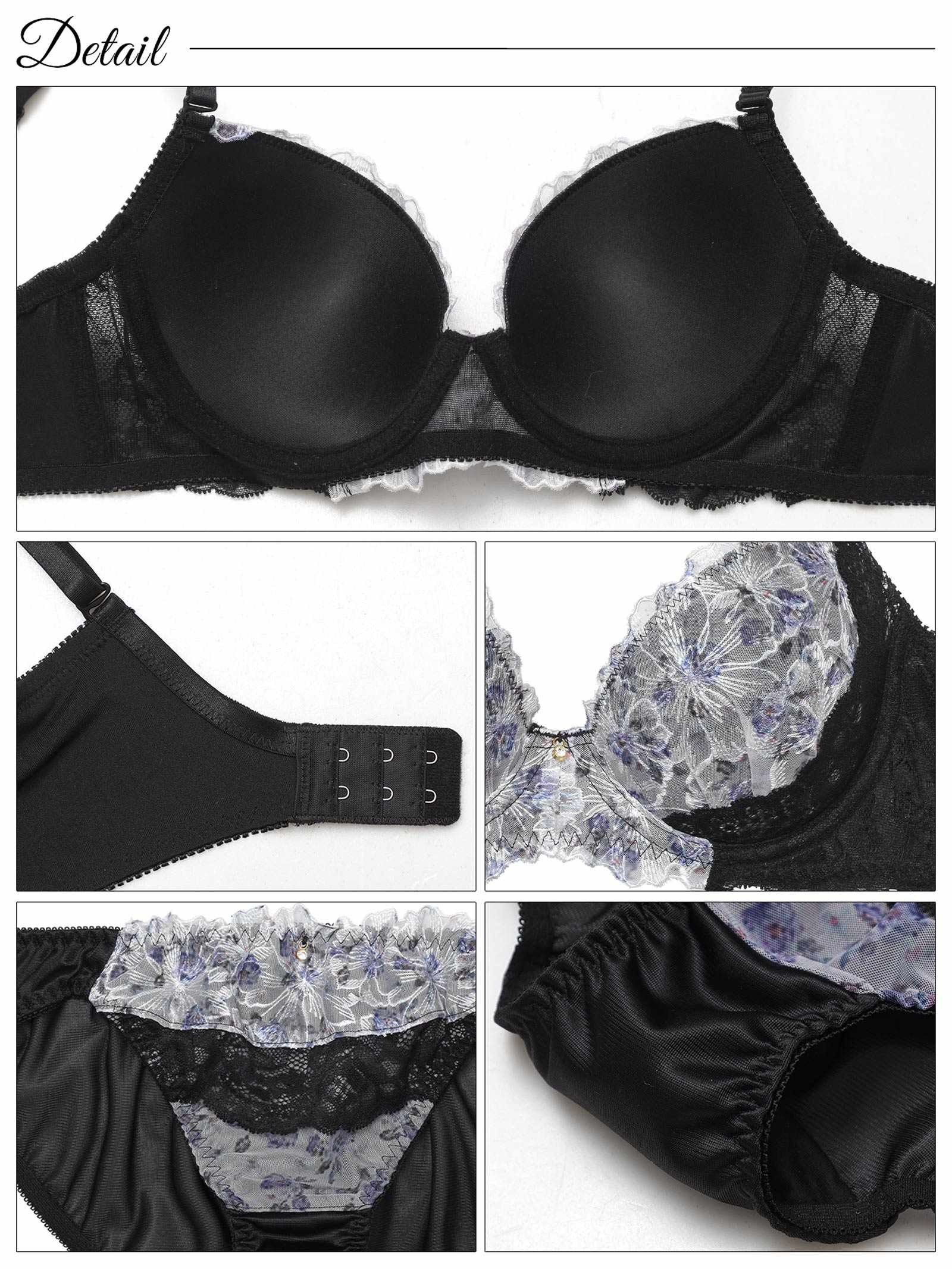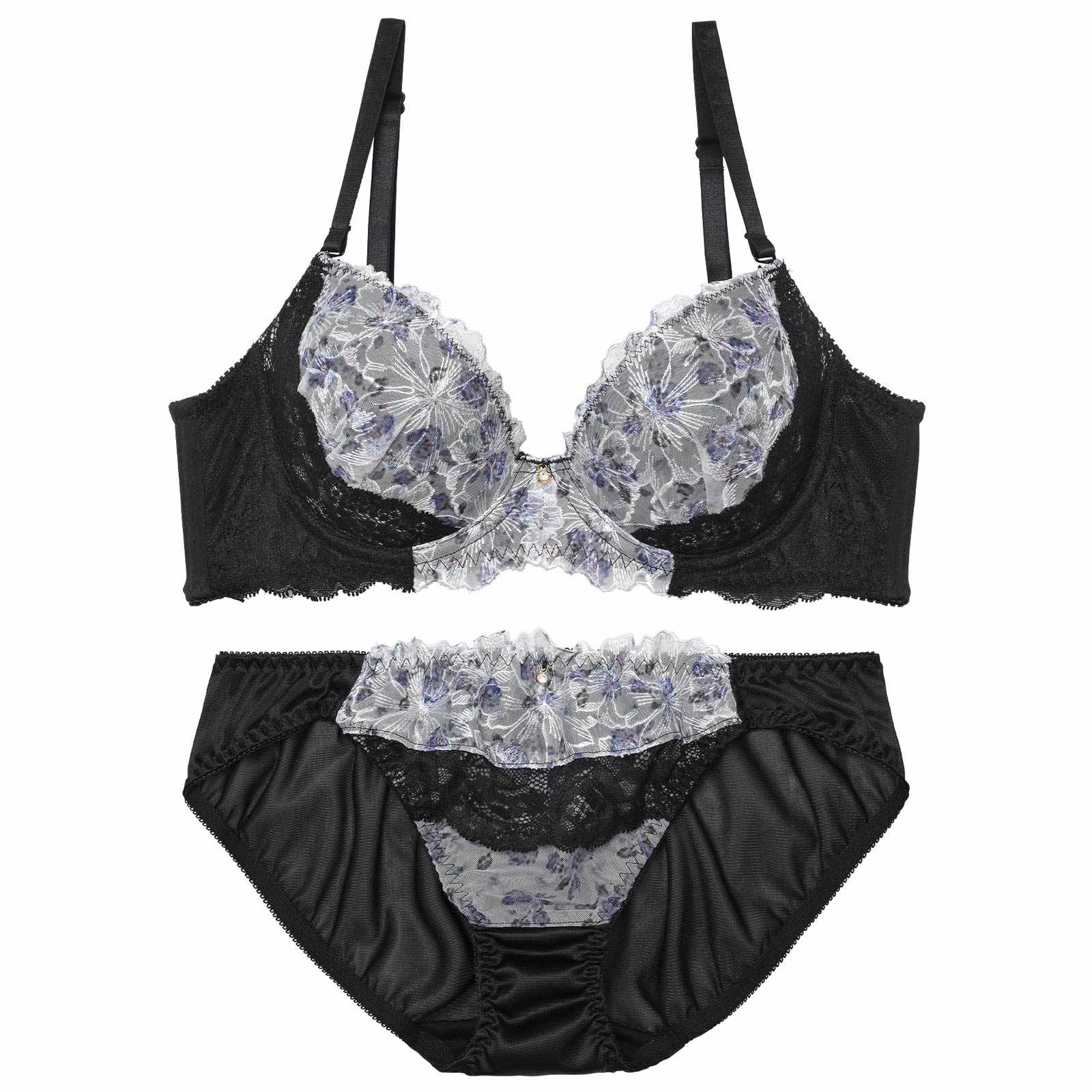 ミスティー水彩レース育乳脇高ブラジャー&フルバックショーツ