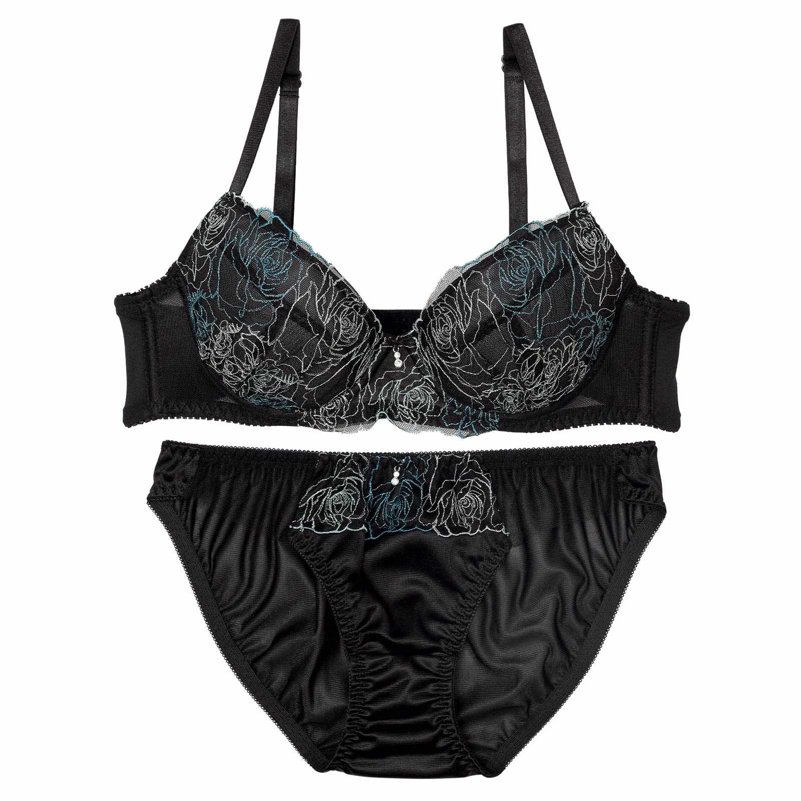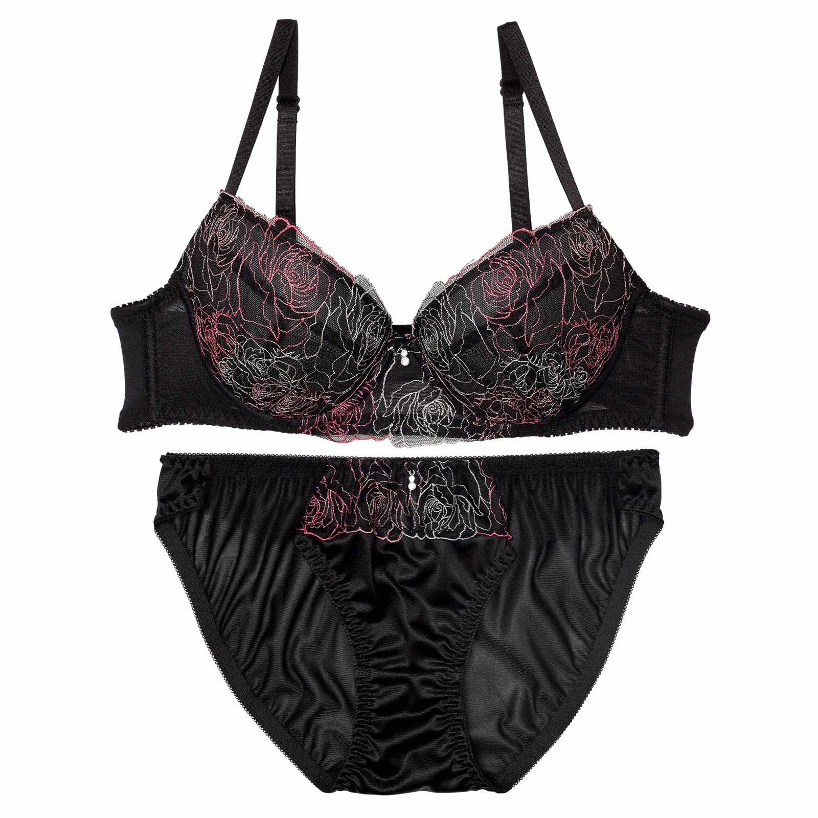 ミッドナイトチュールローズブラジャー&フルバックショーツ