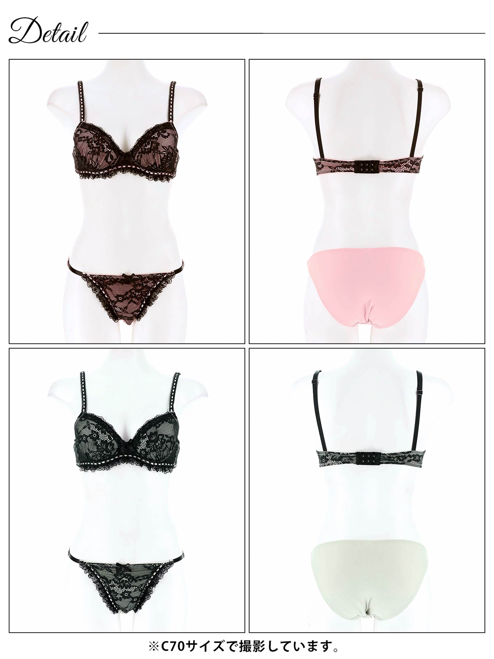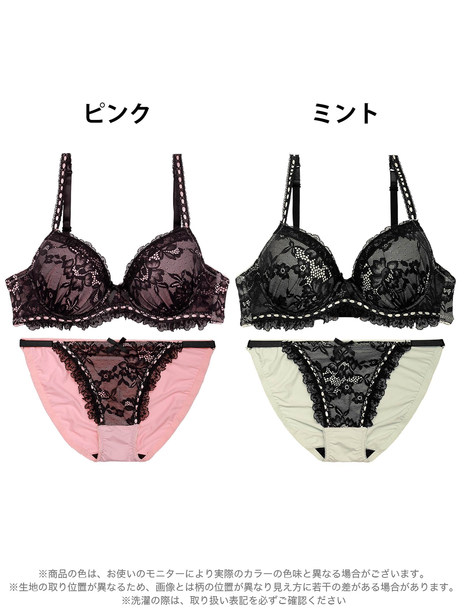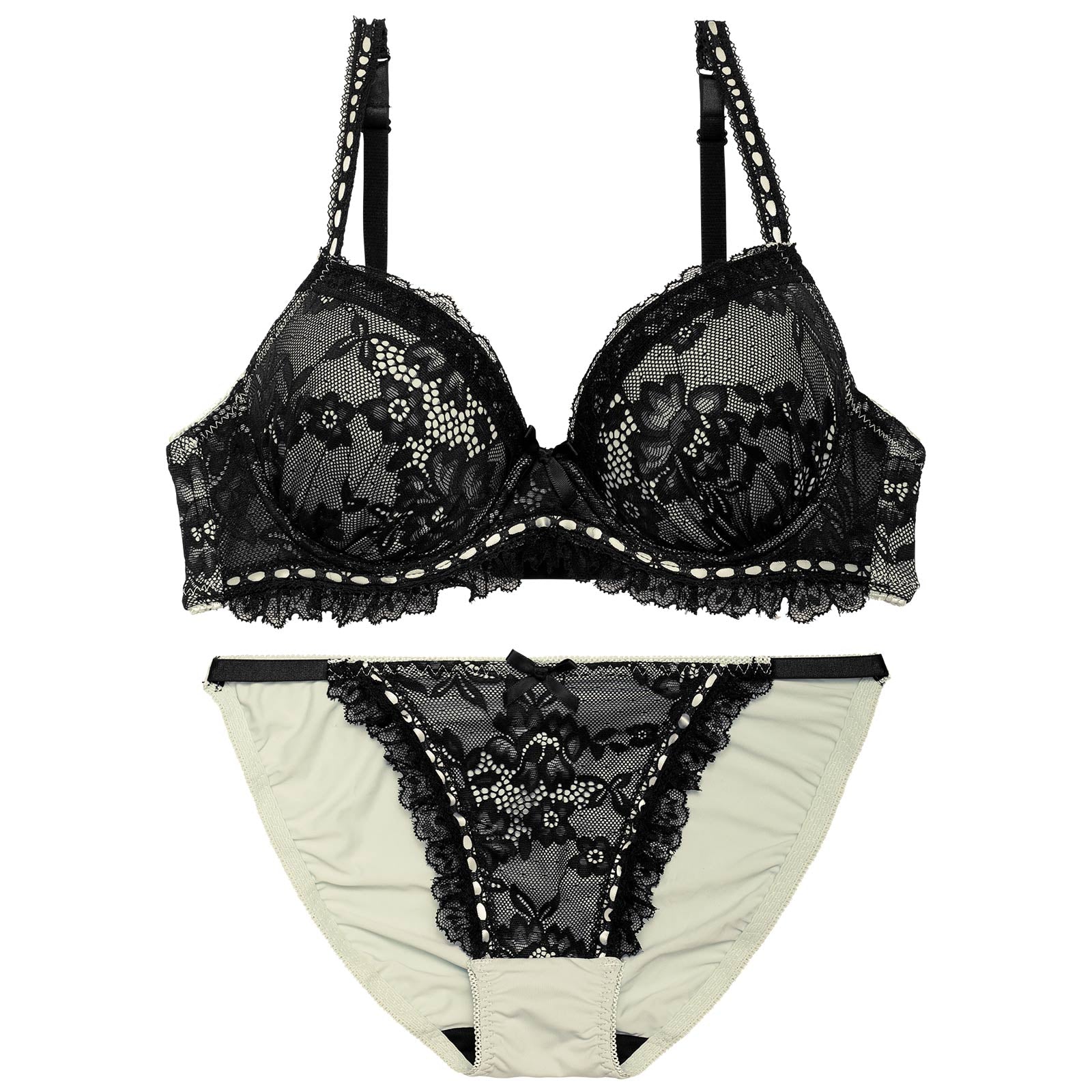 レーシィリボンステッチブラジャー&フルバックショーツ