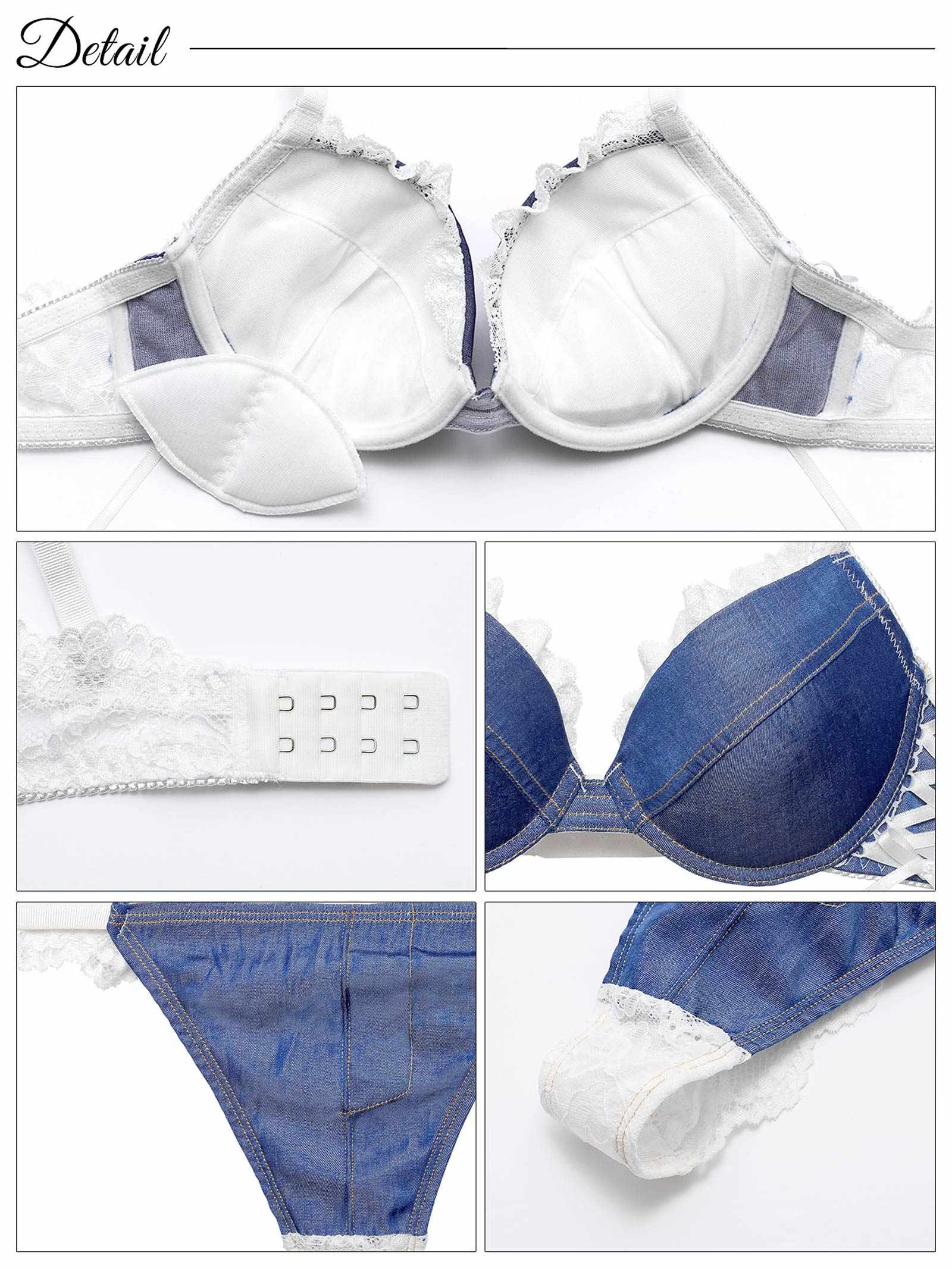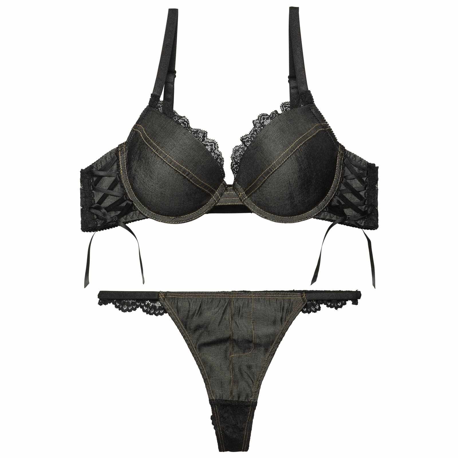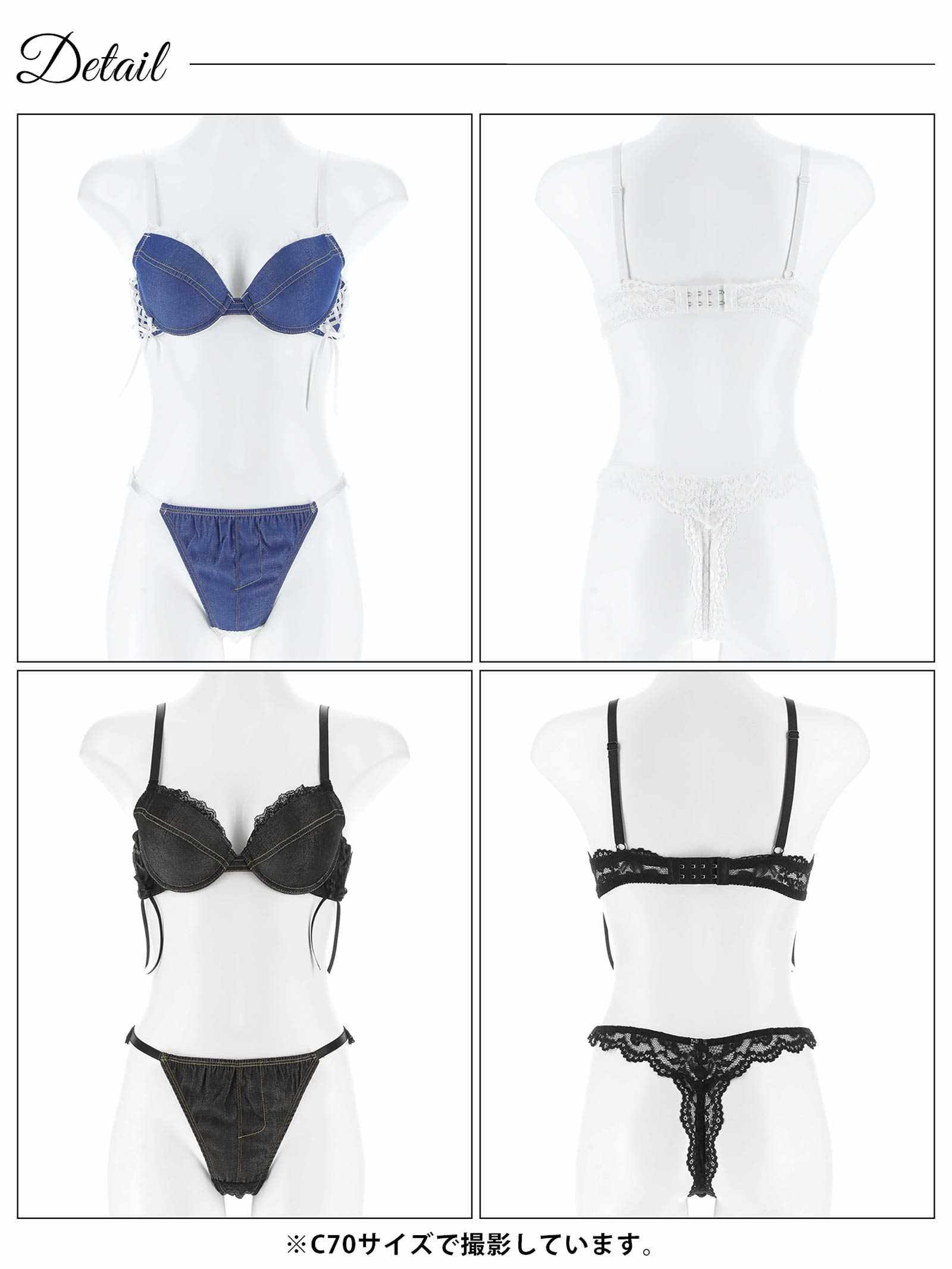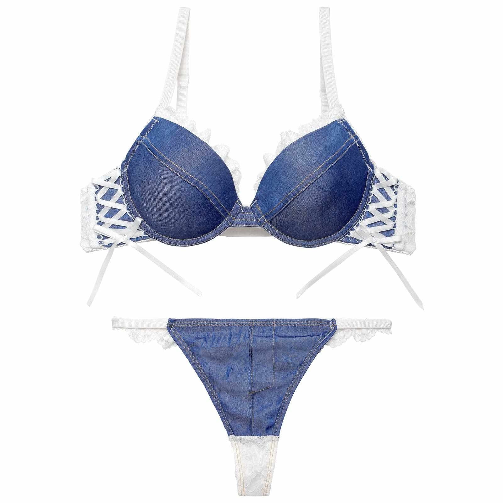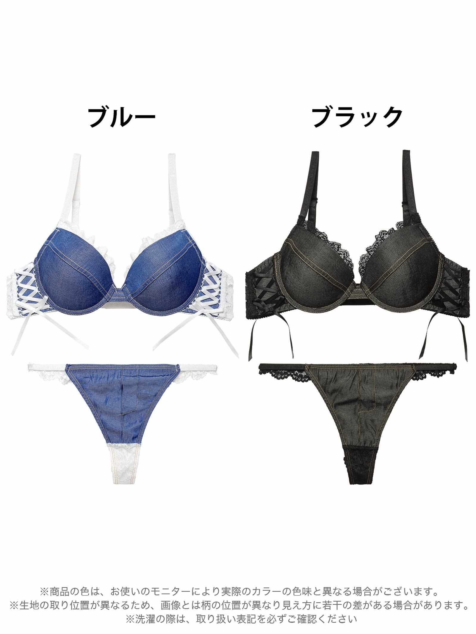 デニムレーシィスピンドルブラジャー&バック透けTバックショーツ
