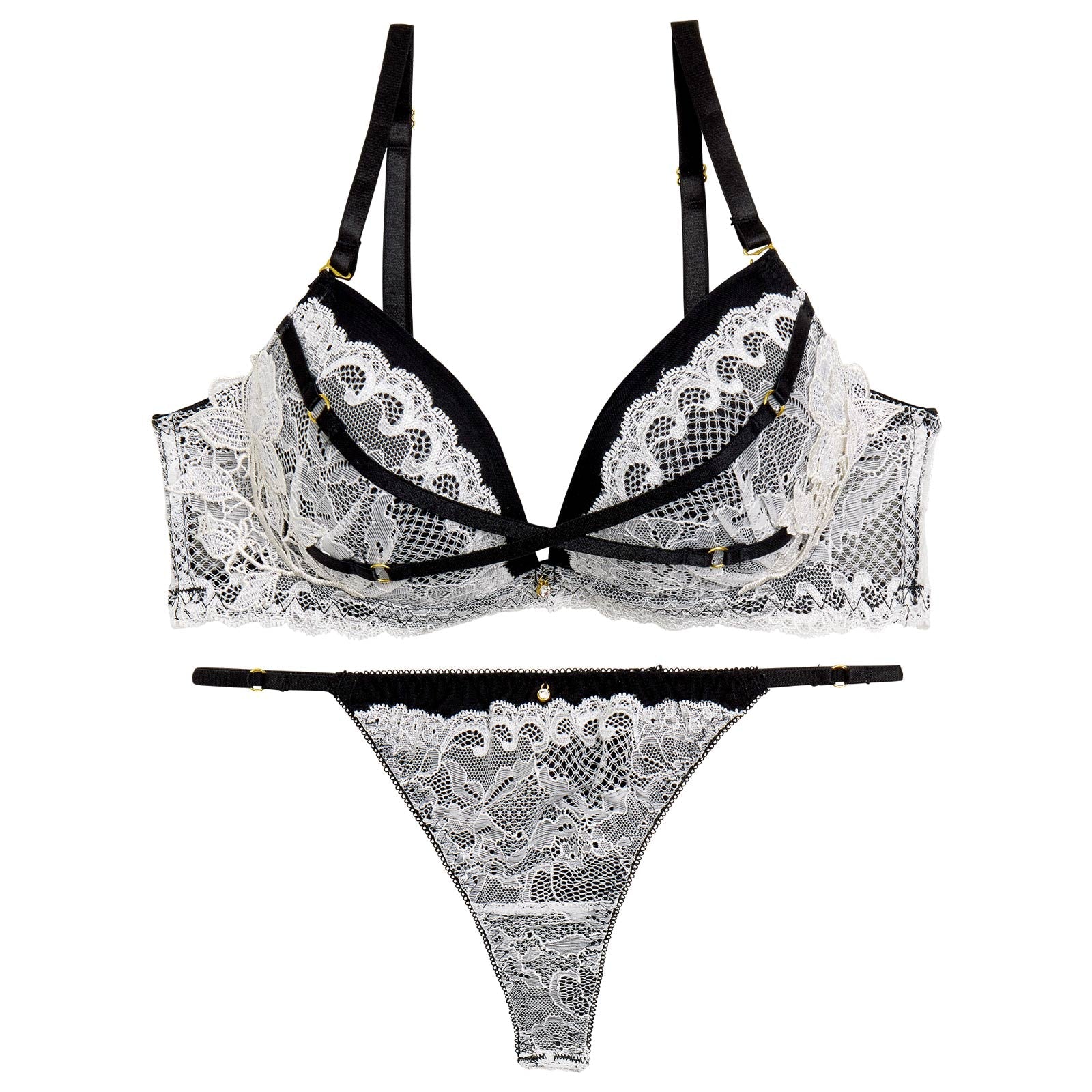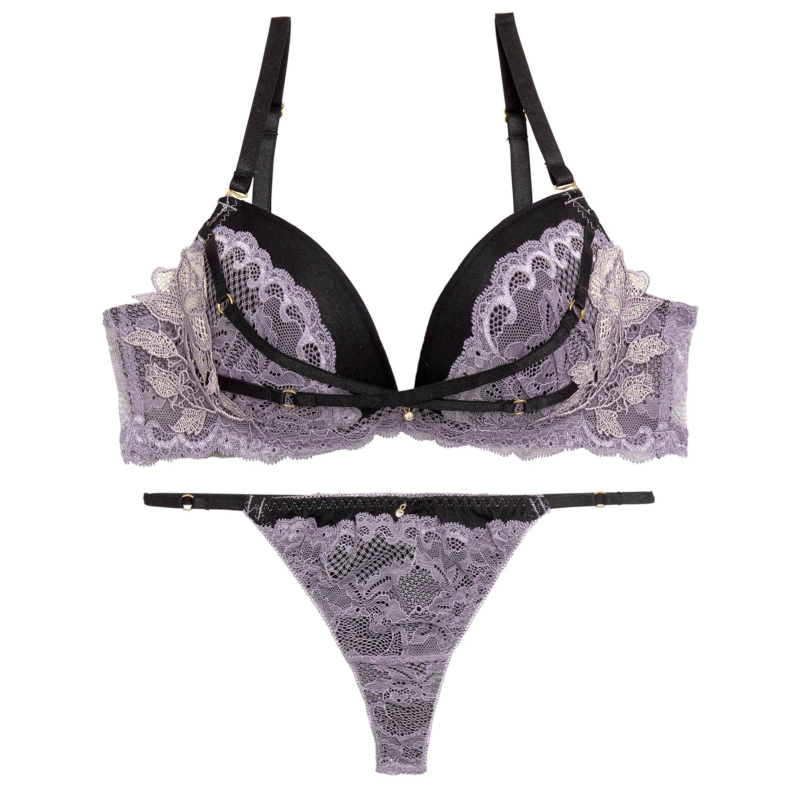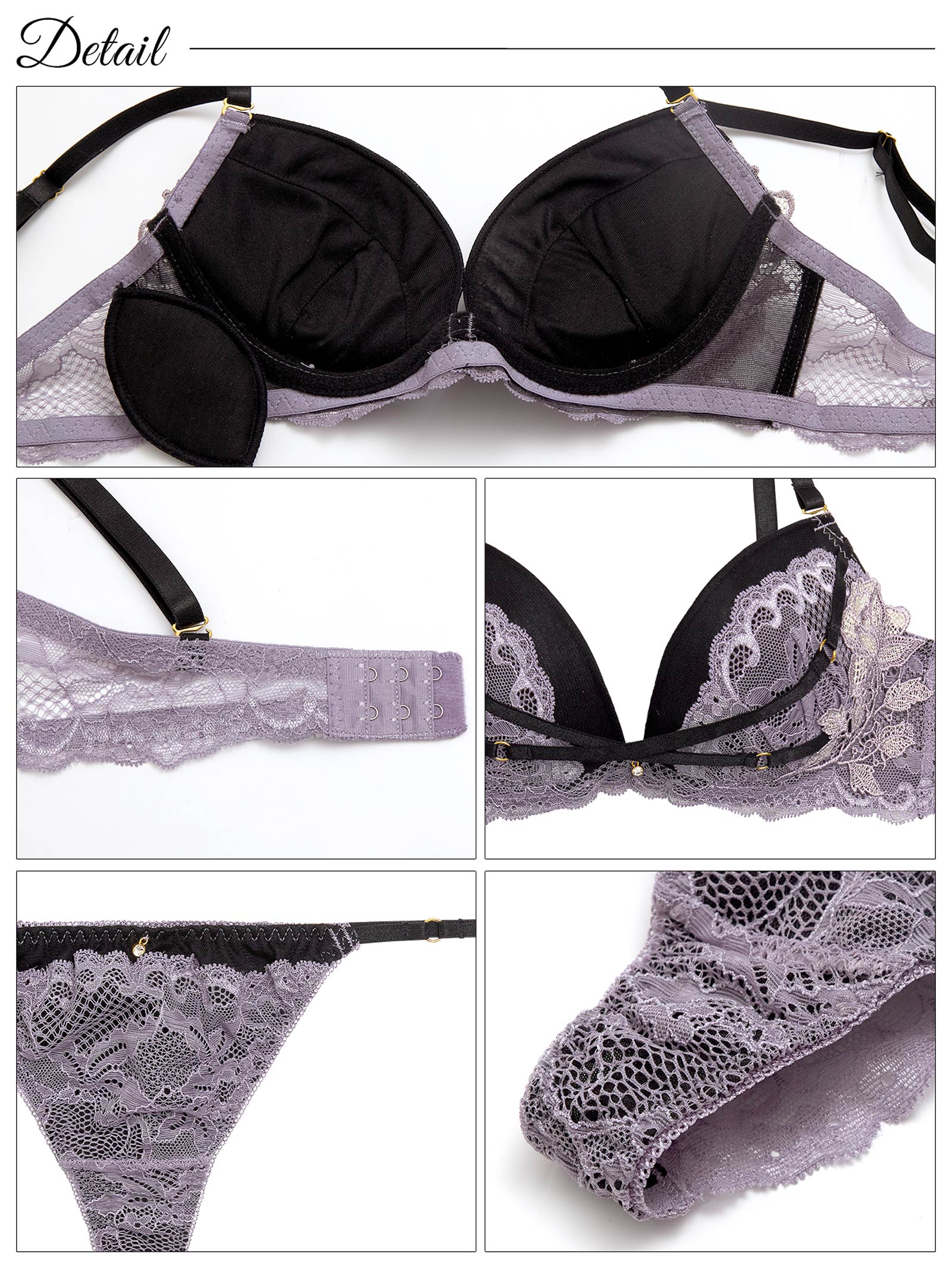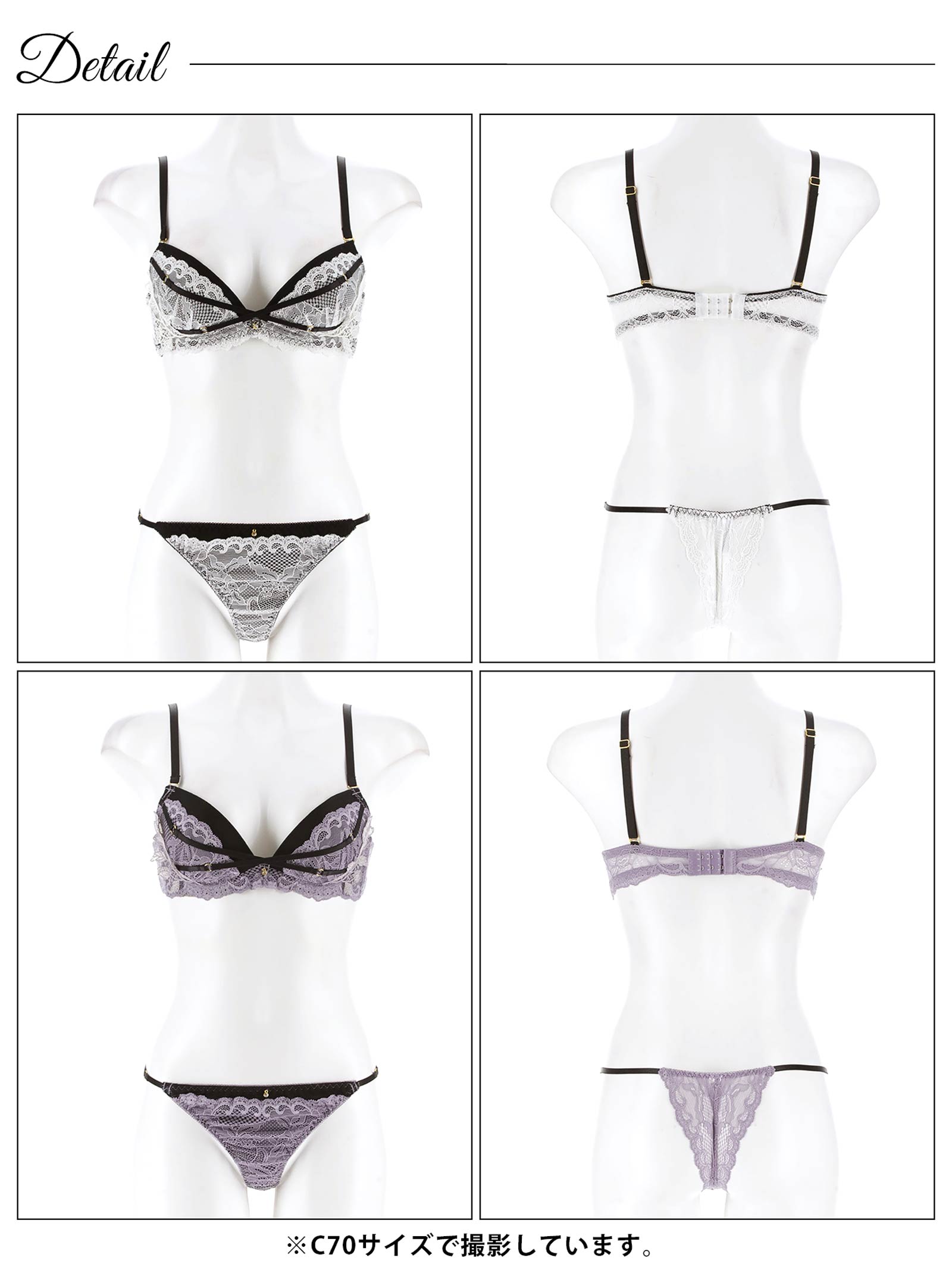 アンジュクロスエンブロイダリーブラジャー&バック透けTバックショーツ